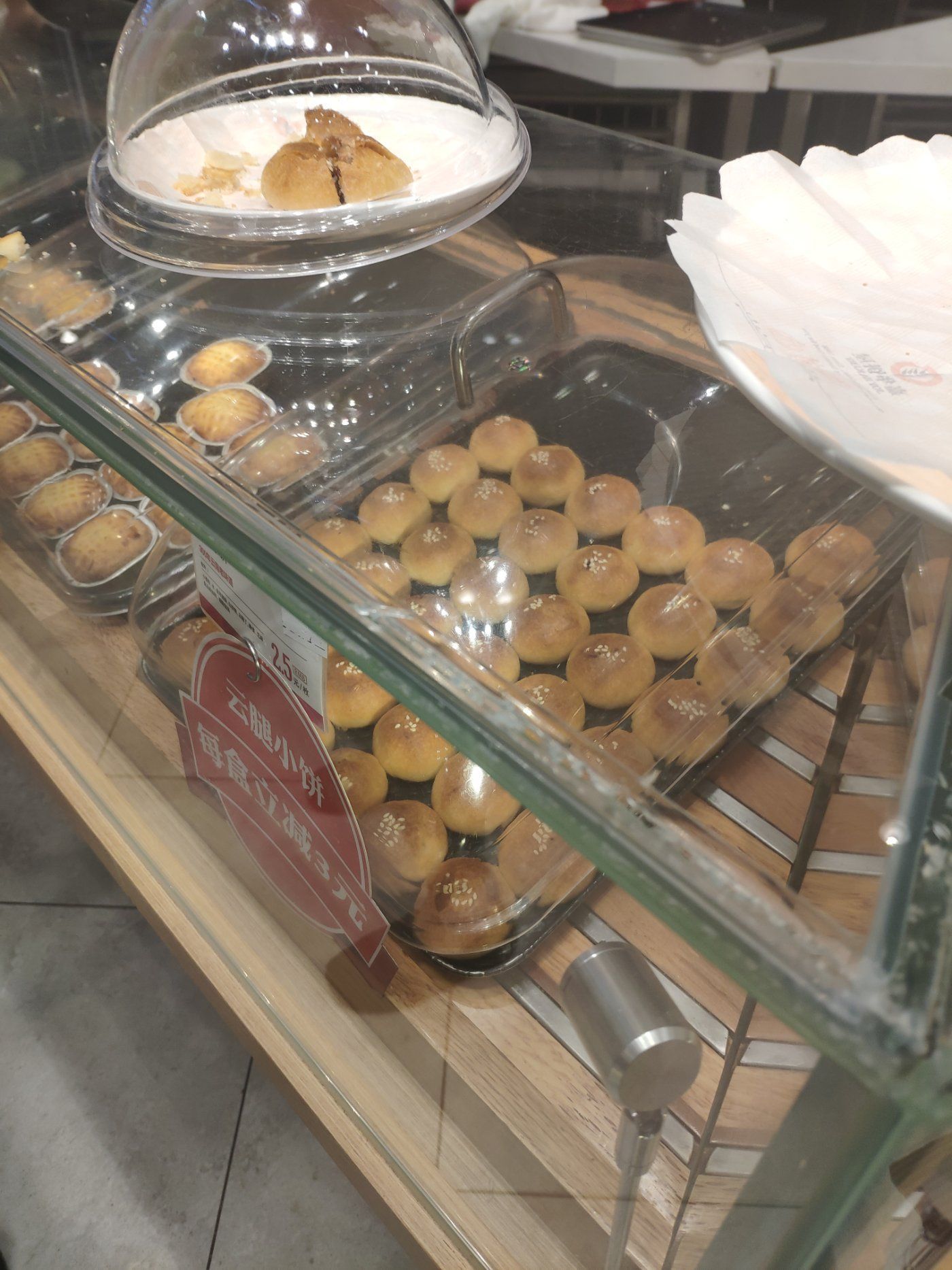现烤的鲜花饼买了两盒,早上来的时候还没烤好,烤好了前面排队的人买了10盒,拿到手等了差不多1个半小时。 早上还是挺忙的,人挺多的。
