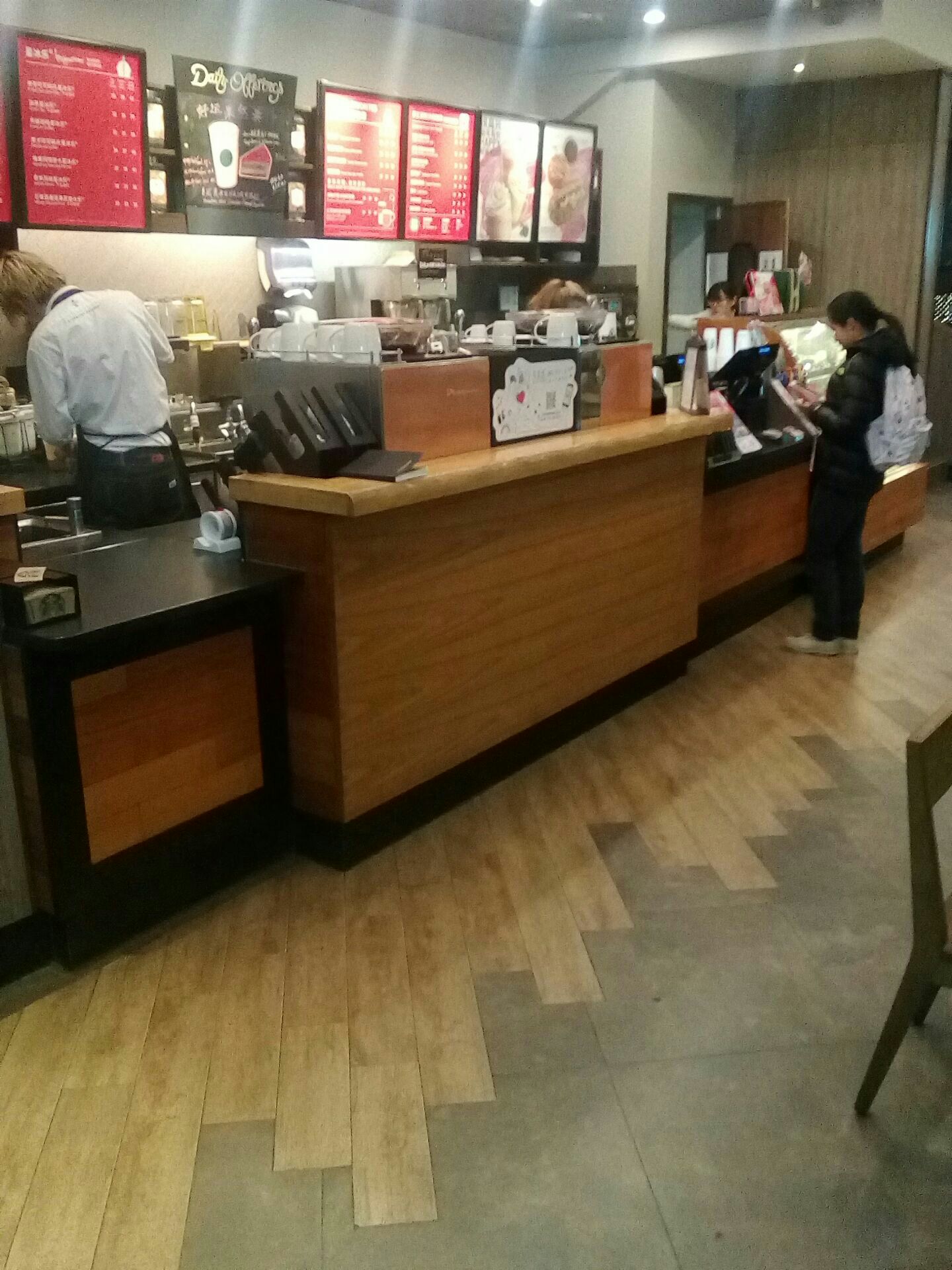 上下两层,内部整洁干净,装饰美观,收银员接待热情,这里为顾客提供各种现场制作的咖啡饮品,醇香浓...门店规模较大,上下两层,内部整洁干净,装饰美观,收银员接待热情,这里为顾客提供各种现场制作的咖啡饮品,醇香浓郁,味道可口,还有各种西点、色拉。