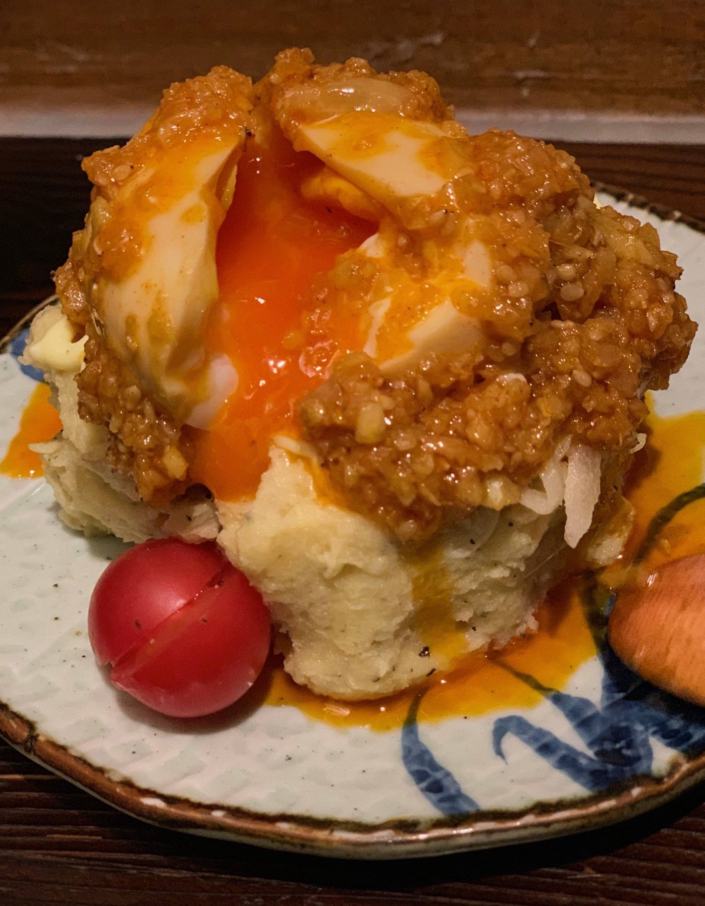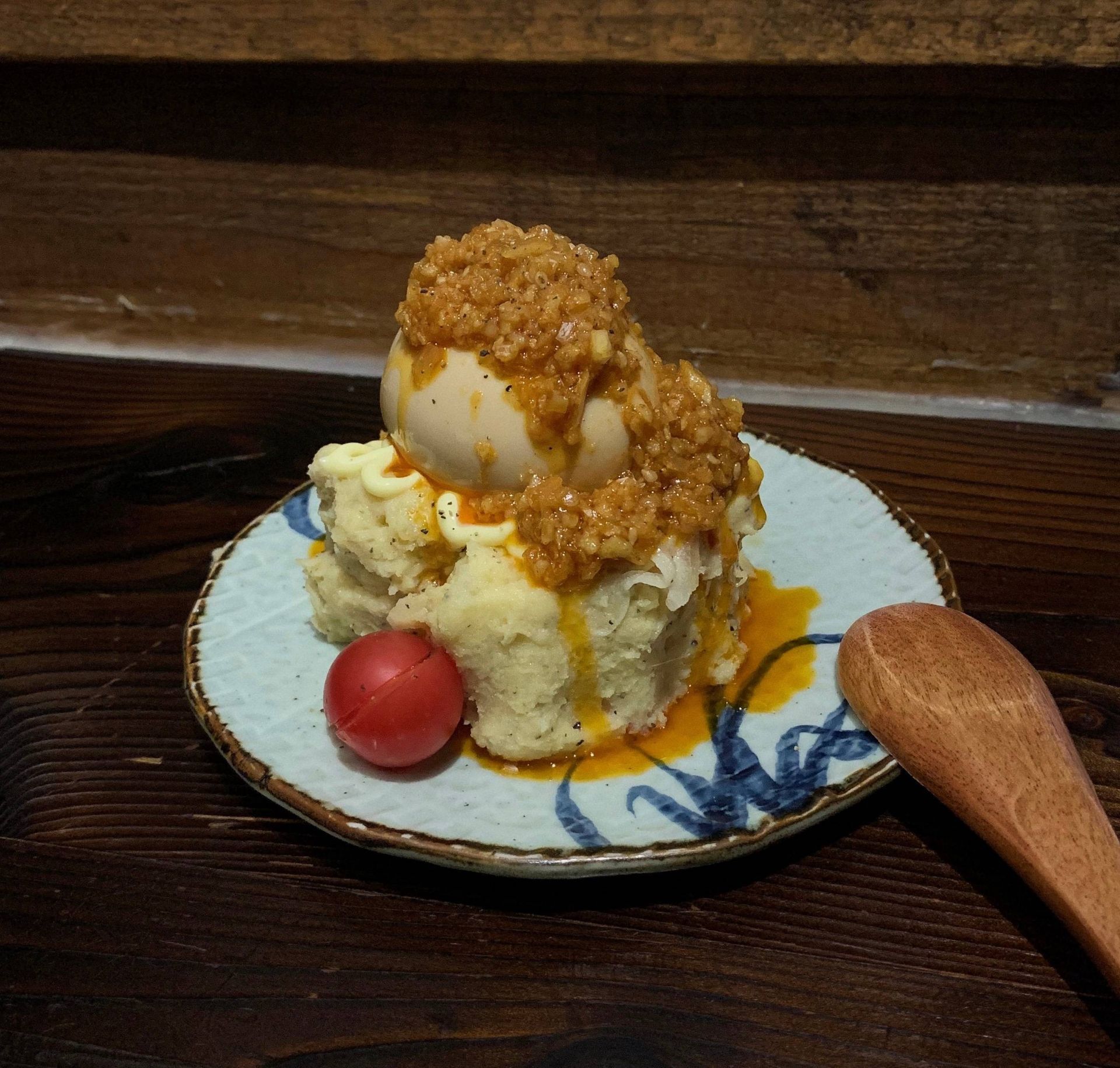 炭宗(江安店) 江安路453号(来福士广场旁) 熔岩土豆泥 总体蒜味会重了点,蒜泥酱过于辛辣稍稍带苦,吃的时候扒拉了点掉。土豆泥用黑胡椒美乃滋调味,入口细腻层次丰富,大概是从冰箱里拿出来,入口冰冰凉凉的。溏心蛋是心头大爱,就着土豆泥一起很满足。 炭烤多春鱼 烤制后的多春鱼淋上柠檬汁,不会那么油腻。 炭烤牛舌 酱烤的牛舌不腥,但薄切的牛舌有一些老。 炭烤鸡心 鸡心处理的很干净,带着一丝甜味,推荐。 炭烤鸡皮 烤焦的鸡皮,香脆美味,但相对于酱烤,我还是更喜欢盐烤的。 炭烤鸡软骨 一小串的软骨很有嚼劲。 炭烤鸡腿肉 鸡腿肉很大块,夹带着鸡皮,对于我这种食肉动物还是更爱这种。 炭烤明太子西葫芦 超爱超推荐,咸鲜口的明太子附在甜口西葫芦上,口感丰富,明太子入口一抿即化,嚼着脆脆的西葫芦,西葫芦也变得风味十足。 芝士鸡丸 调味后的鸡丸,肉糜细腻,但总体偏咸,配上了奶香味十足的芝士片。 芝士牛油果肉卷 烤制后的牛油果,口感更加绵密,和芝士融合的很好。