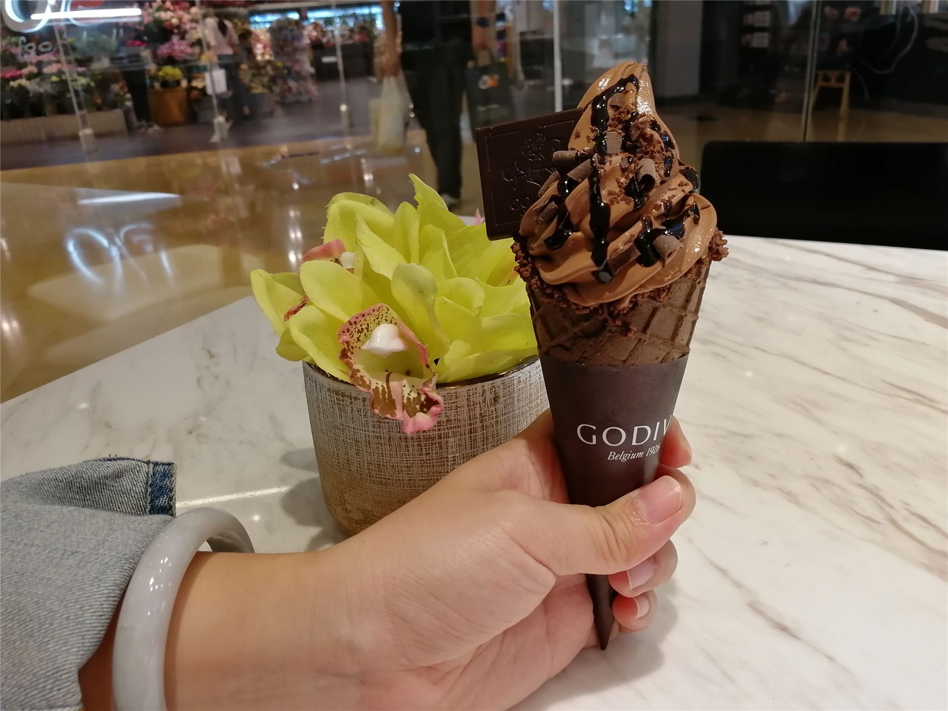 如此高档次的巧克力品牌,当然要在太古汇里面开设分店了。铺面窗明几净,门口旁边的展示柜醒目标识着品牌名及其始创国(比利时)和创建年份(1926年)。店内空间不多,所以借用了购物中心手扶电梯下方的公用区域作为一部分的就餐区,柜台里的巧克力和冰淇淋品种琳琅满目,口味众多,还会售卖热饮。服务员的形象和态度果然是非常好的,手势也专业。恕我不懂欣赏,虽然出品好吃,但不觉得惊艳咯,大众品牌冰淇淋,似乎也有能达到这种水平的。