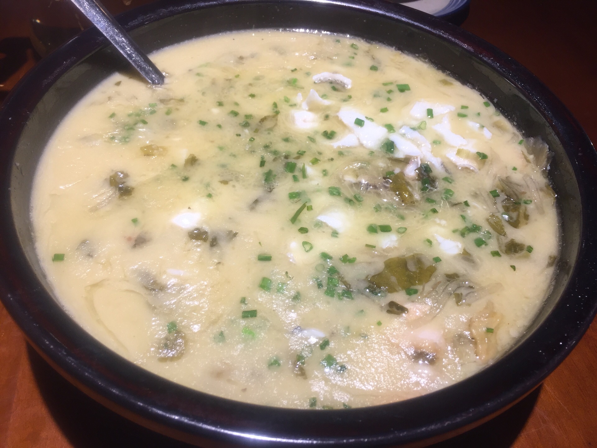 服務生推荐了酸菜鲈魚 汤头濃郁 牛奶色的汤汁 雪白的鲈魚 真是真正舌尖上的美味 茄角之恋 很是...