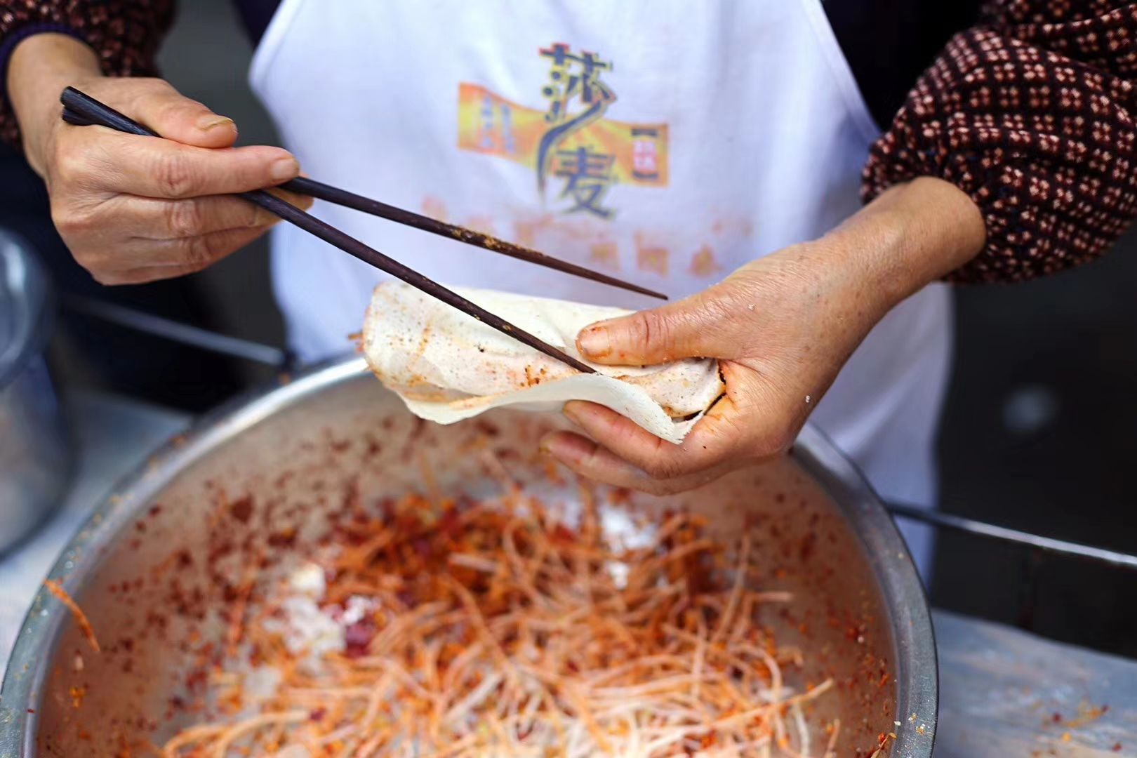 ...很多都几十个几十个打包回家,味道确实不错,从早到晚忙碌,起早贪黑赚的都是辛苦钱,小摊子不亦乐乎犍为县的许四孃薄饼,深受当地人喜爱,很多都几十个几十个打包回家,味道确实不错,从早到晚忙碌,起早贪黑赚的都是辛苦钱,小摊子不亦乐乎。