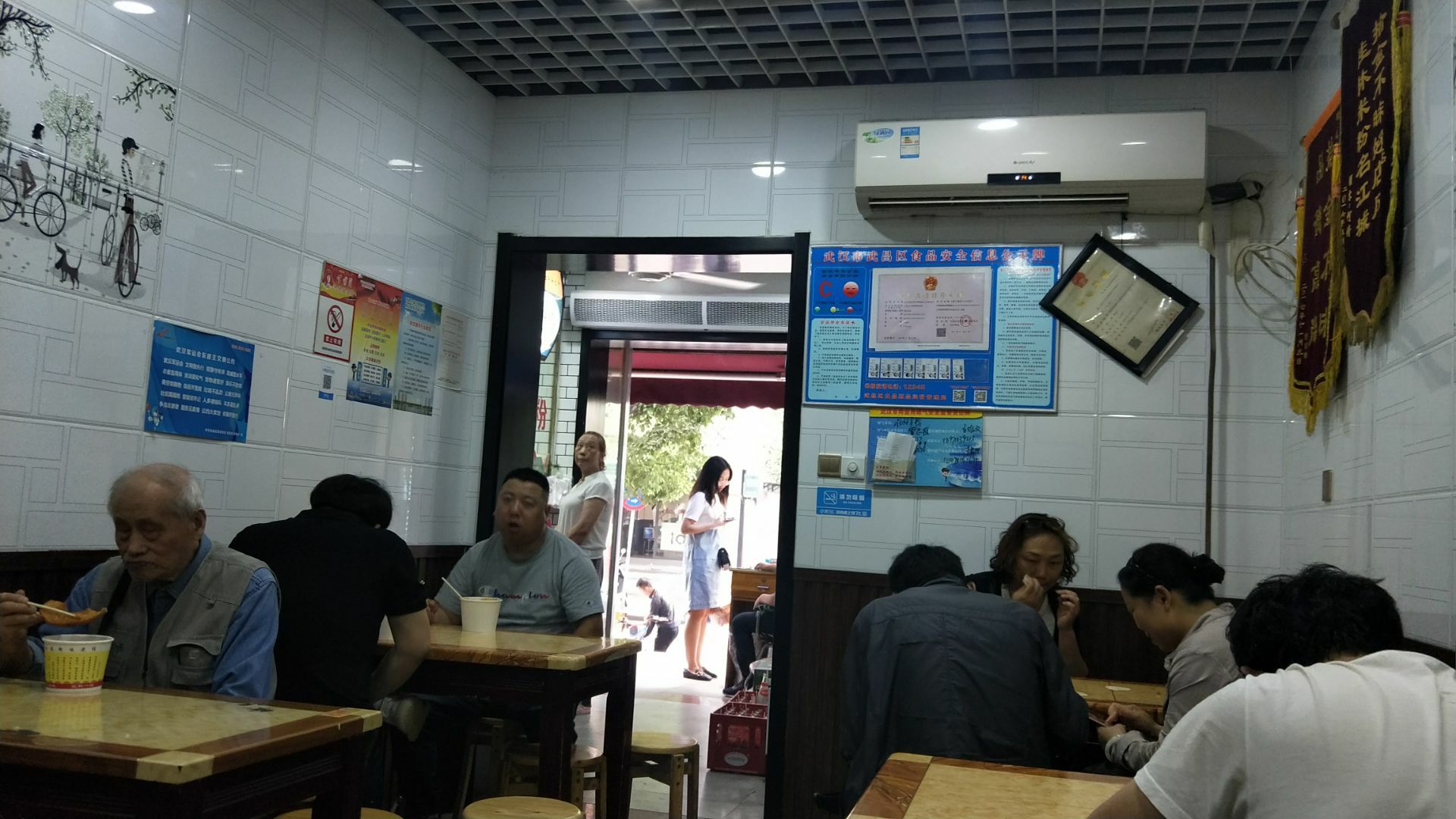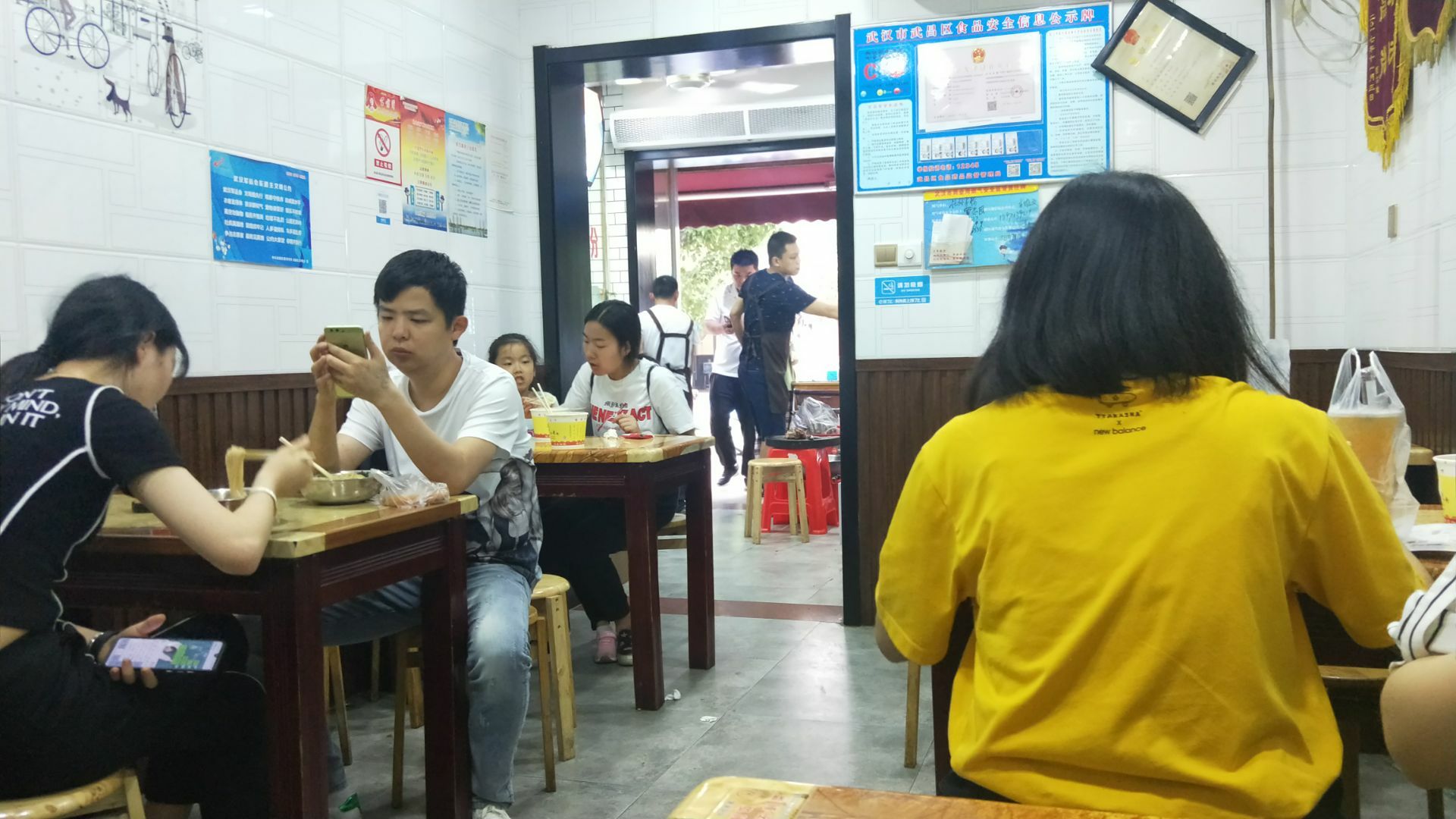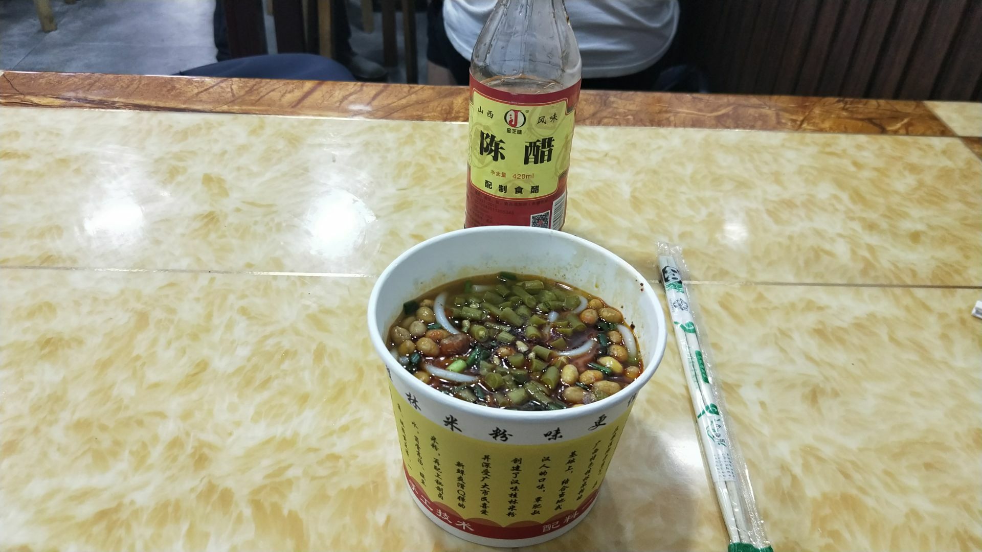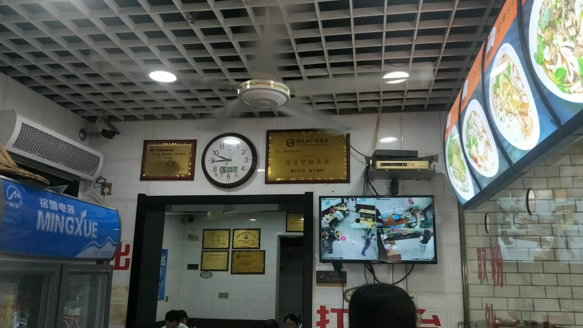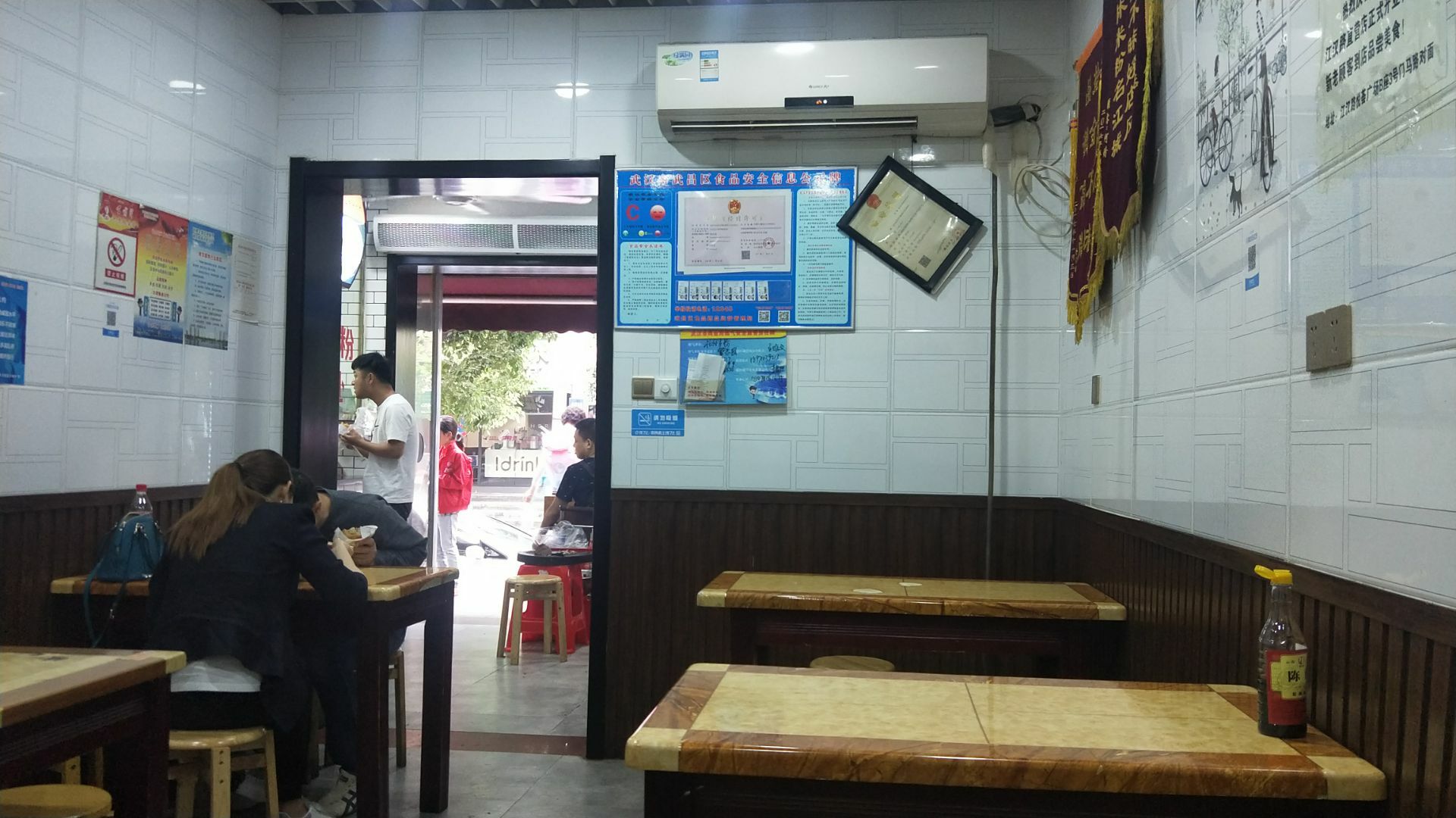 武汉网红美食街粮道街吃的第三家店。 这家桂林米粉是香辣味的。 米粉有粗细两种,素粉面5元2两,7元3两。 加料的荤粉面15元2两,17元3两。 本人点的5元素宽粉,微辣味。 买单后店家会给个类似粮票的饭票。 店里共有6张桌子可供四人围坐,桌子上有山西风味陈醋一瓶,桌边有插口可手机充电。就餐环境可以,口味好,是正宗桂林米粉。 这家店也是收获了不少荣誉。 荣获2017寻找“湖北好味道”美食评选活动武汉G站一等奖;湖北经视电视台《好吃佬》美食节目特别推荐;江城老字号美食名店推荐;粮道街桂林米粉创始会员单位。 还有顾客赠送的“拾金不昧”牌匾。 来粮道街寻觅打卡美食的朋友可以考虑。