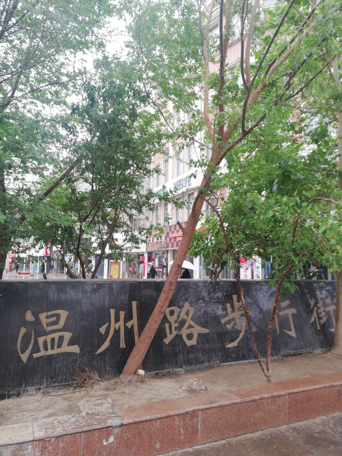 ...,所以我觉得这条路叫温州路步行街,有可能是有温州援助建造的,来的那天正好下雨,步行街上的人很少