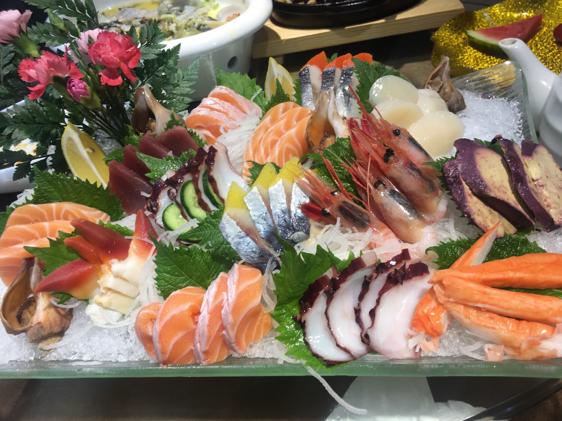 ...依旧点了最爱的杂贝和螃蟹,第一次点刺身拼盘,看起来摆碟好漂亮,可惜我不吃生的,只吃了鹅肝和蟹柳
