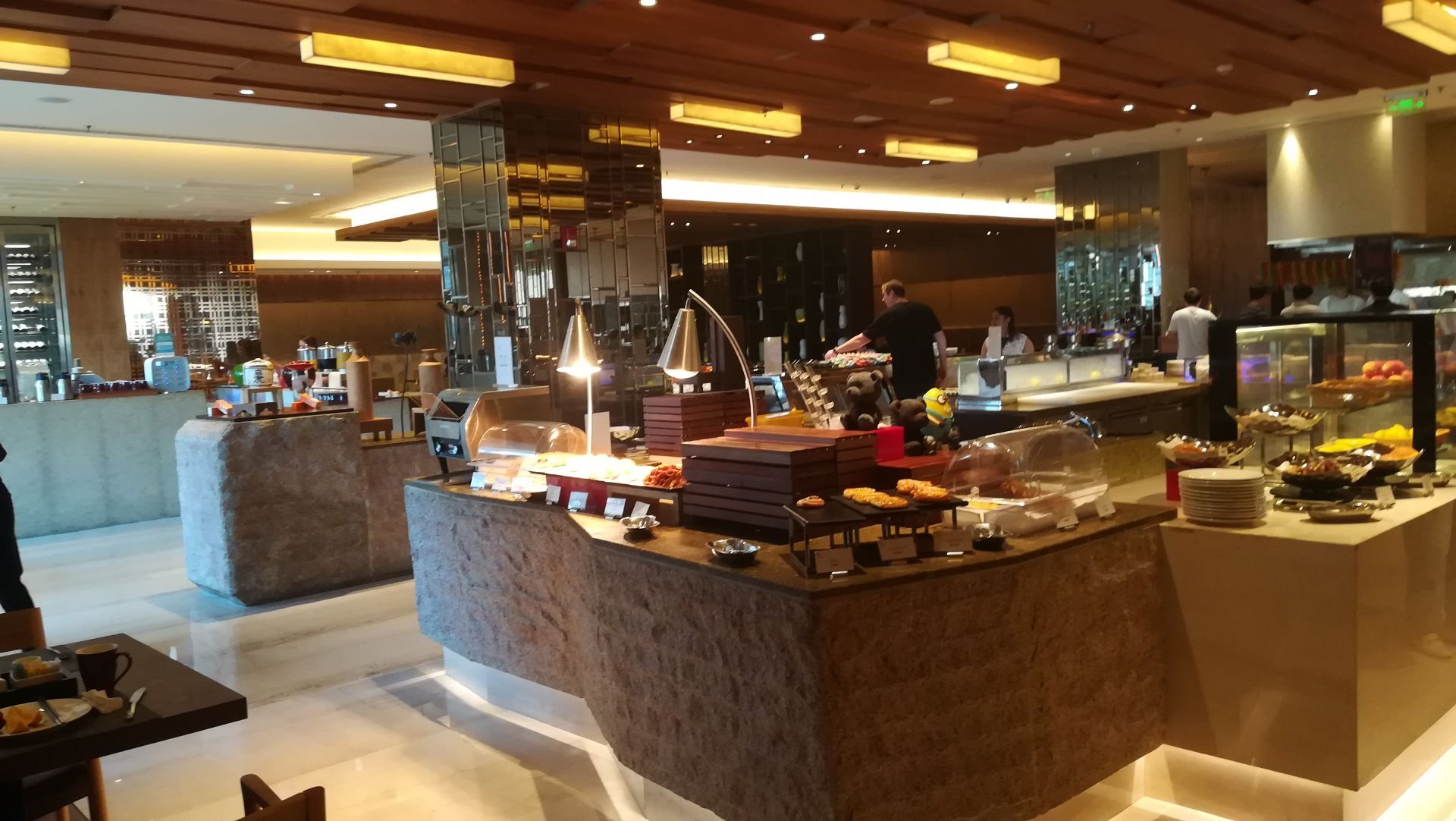 万豪中餐厅。 菜品还是挺丰富的,但是明显比以前有下降。种类少了,做的也没那么精致了。培根肥的一塌糊涂,都不是五花肉那种感觉了。 另外一个很明显的感受就是,服务变差了。除了有人在门口验证身份之外,根本就没有服务员引导入座,没人帮忙倒咖啡,难道是经济下滑裁员了吗?