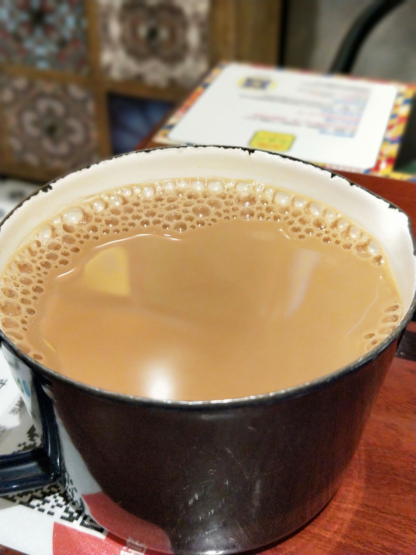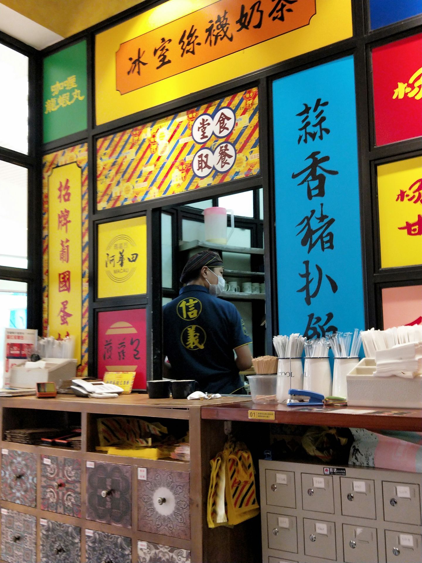 这家店在万象城的地下一层,每次路过的时候,只要是饭点,这里经常会排长队。 奶茶、葡式蛋挞、葡式鸡翅、车仔面...味道都是和澳门吃的一样,非常正宗,十分美味哦。特别是这里的蛋挞,每日新鲜出炉,口味香浓,十分细滑,浓郁的蛋香在口中徘徊,外层松化,入口即化,每日还会限量供应哦,你去晚了肯定就买不到了! 这里的环境和装修要比澳门的店要好了很多,这里有堂吃,也有外卖,整个店的装修风格十分的复古,一面墙上把澳门的景点都列了出来,一下子就能吸引住食客们的眼球。 个人认为这里的服务员也都是训练有素的,这里你可以扫码点单,还有服务员会帮你递上一次性的手套,让你感觉很是满意和贴心。