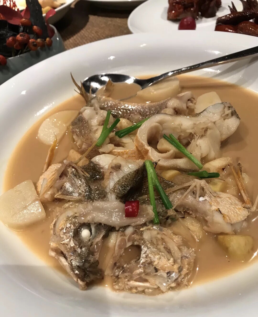 和黄杉鱼一起烧的年糕也特别好吃,很软很糯,只有刚做的年糕才会这样又柔软又不失韧劲