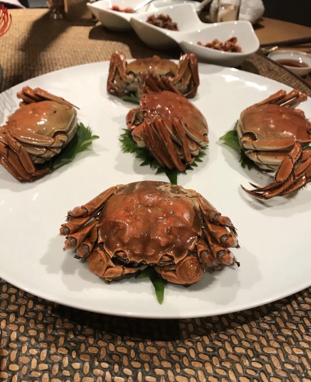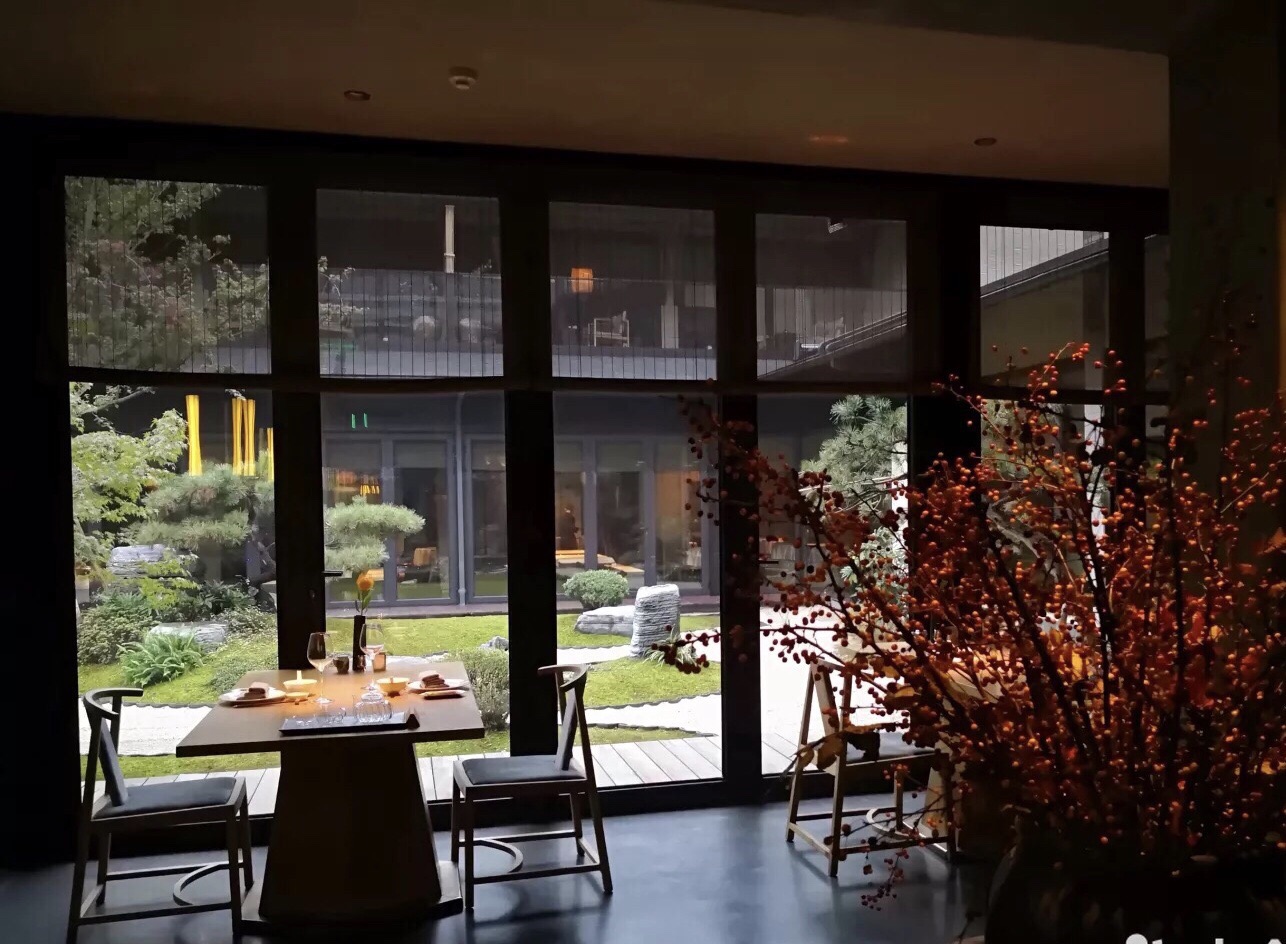 庭院式餐厅,环境优美,和西溪湿地环境非常融和。餐厅5点开始营业,但去早了或想聊天谈事,有供喝茶的地方,且称之为茶厅吧。茶厅有很多处,设计感很强,摆设精致,各个茶厅都自有风格,每一个都文雅又不失时尚。 这么美的餐厅价格当然也不菲。醉蟹128一只,炸带鱼120元一盘六块,算起来小小的一块要20元。不过带鱼的味道确实不错,不同于别处吃过的,酥酥脆脆,说不清是什么佐料做的,反正特别又好吃。再特别要提的是醉蟹,红颜色的醉蟹?对,熟醉蟹!蟹先冻死,再蒸熟,再醉。醉、咸的味道不重,满满的膏,好吃。 活辽参也是第一次吃,没有泡发过,个儿很小,切成筷子那么粗2cm左右的条,很脆,带一点温度,所以叫温拌活辽参。 活的黄杉鱼不是每天有供应的,这天正好空运到。鱼的肉质果然细嫩爽滑,味道跟黄鱼差不多,像是东海的鱼。 这么鲜活的海鲜,价格高也就可以理解了。 和黄杉鱼一起烧的年糕也特别好吃,很软很糯,只有刚做的年糕才会这样又柔软又不失韧劲。 环境和美食都让人流连忘返。