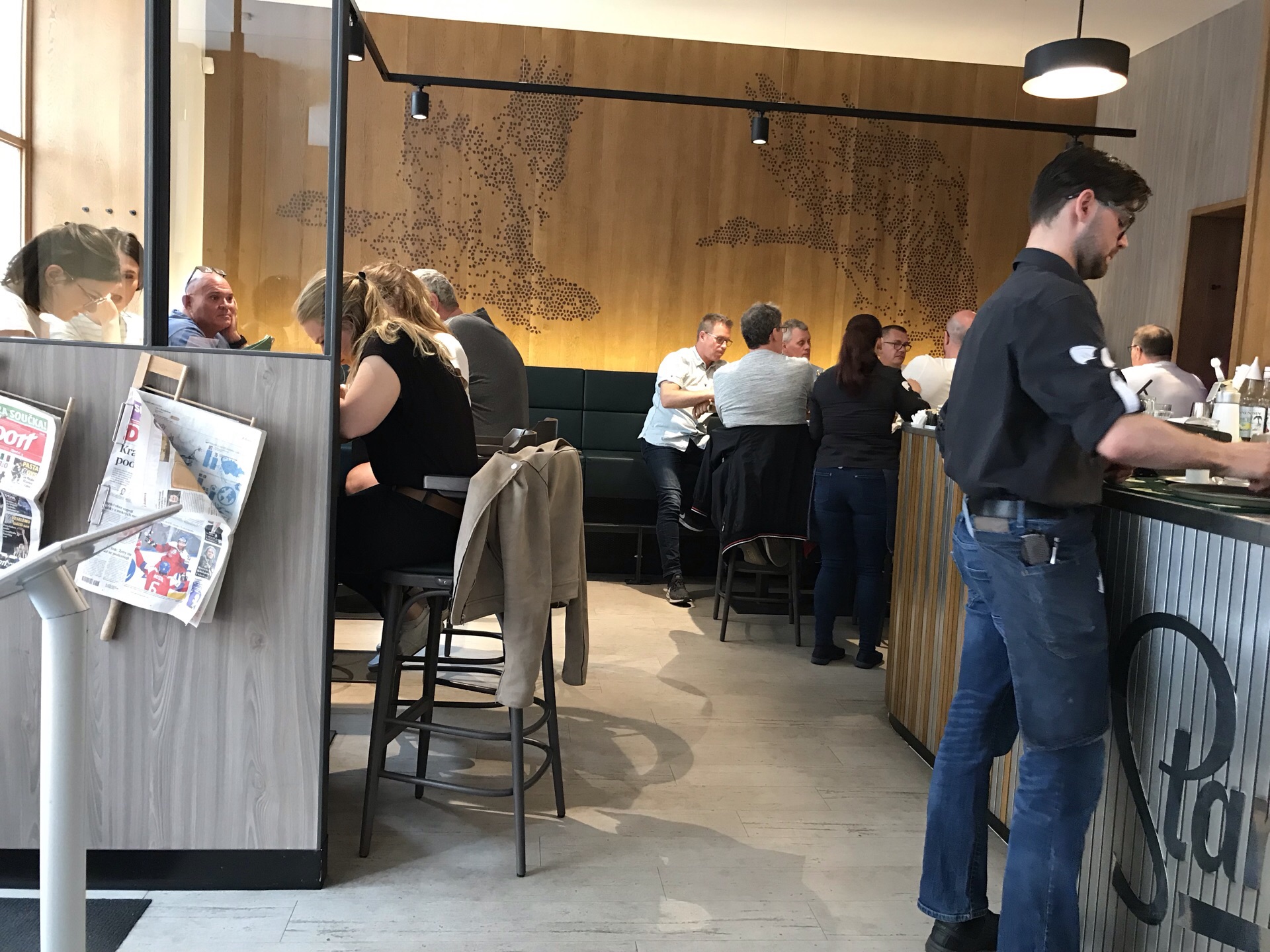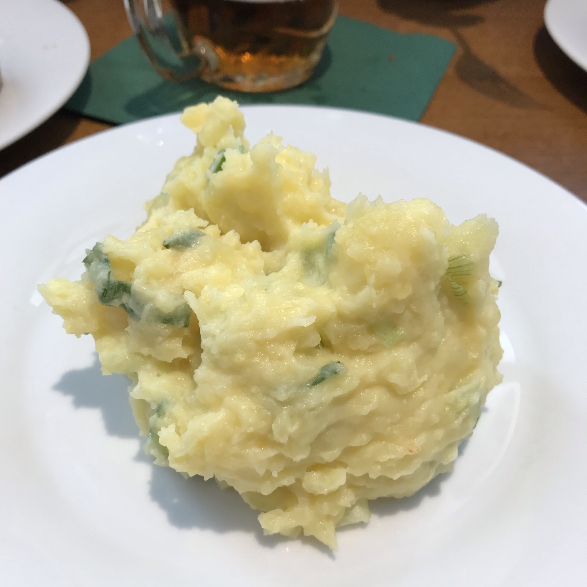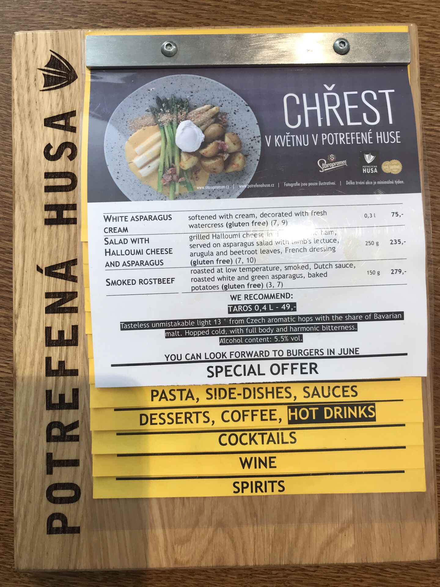 布拉格民宿老板推荐的一家当地人都去的本土菜餐厅,不是跳舞房子这家,是离市图书馆很近的那家。 烤肘子,310克朗,约一斤的纯肘子肉,配两种调味料,橙味蒜泥和各种腌料碎,肘子皮不腻,瘦肉很多也不老,肘子本身有微微的咸味,沾调料另有一番滋味,尤其橙味泥,味甜,可以试试。另外配两大片全麦面包。 烤猪肋排,295克朗,4块,甜口的,入味儿,肉比烤肘子的香,而且很容易脱骨,不沾任何料就很好吃,推荐!推荐!推荐! 土豆泥,45克朗,土豆、葱末、黄油调味,当主食很不错。 生啤,33克朗/小扎,微苦,没有比利时的好喝。 混合果汁和梨汁,45克朗一瓶,混合果汁比梨味的好喝。