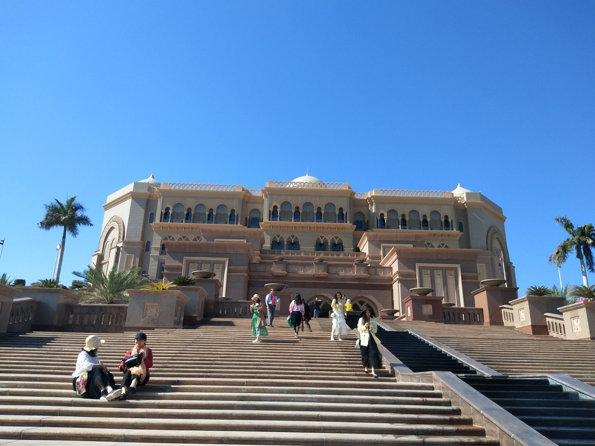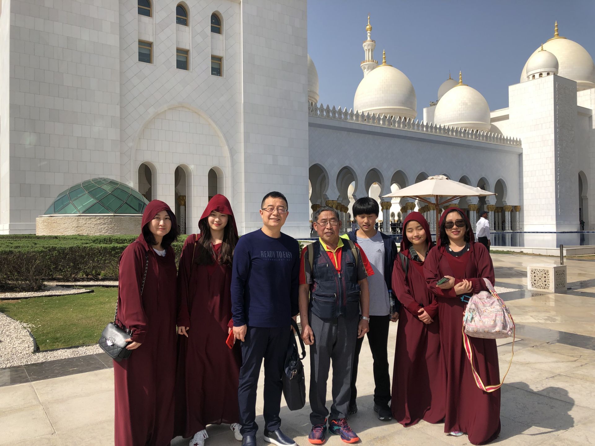 乘着观光bus游览阿布扎比城市景点,最大的清真寺、皇宫酒店、民俗村等等