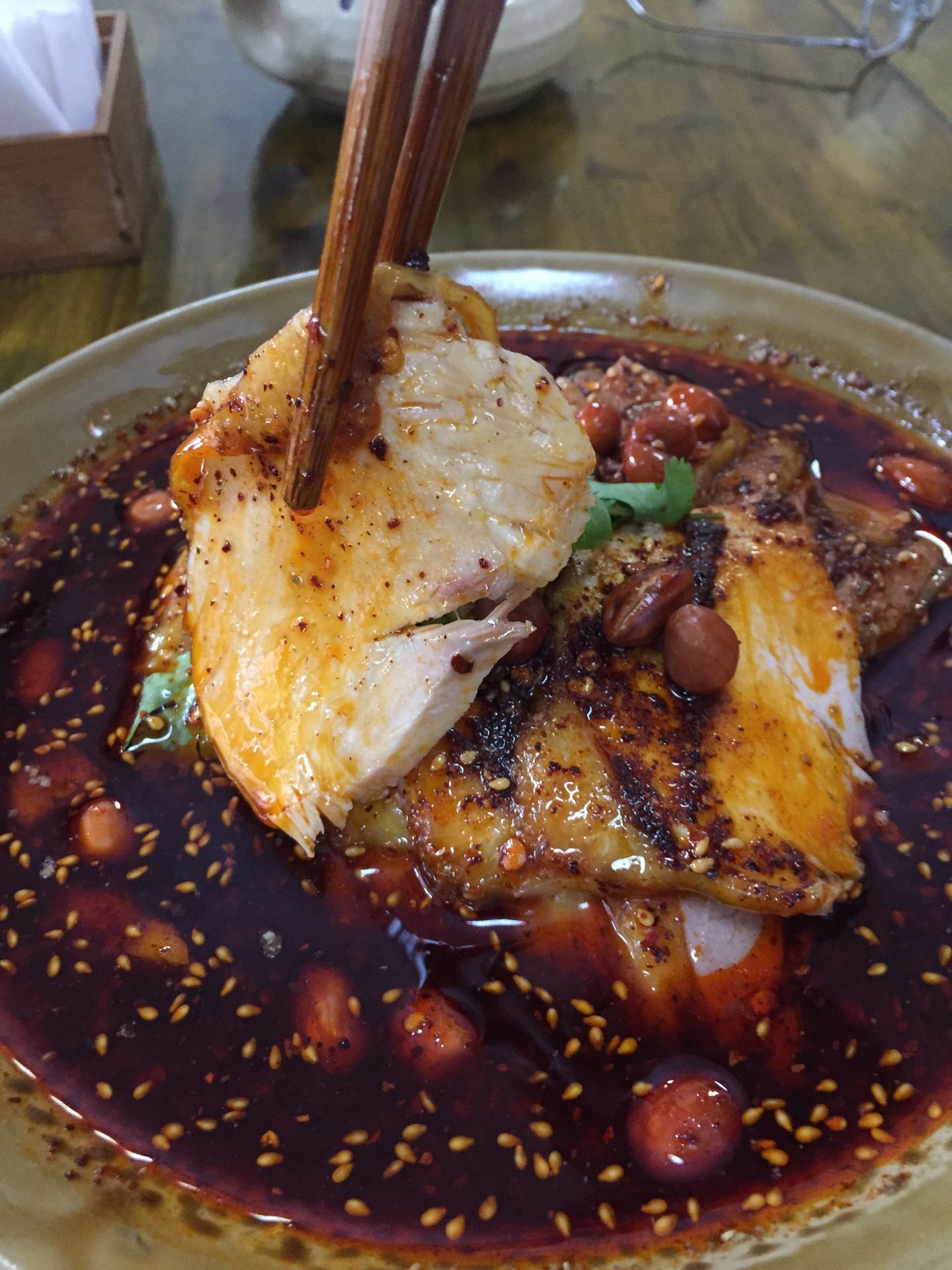 棒棒雞是一定要吃的,雞肉、雞血、筍片、花生,紅油拌出驚人的香味與口感棒棒雞是一定要吃的,雞肉、雞血、筍片、花生,紅油拌出驚人的香味與口感。 藿香河魚好大一條,做的也很美味,強烈推薦。 二個人三個菜才102元,肚子不夠大肯定裝不下,有到滎經一定要去,環境好,服務佳。