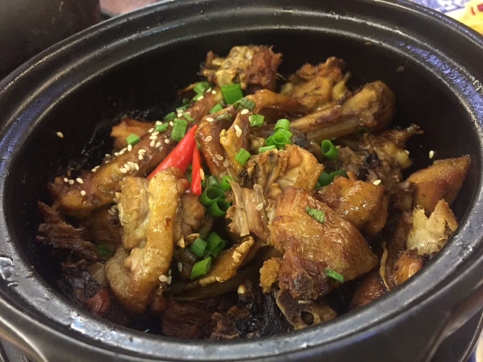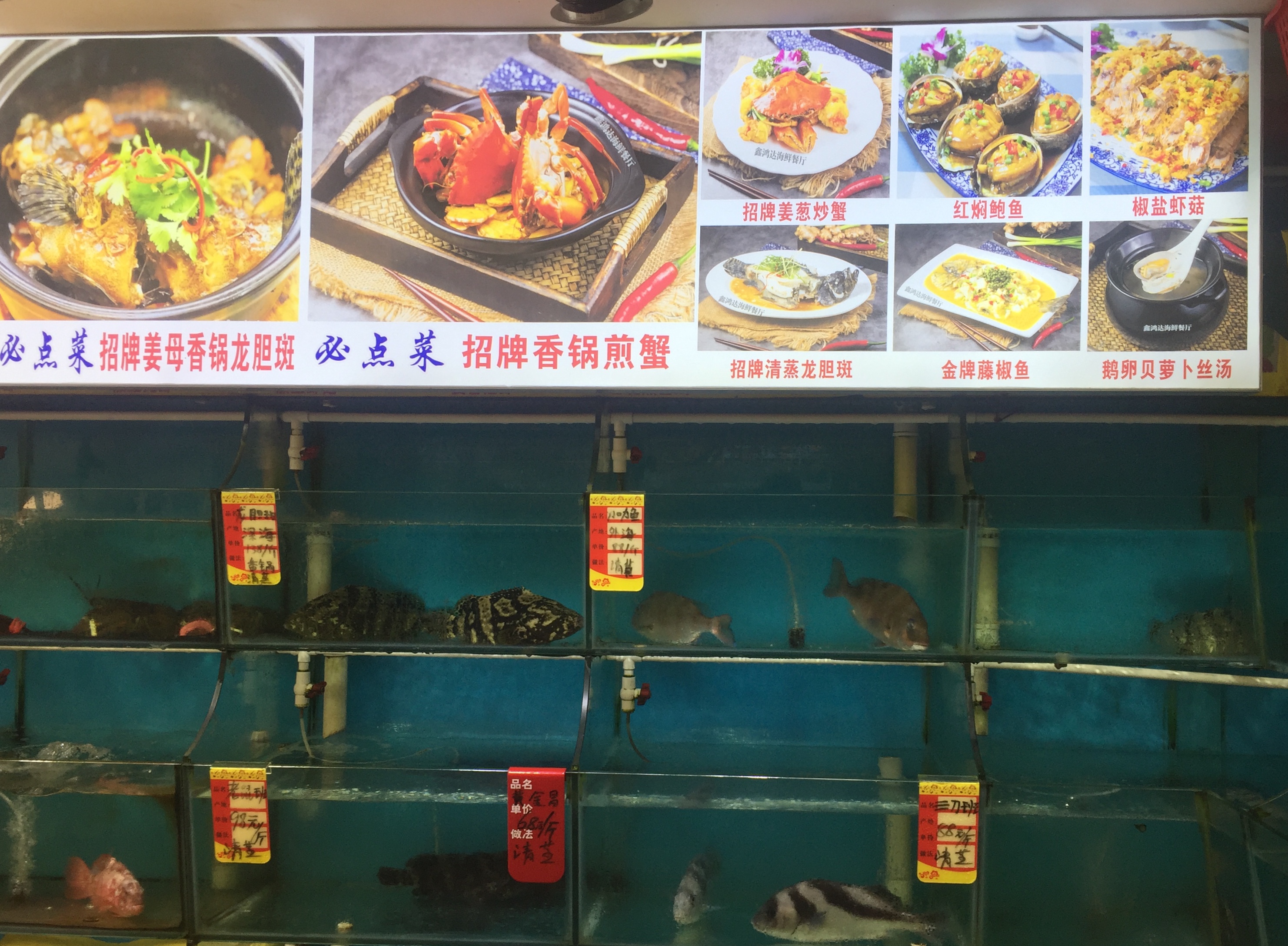 「姜母鸭」58元 闻起来很香,鸭肉又嫩又入味,而且姜片也能吃。环境就是大排档的样子,海鲜池挺大的