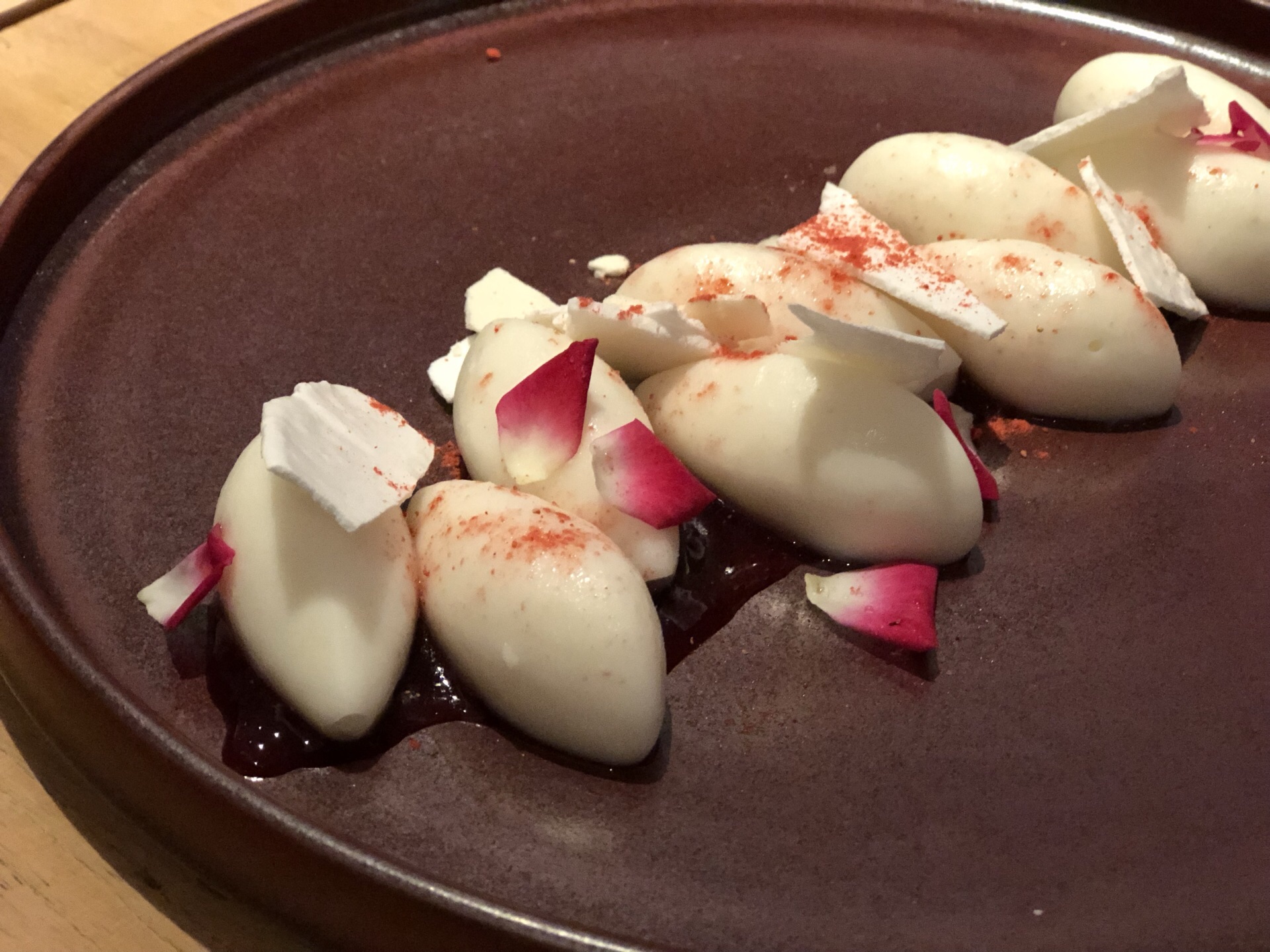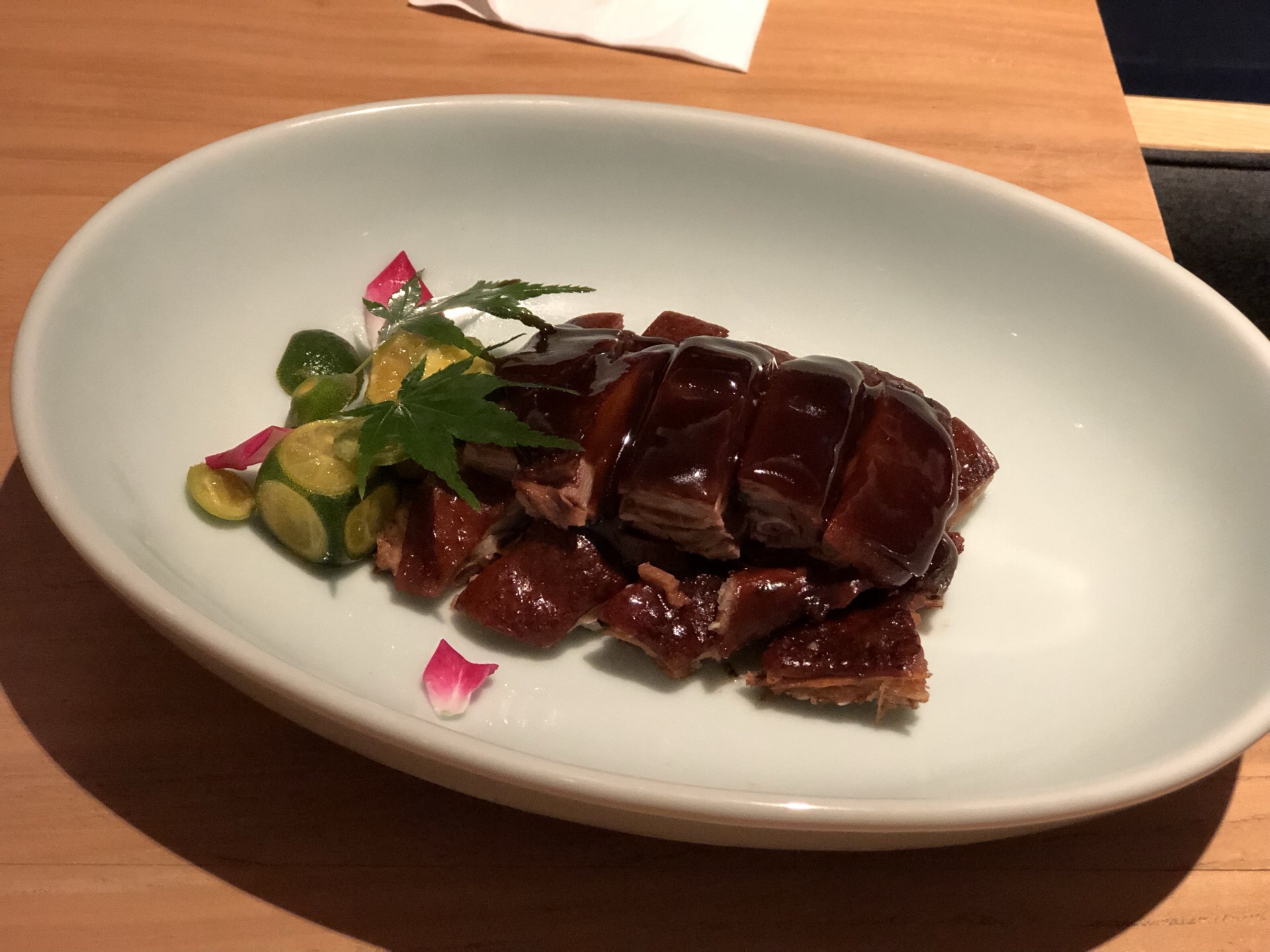 将“春色”常驻于此,菜品也是一改浓油赤酱地本色,篇小清新范儿~即使立夏将至,烈日炎炎,仍能在这栋白色的小别墅里找到几丝春意,甚是心动~店里的装修也是一改本帮菜的古色古香~打造成空间独立感很强的和式感觉~每一个盆栽都是邀请日籍花艺师度身定做的说,立志于打造成这一桌融合本帮菜~ 晴色的夜晚餐厅外霓虹闪烁,坐在户外也是不错的选择哦~每一桌的餐单都是呈现纸质的绳缚放置于餐桌上,等待食客来开启~ 玲珑皮蛋,小清新的本帮菜以凉菜开启~鹌鹑蛋颗颗晶莹剔透腌制成皮蛋的状态~点缀以剁椒,带点鲜味,增加口感,不失为一道极好的开胃凉菜~ 脆片冰激凌山药,将山药打制成绵密的冰激凌口感,有宛如慕斯,撒上蔓越莓美,亦是凉菜亦是甜品,旁边的蛋白饼脆片增加口感,很棒的说,摆盘也很精美。 店里最有名的招牌菜就是这道潮汕水晶冻鱼了,笋壳鱼做底,一改以往烹蒸的手法,而是先蒸后腌再冷藏,使得鱼肉的口感有一种入口即化的感觉~,再点缀上黄豆酱,一口鱼肉下口,黄豆酱提鲜~入口即化的感觉,一口春意融在口中~ 白灼脆猪肝朋友要点的时候,我一开始是拒绝的,因为本身不爱,猪肝自带的内脏气味,但是看排名如此之高,就由得她试试~上桌的猪肝倒是没啥一样,切得也很随意,可一入口就被惊艳到了~酒香满口四溢~盖住了猪肝本有的腥味,原以为看这个色泽猪肝会比较地老没想到,吃到嘴里确实脆嫩的,太神奇了,这个酱汁带点鲜甜,非常地喜欢,下面铺垫的豆芽也很好吃,满口的蛋白质~ 玉米马蹄炖鸡爪,热菜以鲜汤开启,脆甜的玉米马蹄加上鸡爪一起炖煮,这个时节非常地润肺补气,时令好汤~ 龙虾麻婆豆腐,招牌必点,首先这道菜绝对没有看上去那么辣~看似普普通通的麻婆豆腐加上了小龙虾的点缀,按照宫保鸡丁的做法炮制的这道宫保小龙虾,怎能不多下几口饭? 荷香腊味蒸鸡,鸡肉的菜品本身就是我的大爱,加上腊肉和荷叶的点缀,清香了不少,仿佛乡间的野趣~回味不已~ 原味烧仔排,用梅干菜烧汁,我的最爱,选用的梅干菜很清香,提升了不少鲜度~仔排选用的肉的部位也很好,精肉为多,却炖得酥烂~ 乡村石锅豆腐,最爱老豆腐的石墨香以及那浓醇的汤头啦~咸肉吊鲜,春意满满~ 自制腊肉炒花生苗,好一道特别地素菜,花生苗外面不多见~鲜汁脆甜~ 主食一道简简单单的开阳葱油拌面,却让我感受到,哦~实实在在的本帮口味~ 甜品一改以往的酒酿小圆子,来道特别地十年陈皮红豆沙,陈皮的香久久不能