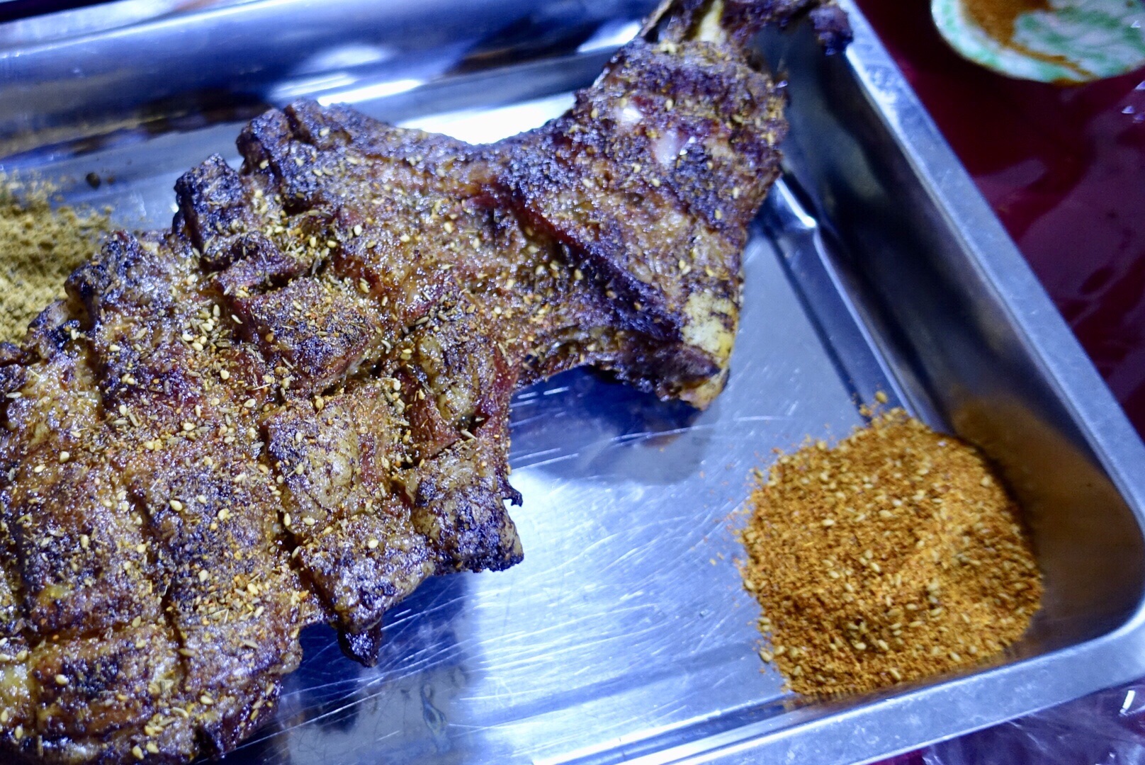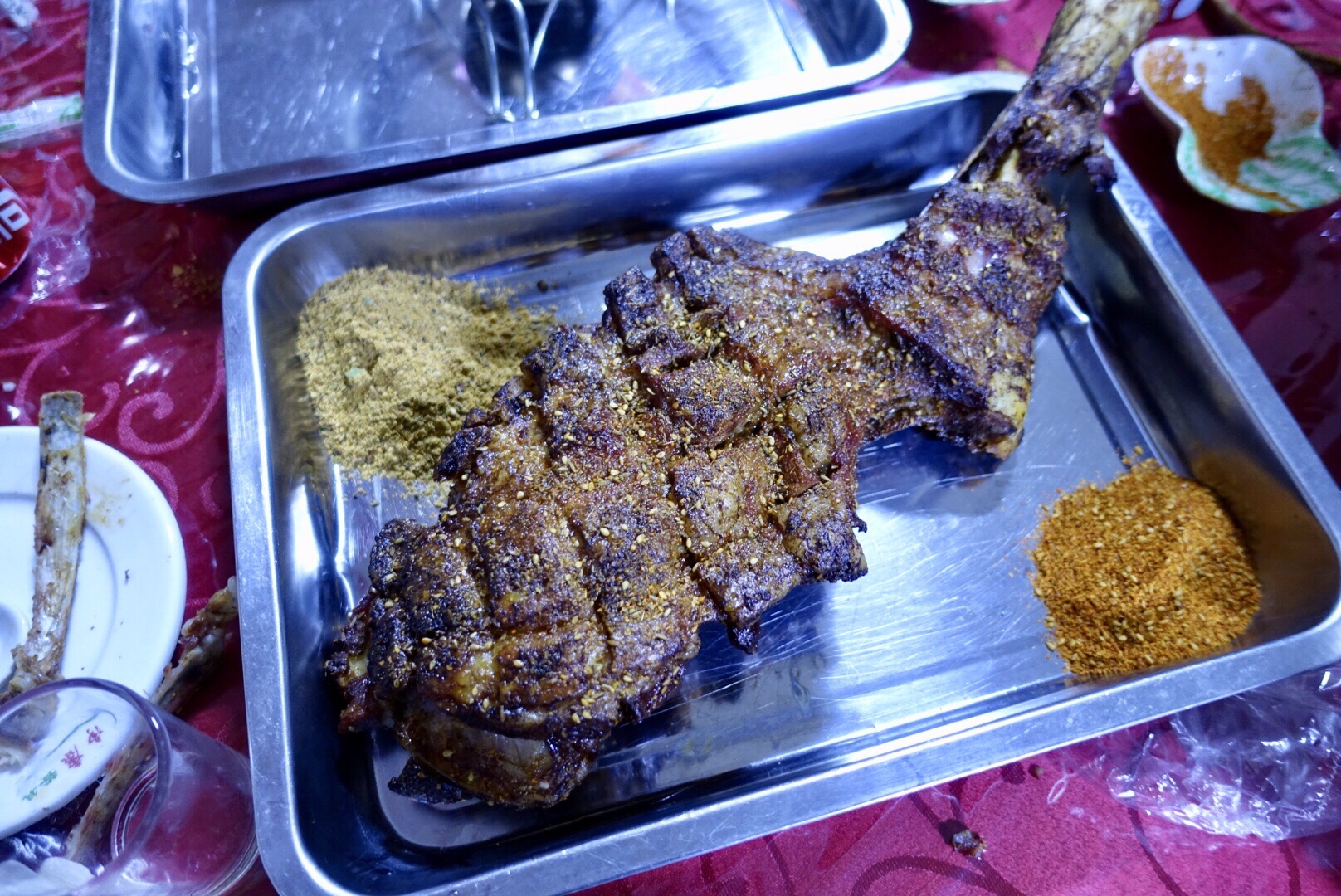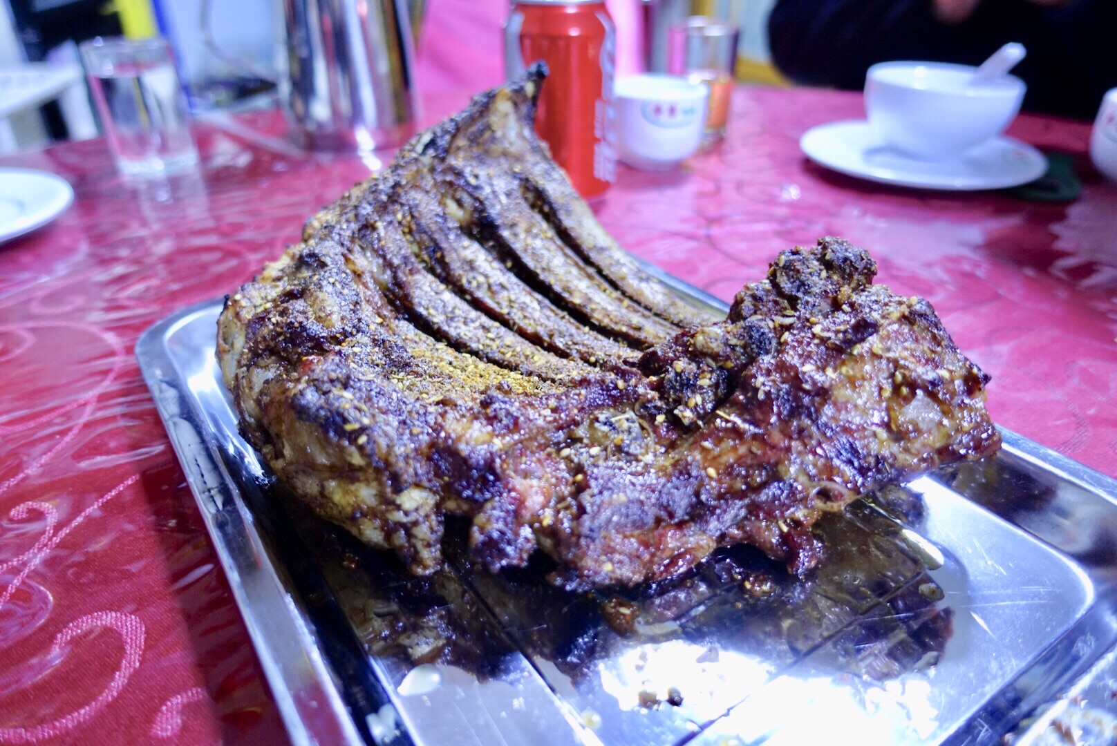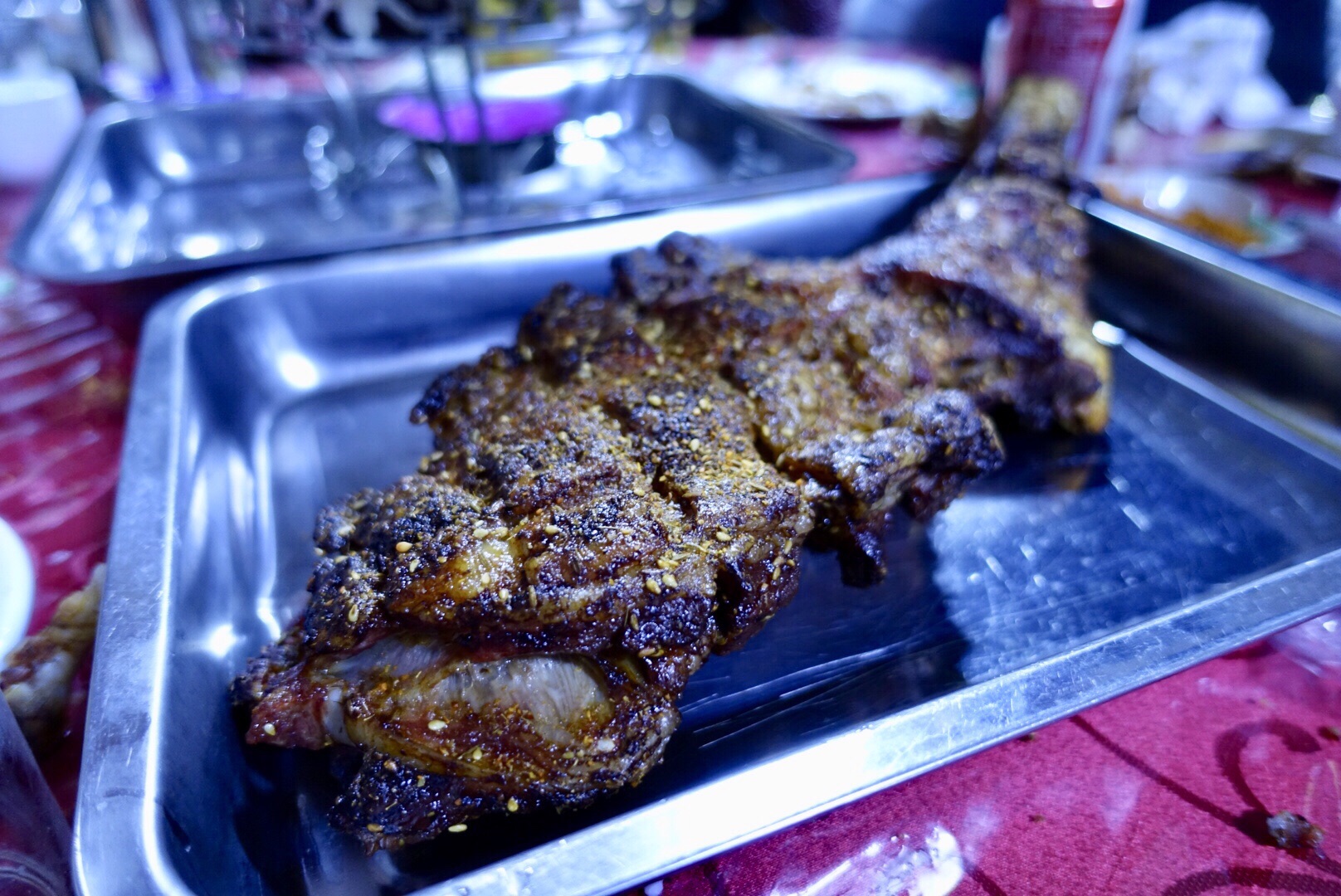夜宿柴河月亮小镇,在老板娘的推荐下吃了宫廷锅中锅。当晚小镇全镇停电,店里也是,靠着发电机来了几分钟店后游熄灭了,但还好不影响大家的兴致。老板娘很忙,但也挺周到的。点了烤羊排,烤羊腿,羊杂汤,拍黄瓜,拍黄瓜还点了两份。羊排和羊腿上来的,全桌沸腾,用小刀慢慢切下来,分食,不沾任何调料就已经很入味很好吃了。对于我们这种南方人来说真是太满足了,肉质新鲜,羊油很香,羊杂汤鲜美,可以无限加,我们前后加了3次,加的都不好意思了。拍黄瓜清口,吃完一份又点了一份,忽然有点爱上了拍黄瓜。最后结账的时候,发现人均也没到60元,真的是太便宜太便宜了,这样一顿在杭州,人均100都愿意出。很满足,十分推荐。