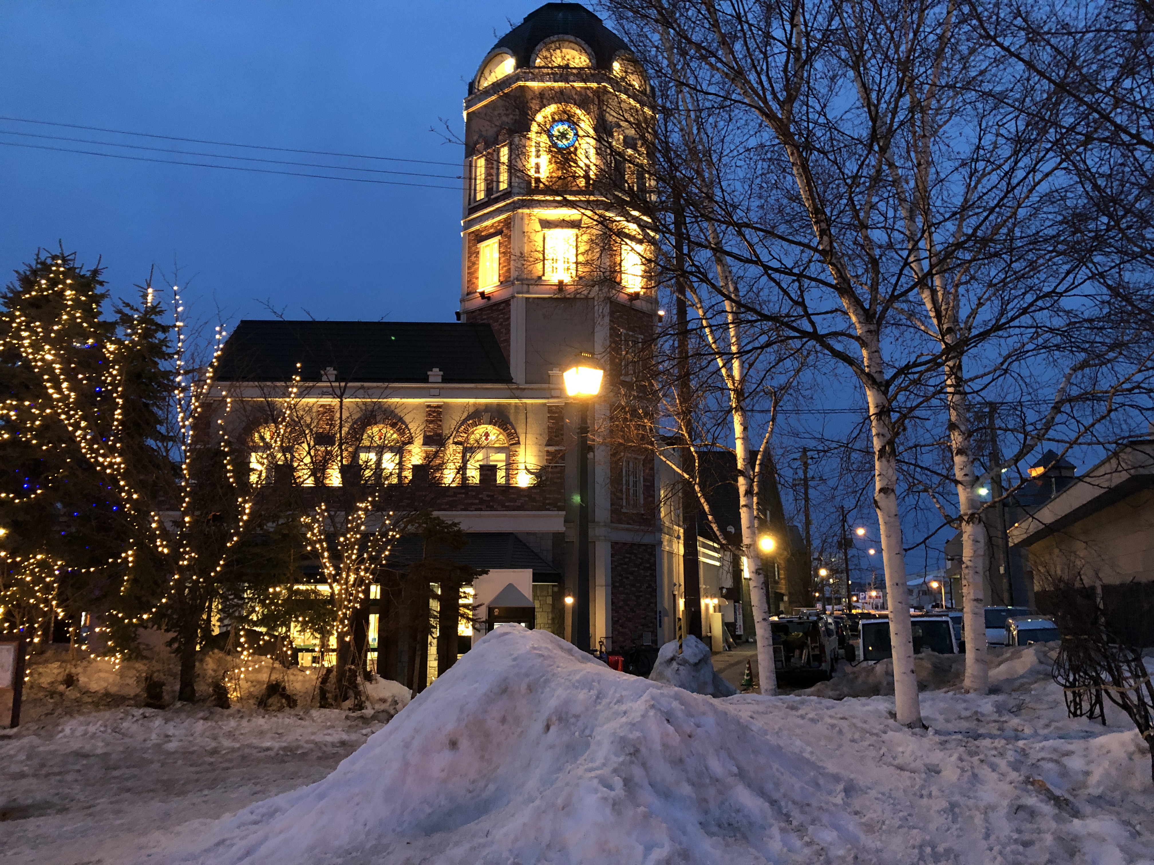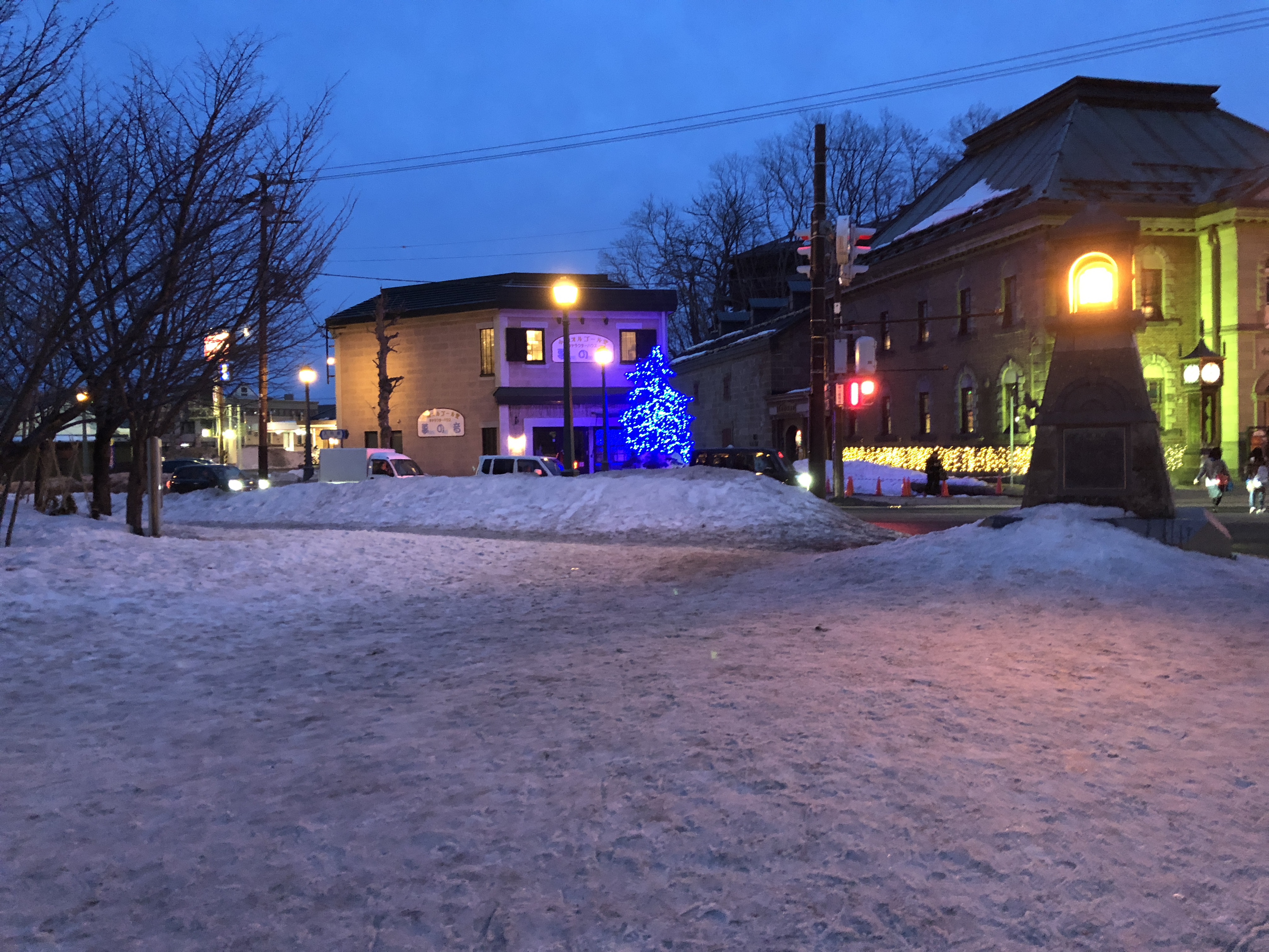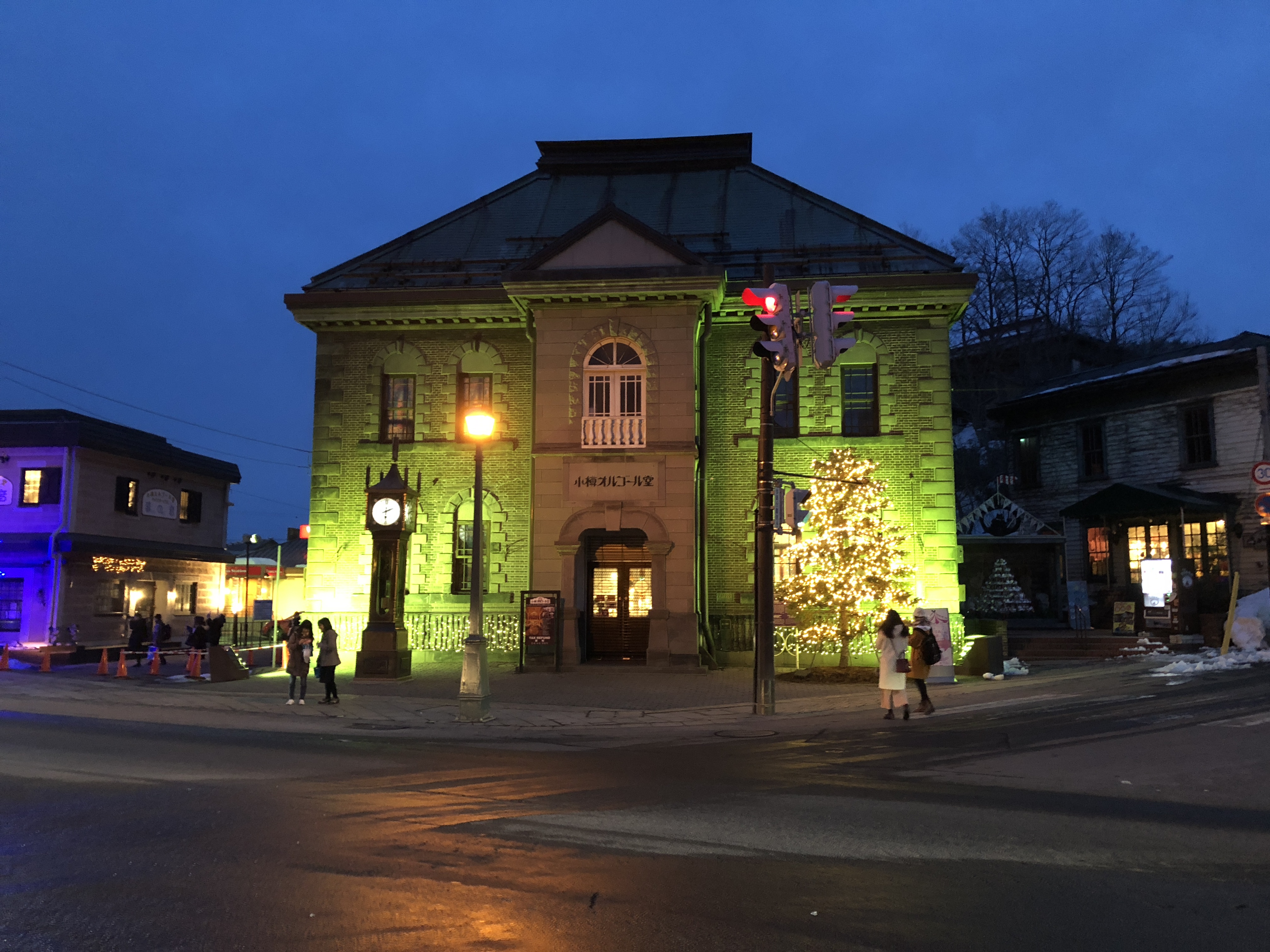 童话十字路口是指小樽音乐盒堂(主馆)前的路口,这里是可以凸显出小樽浪漫的区域。街道两旁完整保留了许多日本明治到大正年间的欧式风格建筑,童话气息十足,特别是冬天的夜晚,地面上积雪,建筑的灯光开启,非常浪漫,很多游客都会来这里取景拍照。我们去的时候小樽音乐盒堂已经关闭了,所以只能看看外观,小樽音乐盒堂门前的蒸汽钟倒是每15分钟发出呼呼的响声。