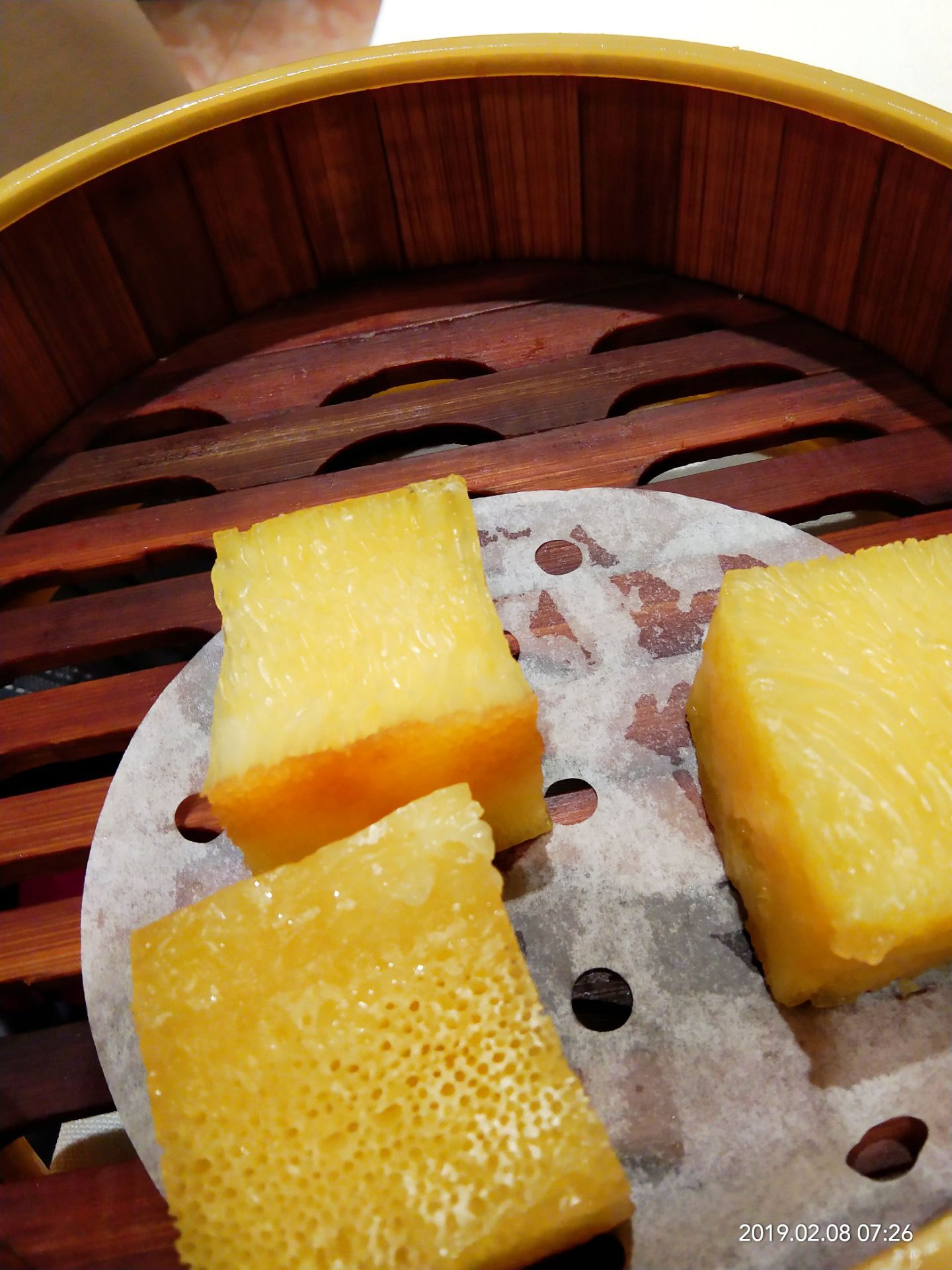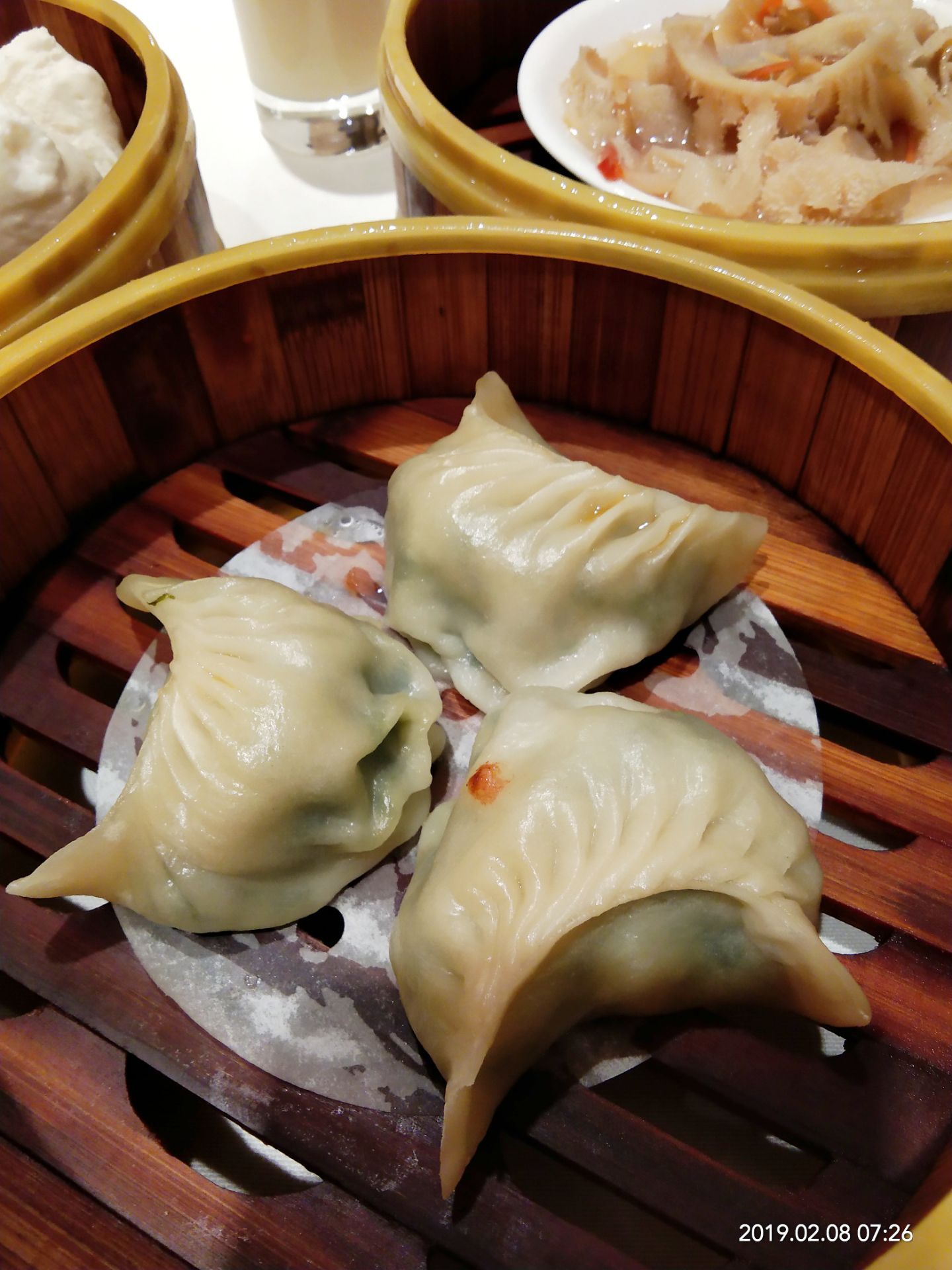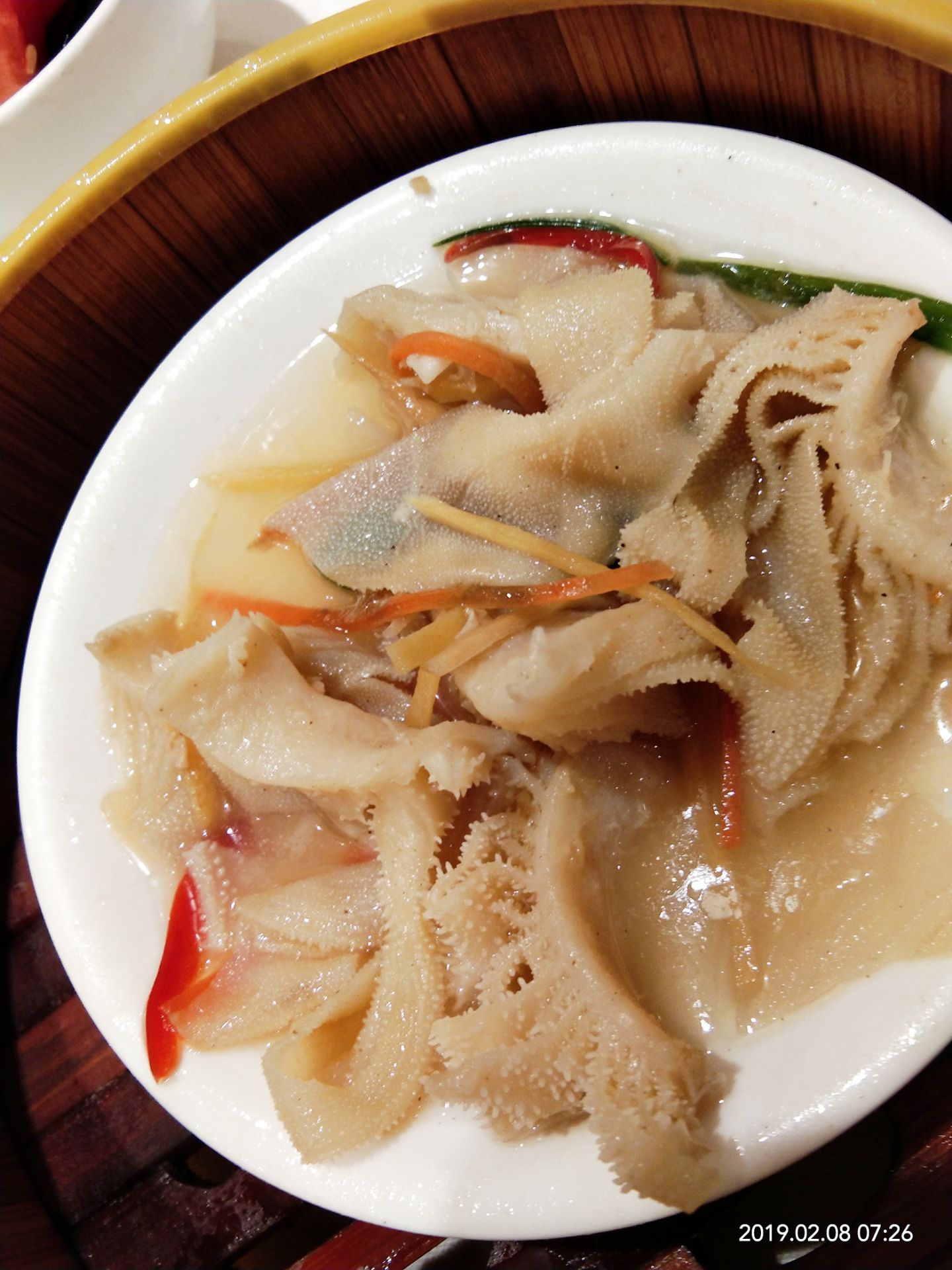 2019年春节成都之行( ̄y▽ ̄)~*捂嘴偷笑 在成都的吃吃喝喝玩玩的日子里,真是幸福,好怀念哦⊙∀⊙!这是吃的一次自助早茶,从高新区悠方骑共享单车一早到达,嘛呀,好远哦,导航不准[阴险][阴险] 七点多到达,已经有就餐的了,但还是有很多空位,找个离着餐台近的,方便,哈哈 喜欢凤爪,特别好,脱骨,我好像吃了三盘[胜利] 奶黄包是要到窗口单独领的,吃完一盘就可以去要,夹心给力,吃一个基本顶住啦[笑哭] 小猪蹄子,我喜欢,Q弹的肉肉,粘嘴,这胶原蛋白补得来。 毛肚,一小盘分量那么多,味道棒棒哒,没敢多吃,不好消化。 原本以为早茶的自助应该能吃很多,非也,也是眼睛不饱肚子装不下的节奏,唉,如果青岛有这品质的早茶自助就好了。 服务员们可能因为起太早的缘故,都不玩不热的。