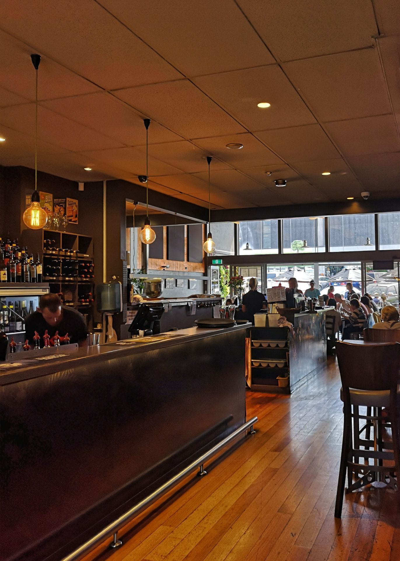 这家必须打满分的店,服务态度好,菜水合口味,就餐环境也佳,位置就在小镇钟塔旁边。酒吧有生啤供应,由于有好几个品种,我们一时拿不准,结果吧台服务生让我们先免费试吃,然后再决定,一下子暖到了我们,要说有什么不足那就是等上菜的时间稍长,可能是因为我们点的有点多,而老外是把所有点的菜烧好后一起端上来的,因此慢了吧。