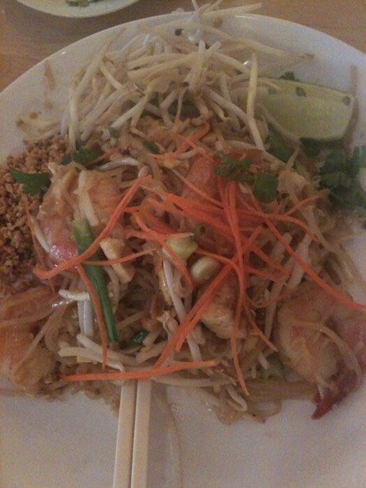 我们去过好几家位于林肯广场的泰式餐厅,并决定来这家餐厅尝尝。首先上的是酸梅酱春卷,它没有让我们失望。主菜是炒酒鬼(宽面条和竹笋,甜椒,西红柿,胡萝卜和罗勒一起炒)...这一段我是抄的。他们还问了我们想要多辣的菜,很贴心。盘子上菜的份量太多了,足够打包回家了。还不到8美元,太不可思议了。菜单很大,我们还想进一步探索这家餐厅。这家餐厅可以自带酒水。装潢很漂亮,服务很友好,而且非常干净。这片地区到处都是泰国餐厅...每一家我都想尝尝!