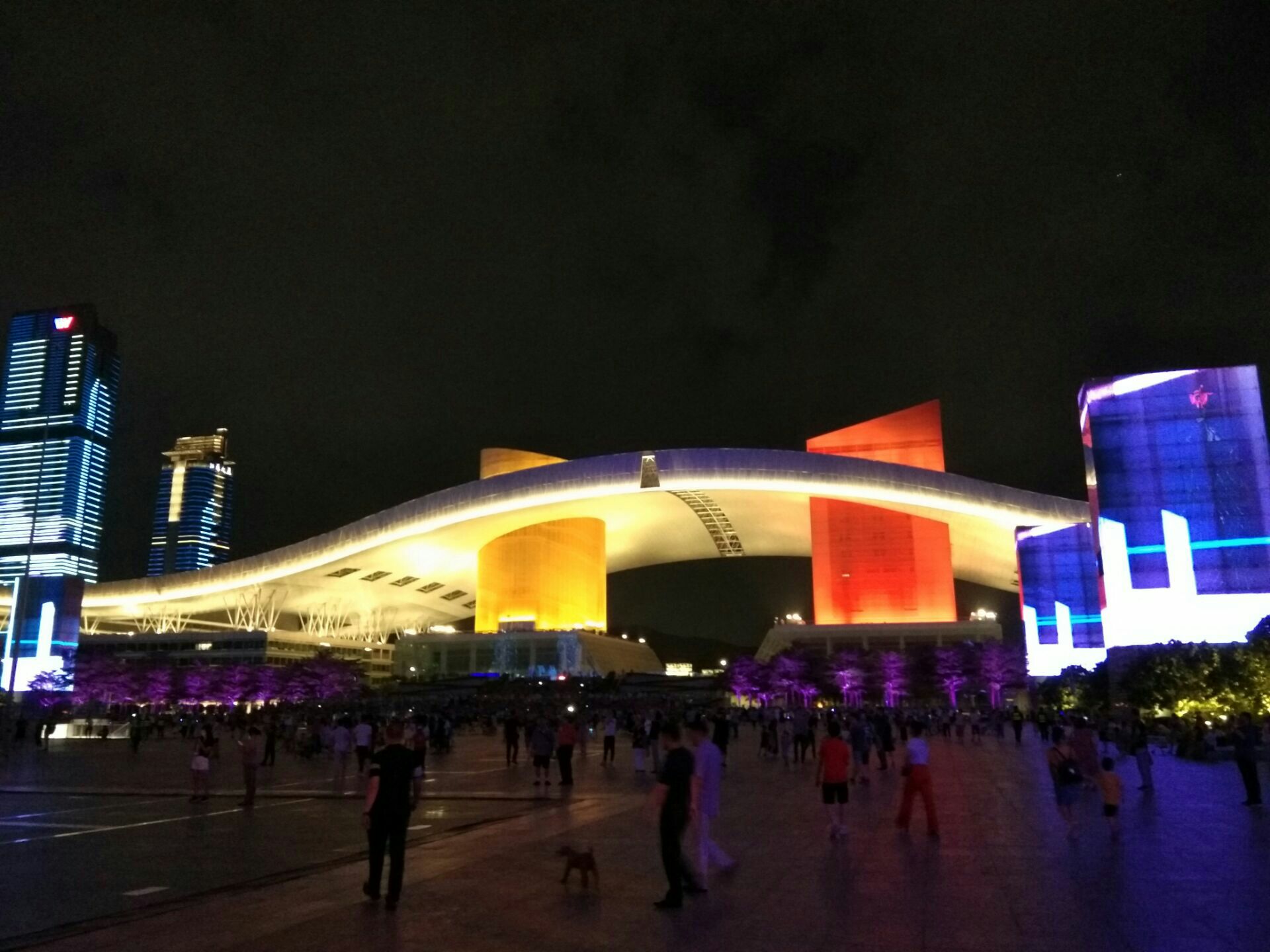 深圳市民广场激情灯光秀――绝对意外惊喜!晚餐后散步偶遇!时长15分钟,20:30旧版“辉煌新时代”(21:30新版“活力都市”)。可惜不想再等,只看了旧版。但已足够精彩震撼!留待下次吧!更幸运的是,本来周五六和大节日才有,恰逢深圳文博会期间每晚都有!
