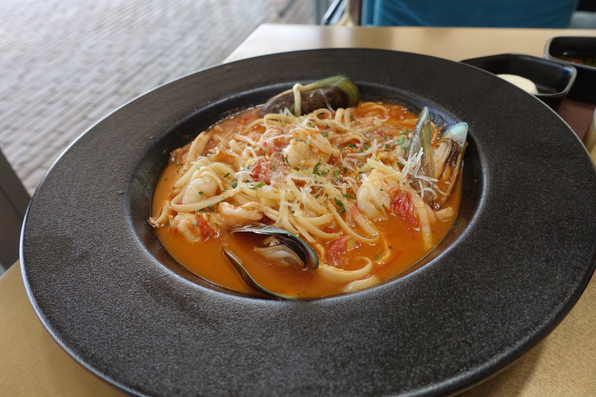 海鲜饭无比正宗,赠送的面包调料就有两种,诚意十足,第二天的早餐差不多都带出来了,加柠檬水也很及...正对着孤独图书馆,海鲜汤,海鲜饭无比正宗,赠送的面包调料就有两种,诚意十足,第二天的早餐差不多都带出来了,加柠檬水也很及时,二层有少量桌椅可以吹吹海风,挺完美的。