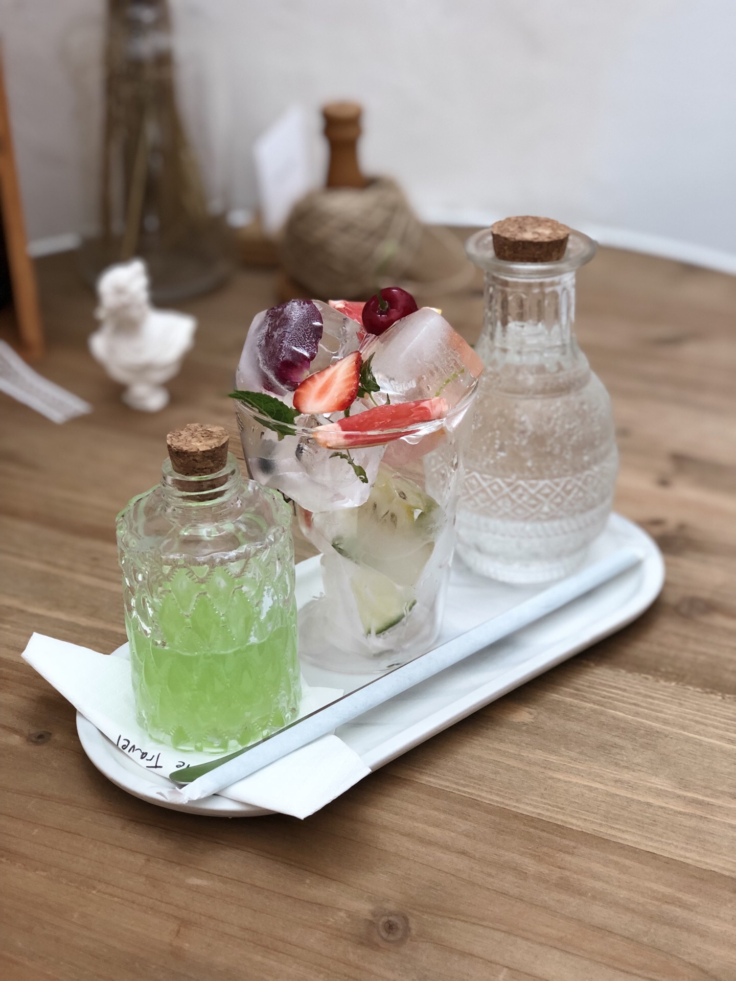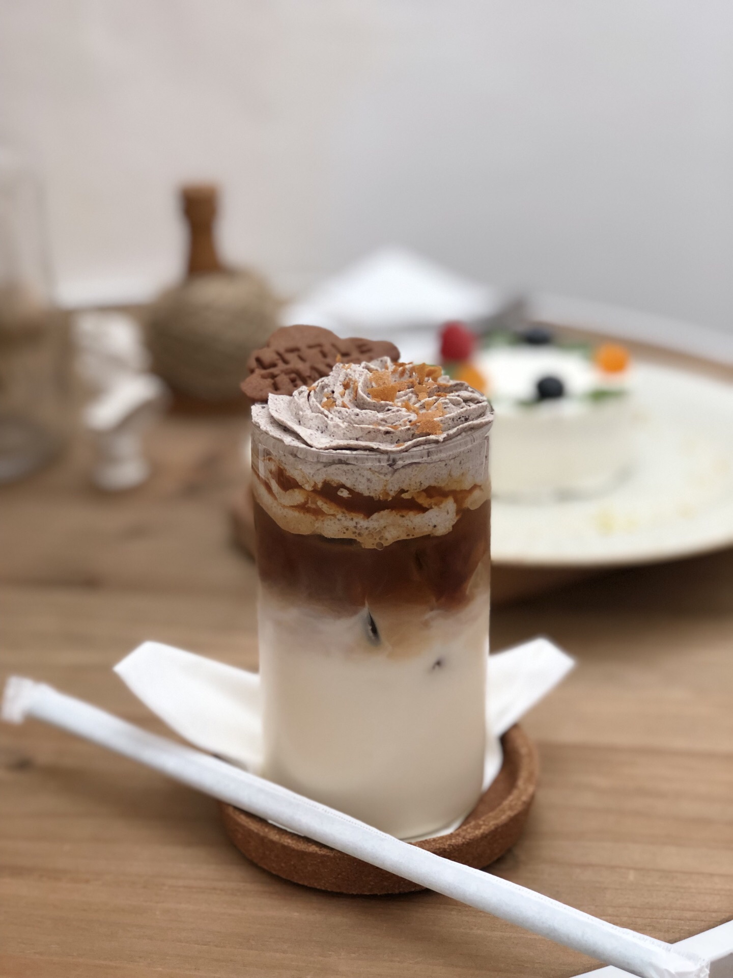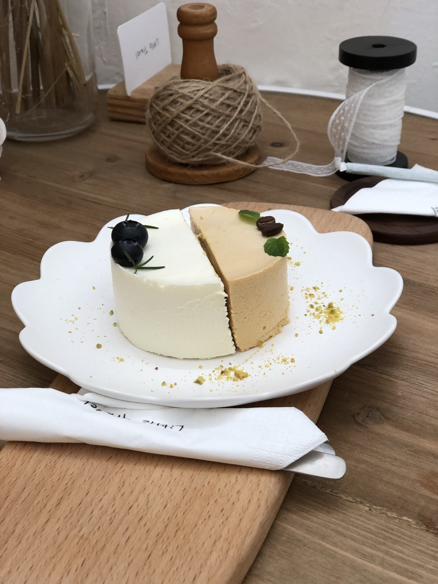 520拔草厘途,开心 意外的发现,这家店开在我扯证的旁边 我想这是冥冥之中注定的缘分 [环境] 我喜欢他家的环境,森林系的风格 墙上很多装饰物都是手工制作的,看起来更加突出森林系的风格。 里面屋里的玻璃有阳光晒进来的时候,我惊呼了 真的太棒了。 [服务] 店员的服务很好,点餐很顺利 会告知我们饮品或者甜品的食用方法,很贴心。 「白桃伯爵」 我喜欢的一款甜品,虽不是特推款,但是这款适合盖盖,口感适合这个夏天。 第一口酸酸的味道,遇见蛋糕,综合两者的味道,刚刚好,果肉的味道淡淡的清香。 咬一口细细品味。 「马里奥」 一款咖啡饮品,这是我爱的饮品 需要搅拌喝,咖啡的味道不会苦涩,牛奶丝滑 上层奥利奥是我的最爱,一款饮品汇集了我喜欢的几款食材,大爱。 「荷兰烤松饼」 松饼趁热吃,搭配水果,很香 「夏至气泡水」 气泡水➕薄荷,薄荷根据自己的需求加,一定要搅拌均匀才喝,颜值颇高,味道很清爽。 「红丝绒蛋糕」 一款小清新的蛋糕,不会甜腻,奶油很细滑 上面的草莓很新鲜,很喜欢的一款甜品。 他家,我是真的爱了,环境安静 甜品,饮品都不错,适合闺蜜聚会
