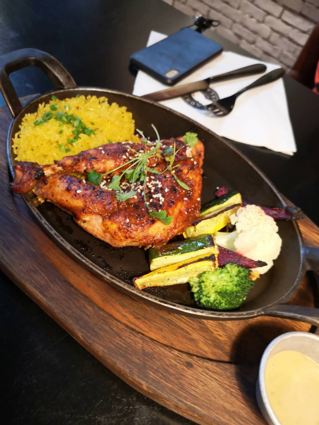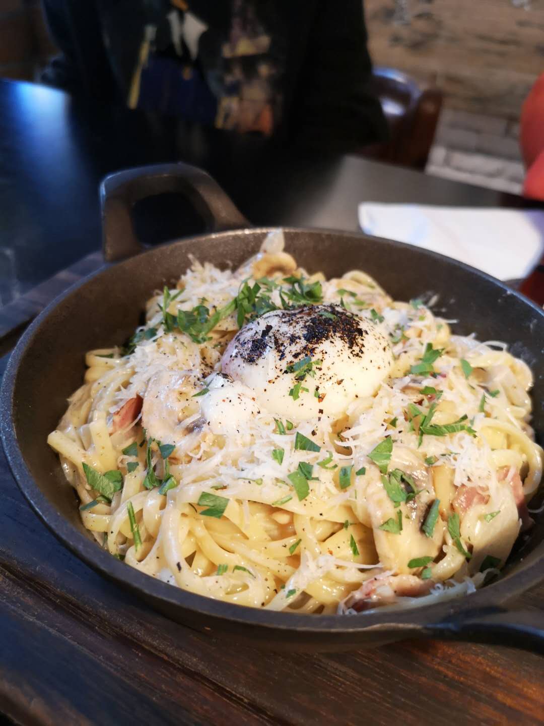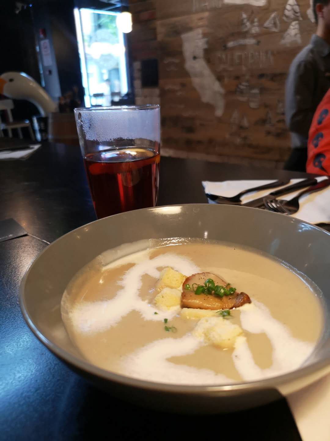 以往都是下了班之后来这边小酌,这次是第一次过来吃午餐。午市没有晚市的时候人多,中午有套餐,性价比挺高,蘑菇汤浓稠,烤鸡腿儿老大一个,不过味道不怎么喜欢,香料味道有些重,个人还是比较喜欢高热量的意面,如果意面是细面就好了,这边是宽面,每份套餐都有一杯饮料,一个套餐吃下来还是吃的挺饱的。
