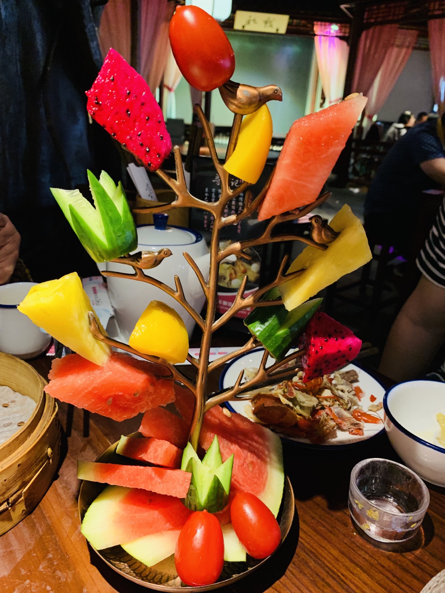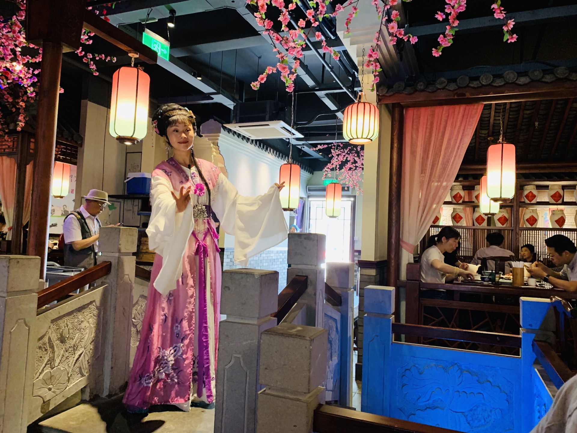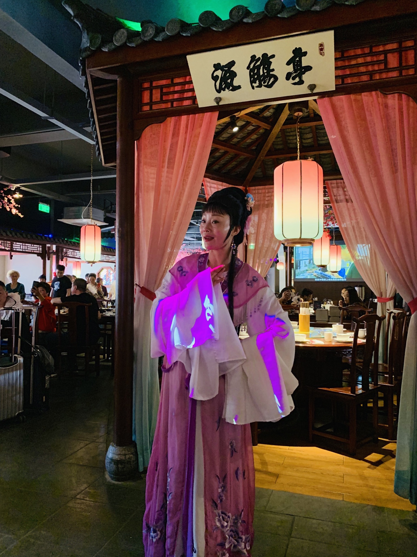 这家网评第一,想着游玩最后一站尝试,可能期望太高,反而小失望了。店里人多嘈杂,饭店还有越剧唱段助兴,想增添一些气氛,可反而用餐环境不好,为了掩盖店内的嘈杂,音响开得很大声,演员唱时没有听众,各说各的,各拍各的,一片混乱景象,只有互动主持,增饮黄酒那段,才有很多人涌上拿酒,我们不太能喝,人少时拿一小杯试试而已,5年陈微微甜。整个用餐环境不理想。现在都是网络下单,选了几道网红菜和时令菜。糟鸡量挺大,起码半只,糟味感觉不是很浓郁,鸡肉口感有点老,不够嫩鲜。醉小龙虾(48元)就是黄酒浸泡的,为了驱寒,还加了花椒,小龙虾壳还没硬,肉质不够紧实,感觉不如南京大排档的花雕小龙虾好吃,看来用什么黄酒很重要。黄酒汤包(19元6只)端上来,已经看不到什么汤汁,有点蒸过头的感觉,味道也普通,不如前两天吃的剡记嵊州轻食家的汤包好吃,那家12元8只,好吃性价比。儿时猪油酱油饭虽然比御龙井的要便宜2元,才3元一份,可真心没有那的好吃,首先用的米饭感觉不同,同时御龙井家的饭还家了几片小香肠,那个香[色]父母都说是他们那个年代的味道,而且加了香肠比他们那个时候更好吃。这里菜味只能说无功也无过。桂花米酒,其实就是酒酿的味道,可酒精浓度应该更高,感觉有点后劲。最后提的是网评第一的烩三鲜(88元),满满一大盘价格很实惠,喝了口汤,挺鲜,这么多食材下去不鲜很难。可能嘴比较挑,食材中吃到丸子和蛋饺有了异味,就没再敢碰,让服务员来试,她二话不说,根本不试就给退了,说店里规矩,凡客人觉得不满意的可直接退,后来后厨还赠送了水果架表示歉意。店里态度是好的,可对待食物还是要更严谨一些。并不是要闹事,只是天越来越热了,食材新鲜度一定要注意。真吃出问题麻烦就大了。