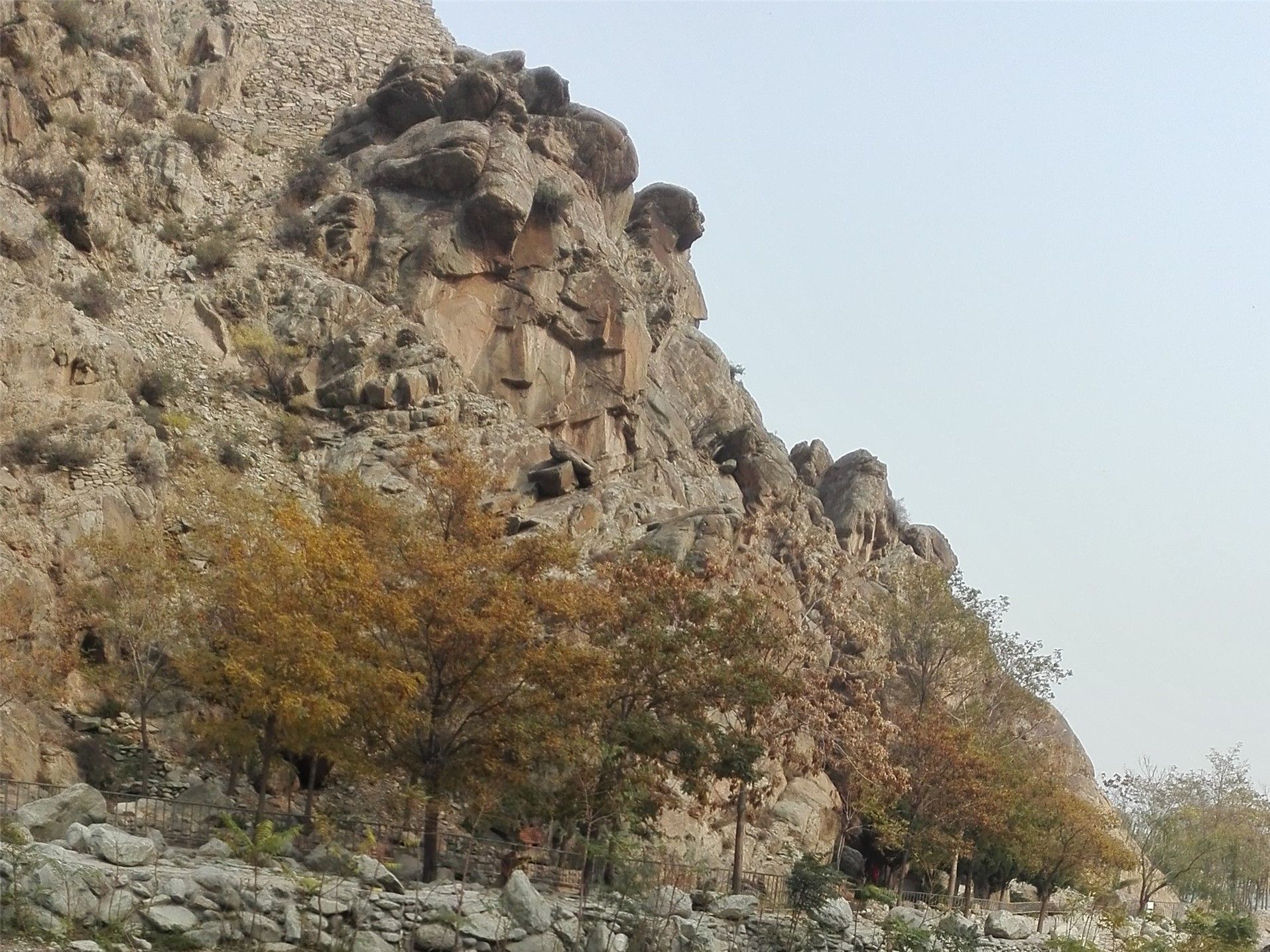 ...颜色很浅,且距离地面也很高,景区在路旁设置石碑介绍以及在其附近竖立红旗提醒,以免游客不小心错过