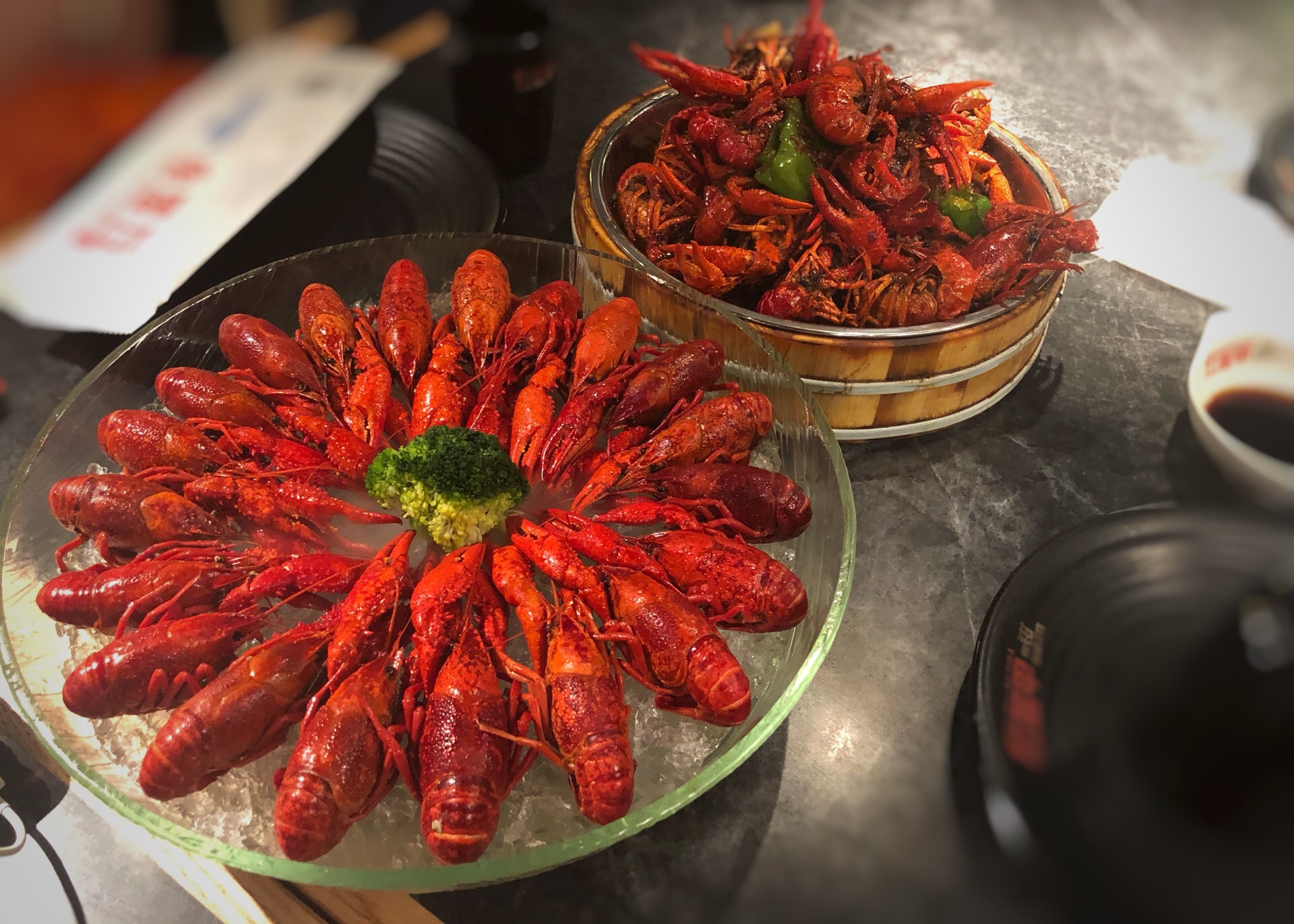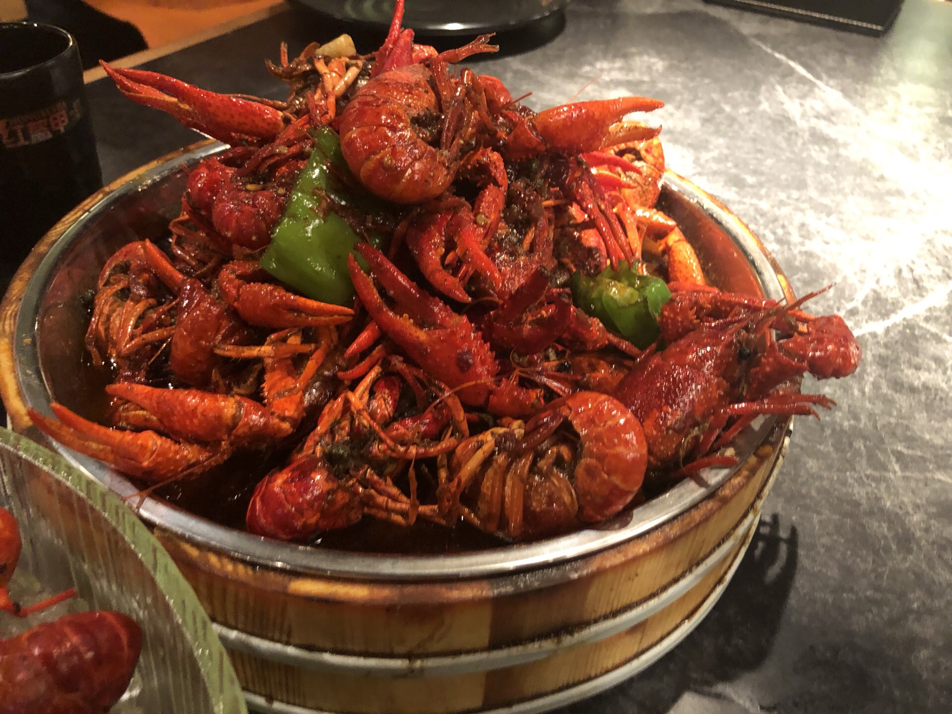 【环境】店面很大,有三层楼。生意真的很好,下午5点多就有好多客人,晚点去就没位置了。7点多门口好多人在等位。 【服务】加水算及时,看到我们跟朋友庆祝生日,还送了一碗长寿面。 【口味】冰镇小龙虾最好吃,个头也最大! 十三香是甜的,好奇怪的口味。 麻辣小龙虾超级辣!虾肉没什么味道,碰到虾壳就很辣。 带膏的椒盐濑尿虾味道不错,不大只,但是的确每一只都有膏,推荐。 烤鸡翅和羊蝎子值得推荐! 人多会更划算些。
