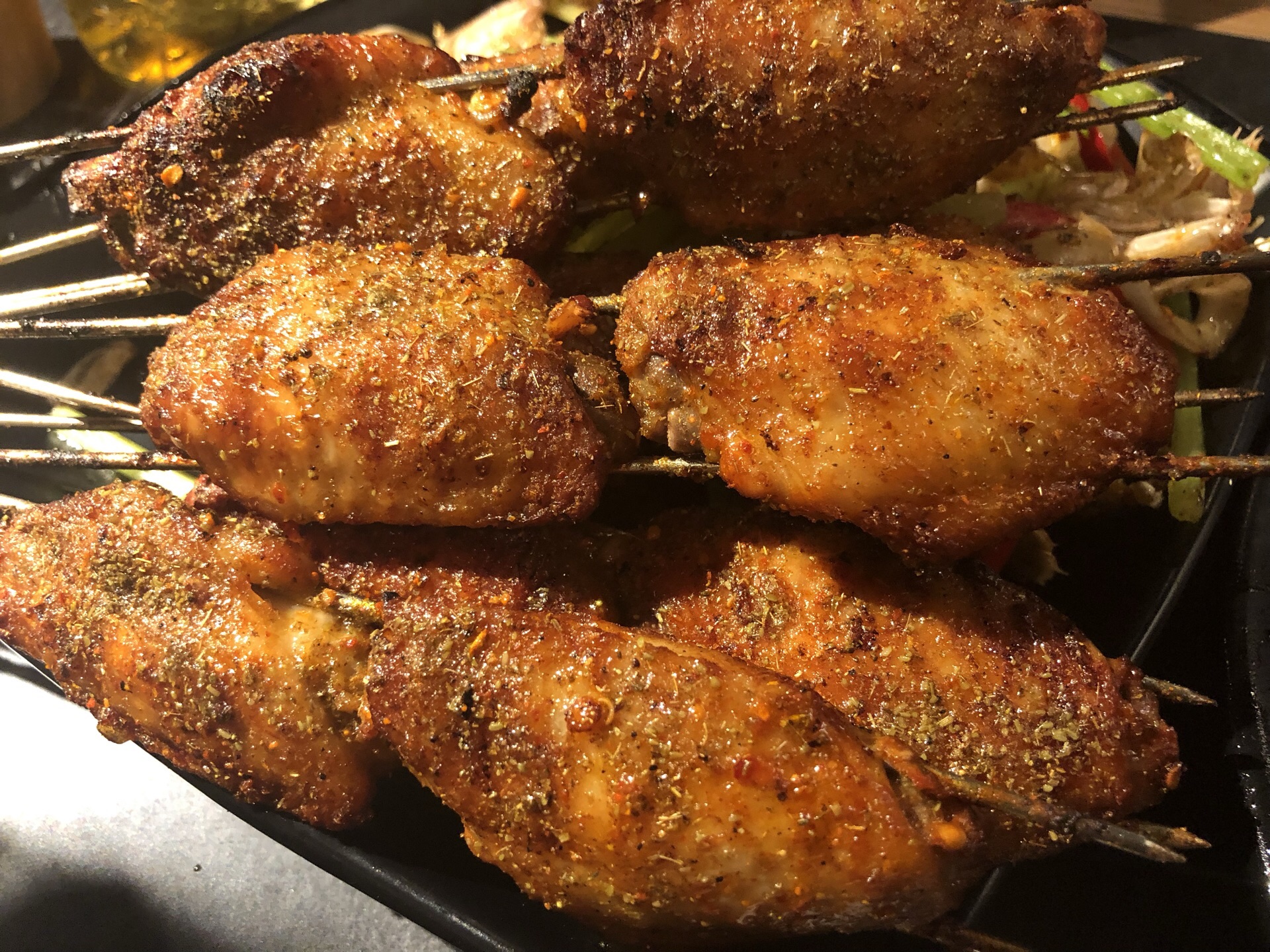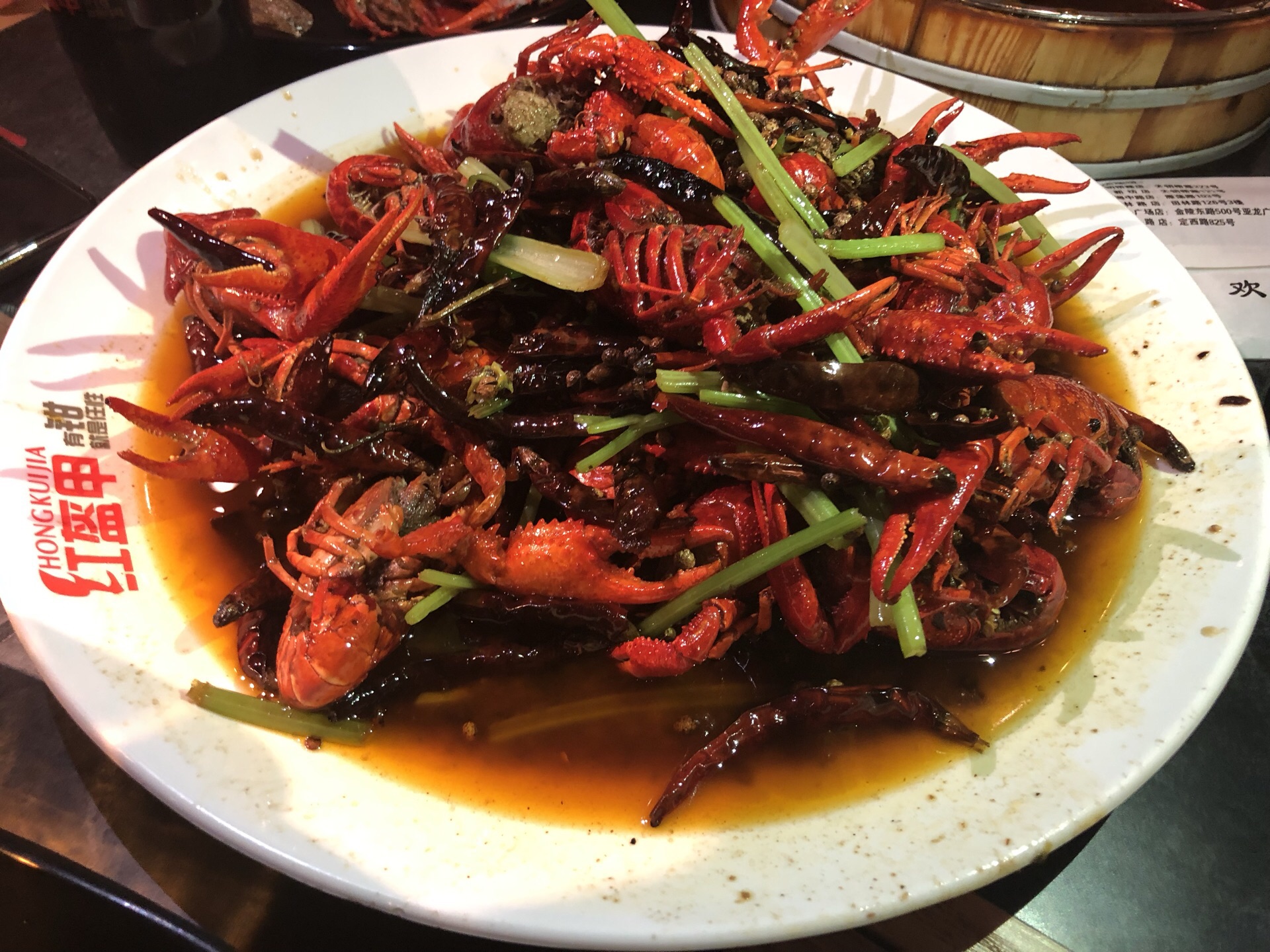 麻辣小龙虾超级辣!虾肉没什么味道,碰到虾壳就很辣。 烤鸡翅和羊蝎子值得推荐!7点多门口好多人在等位