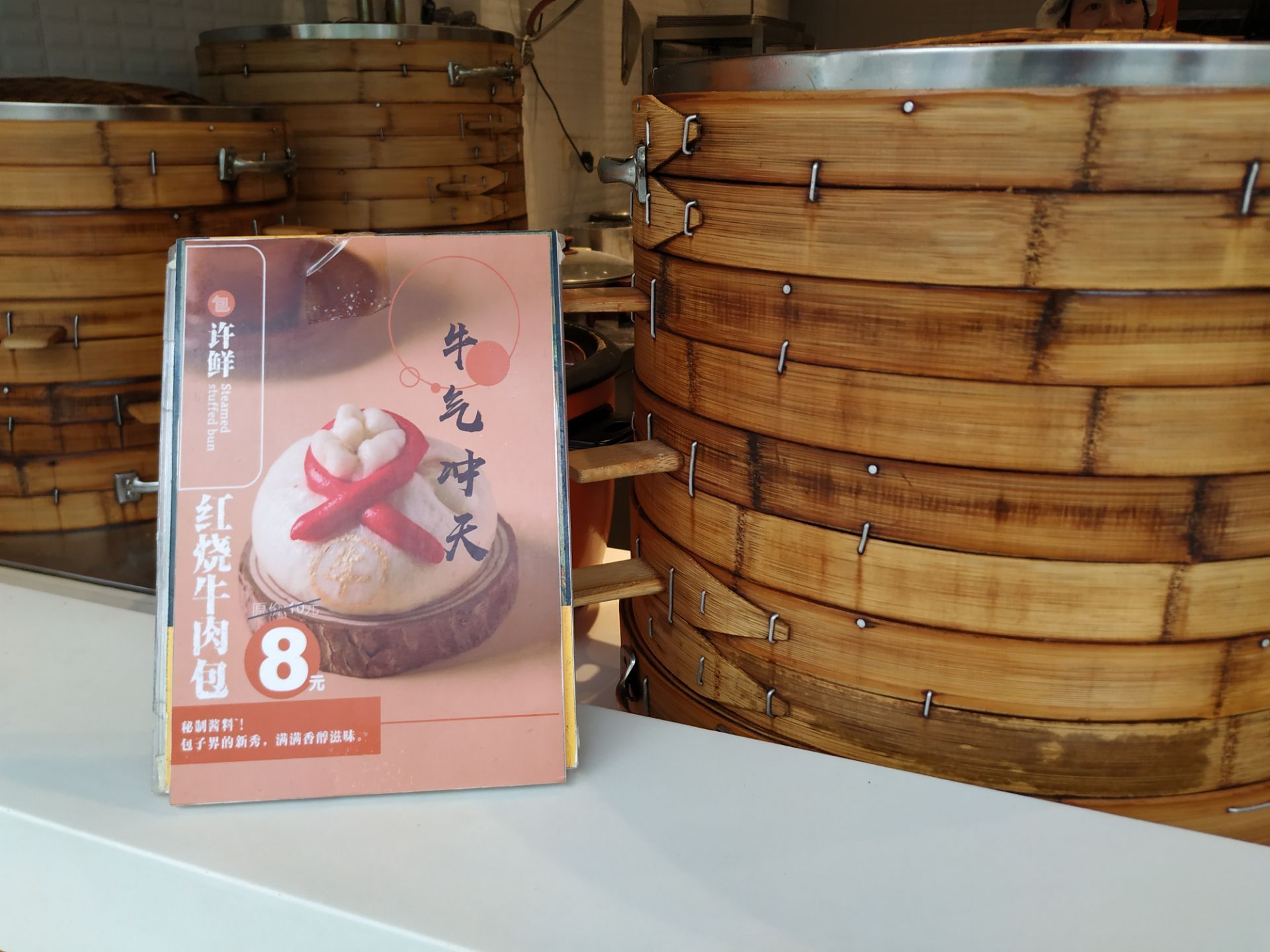 这包子铺主打有牛肉包子,一个8元,笋菜肉包,3块五,尝了这两种包子,馅料不是很出彩,皮有点硬这包子铺主打有牛肉包子,一个8元,笋菜肉包,3块五,尝了这两种包子,馅料不是很出彩,皮有点硬。店里也有卖豆浆和其它东西,如糯米鸡。