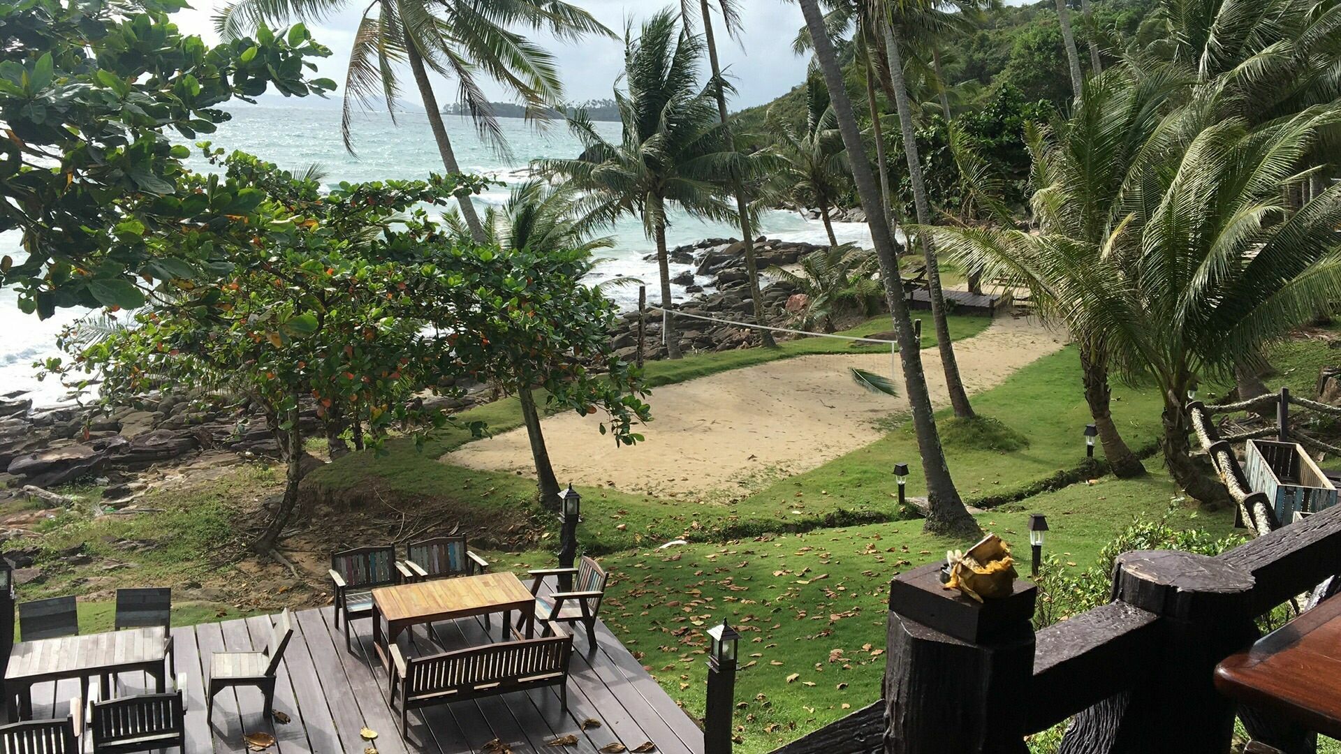 不过沙滩的景色依旧非常的漂亮,虽然不可以下水,但可以在沙滩上晒太阳,也是非常舒服的一件事情这是沽岛上面积最大的海滩,据说忘记走出沙滩便可以浮潜,但我们去的时候是雨季,天天大浪不能下水,实在是有些可惜。不过沙滩的景色依旧非常的漂亮,虽然不可以下水,但可以在沙滩上晒太阳,也是非常舒服的一件事情。