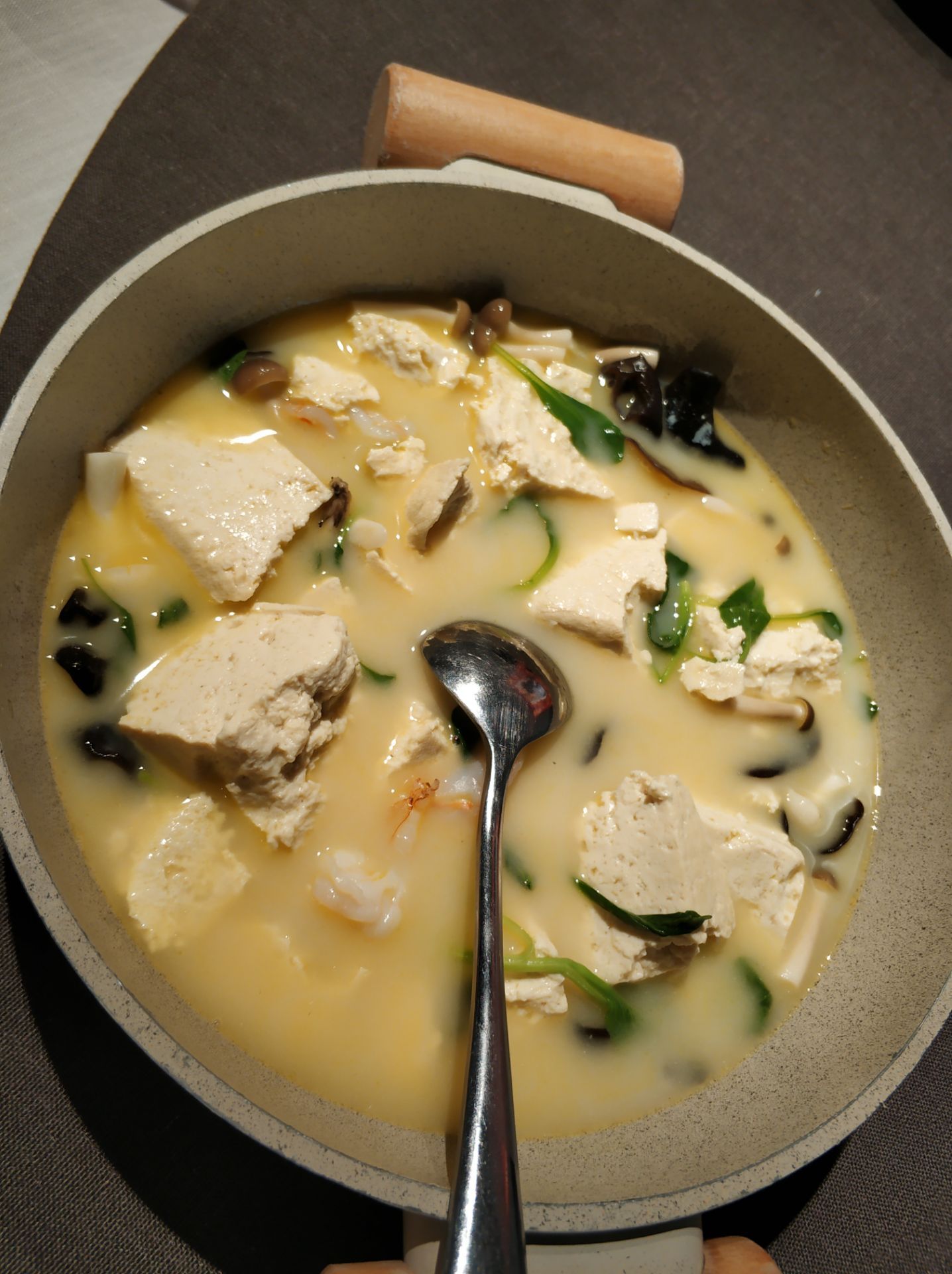 唯一保留的必点菜是鸡汤老豆腐,非常好吃,全家上下一致认可,差点儿点了两份。我更喜欢筋道口感的面条
