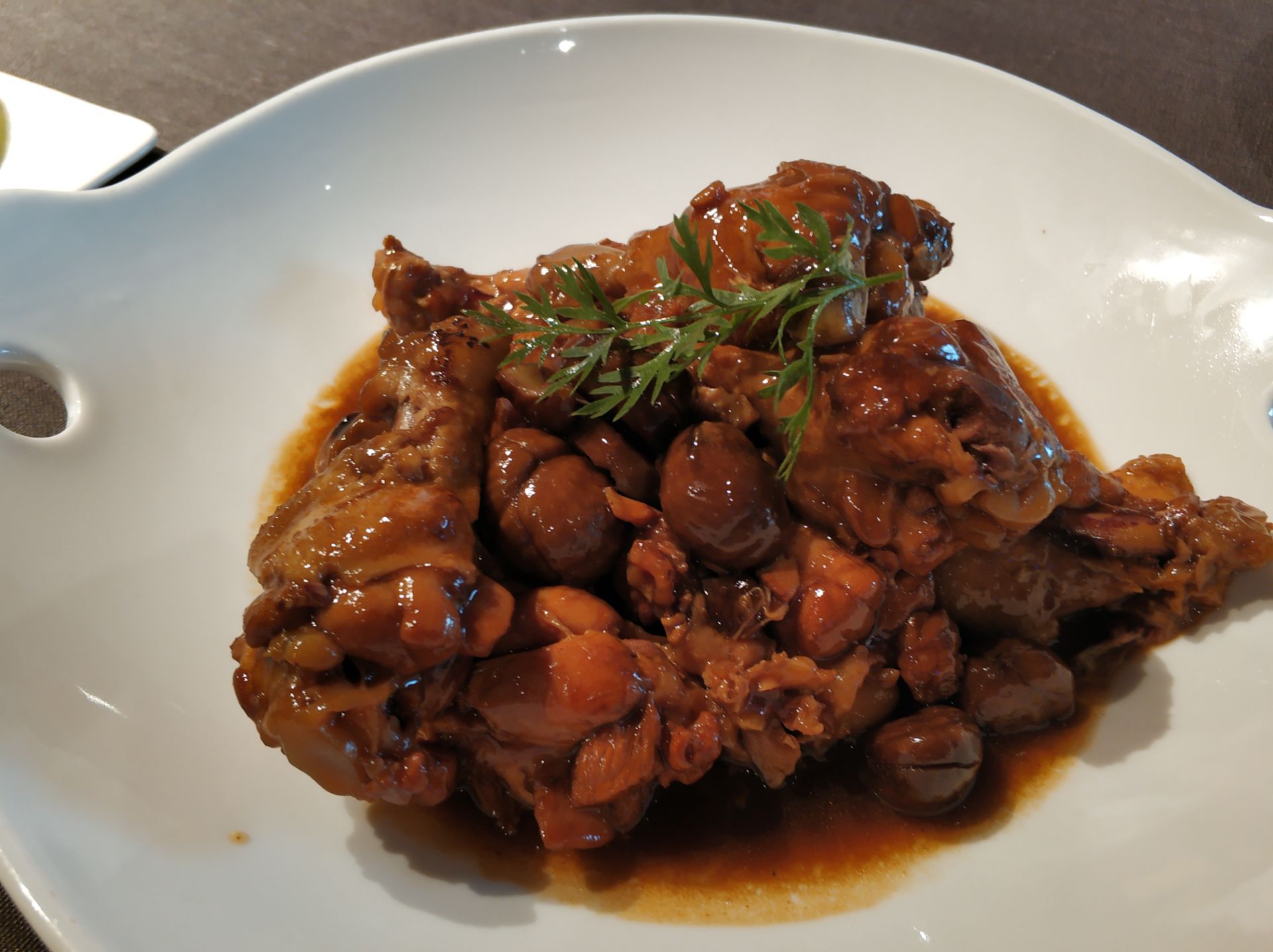 聚德楼是传统京鲁菜,宫廷里手艺的传承。刚开业时人气不旺,临近年三十了,还能订到位子。 不过现下可不一样了,客满,稍微晚一点儿,连大堂的位子都订不到。 它家的玫瑰饼是富华斋的,现在再吃觉得略甜了一点儿。不过玫瑰味儿非常浓郁,的确值得一试。 因为菜谱差不多吃腻了,所以这次点的都是不那么热门的菜。唯一保留的必点菜是鸡汤老豆腐,非常好吃,全家上下一致认可,差点儿点了两份。 它家本着手艺为主的路线,平常的菜能给做出不平常的味道。拿一道简简单单的鸡毛菜来讲,大师傅炒出的干贝鸡毛菜就透着一股子鲜甜劲儿。还有板栗翅根,真让我惊艳了:本来我不爱吃翅根,往常碰都不会碰,谁成想他家的翅根和板栗,相互借味儿,香甜可口。再就是油焖大虾,手艺特好,汤汁都均匀挂在虾上,只是大虾有几只不太新鲜,肉质有些粉面,影响了口感。 最后说一下还没正式推出的鸡汤过桥面。鸡汤特好,就为这碗汤也值了。面条加了鸡蛋,保证久煮不烂,不过口感略糟,不如手擀面来的筋道。这是一道传统名菜,不过很久没人做了,如今聚德楼又把它捡起来了。估计是在试菜阶段,老板和大厨都很重视,几次过来问意见。因为孩子们都比较喜欢吃,我就没说啥,不过我想面条里,要是鸡蛋的比例再低些会更好。我更喜欢筋道口感的面条。
