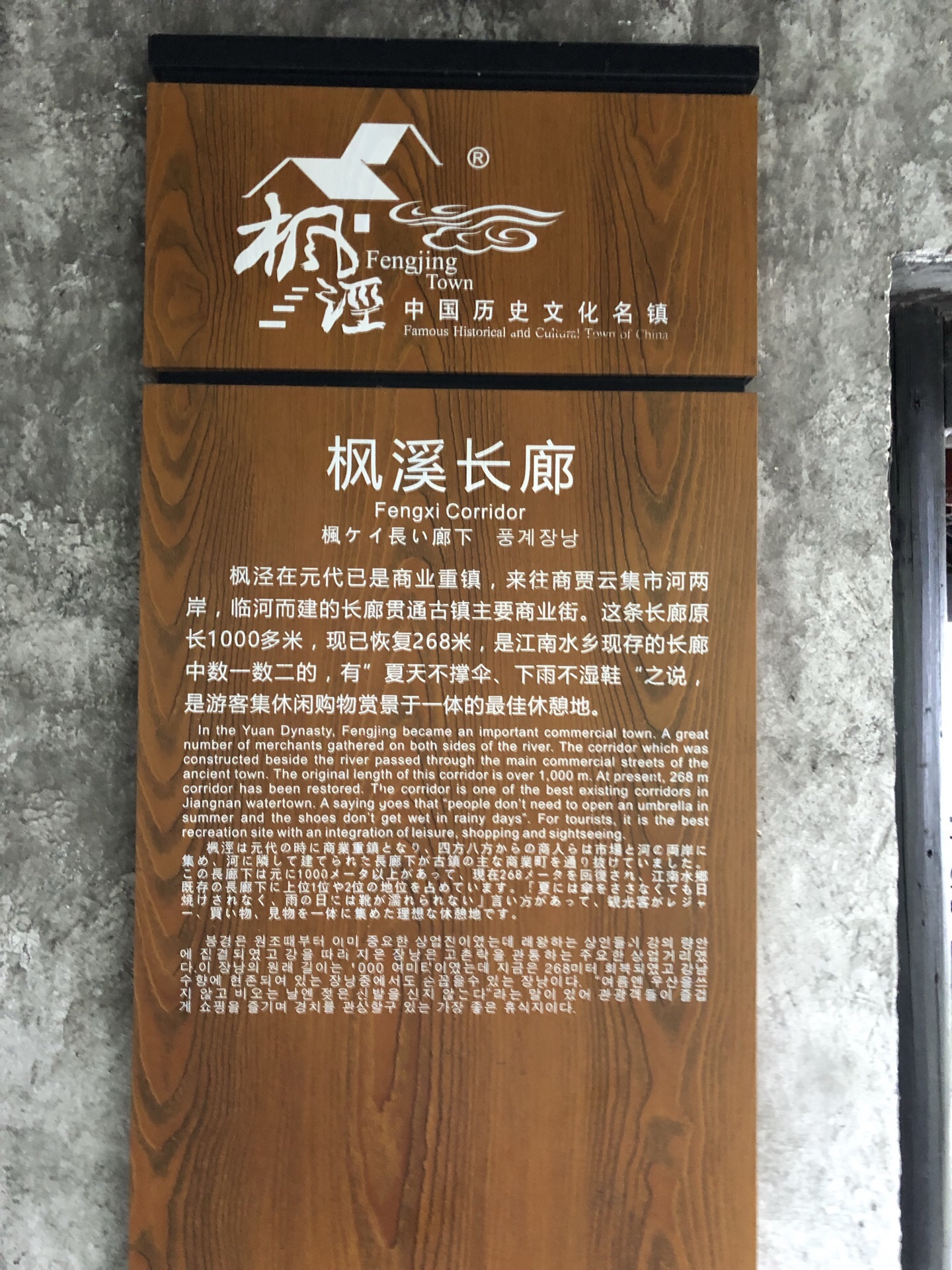 网友2019-05-27枫泾这条沿着枫溪而建的风雨长廊,根本没有商业气息,走在里面,望望对面的野眼,十分养眼枫泾这条沿着枫溪而建的风雨长廊,根本没有商业气息,走在里面,望望对面的野眼,十分养眼。长廊一侧,还有许多碑铭可以欣赏。同时也有许多别致的小店可以坐下来,吃吃农家菜。也有竹编小篮等农家小件可以买买。