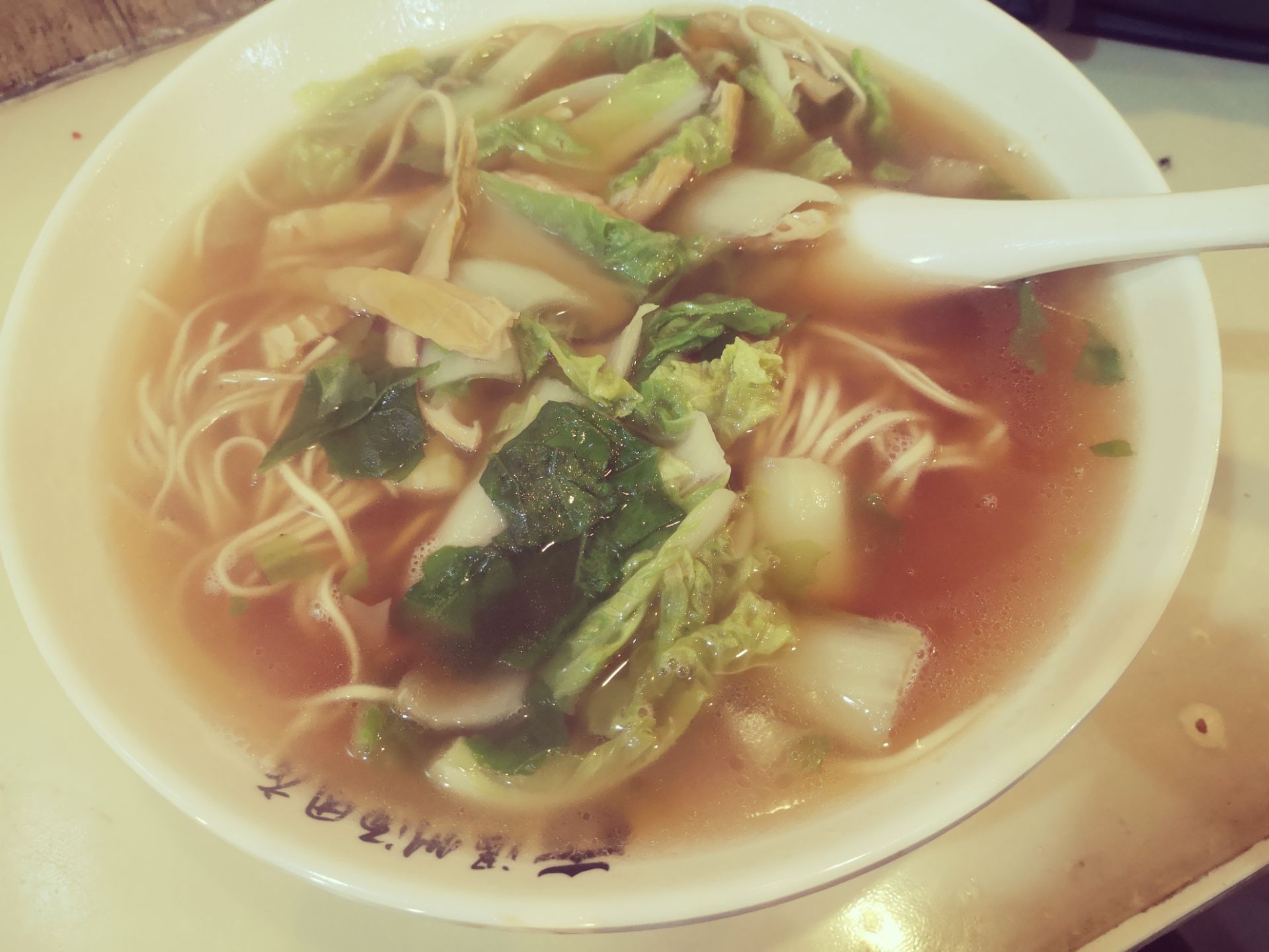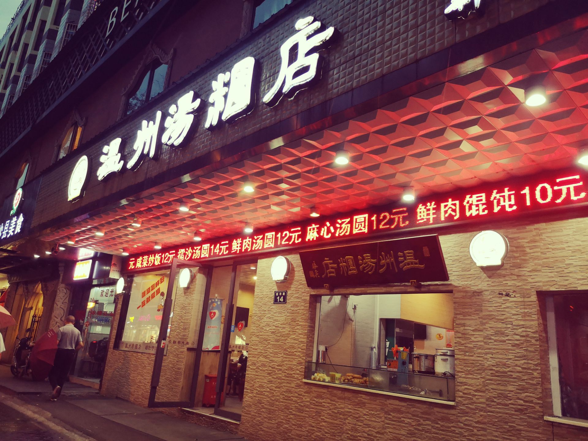 [环境]温州汤团店,“屹立”于新华路14号。在这条老字号餐饮店荟萃的新华路,已有20年的店龄,经久不衰的生意,精湛的厨艺技术,过硬的实力,极高的性价比,打败网红店无数,独占鳌头,成为老店中的“网红”,大名鼎鼎却也依然从容低调。老店就像一坛黄酒,历经岁月流逝,历久弥新,越陈越香。 24小时营业的温州汤团店,夜深人静,雨点纷飞,倾盆大雨将至,它如回家路上一盏明亮的灯,也是深夜食堂,提醒你不妨吃碗面,避避雨吧。 店内环境简单整洁,曾有细微修缮,墙上贴有“请勿浪费”诸如此类文艺标语,也设有放置手机的塑料架,人性化现代化服务,感谢依然保留了老字号的原汁原貌,复古情怀在这里四处安放。 [服务]店里的几个阿姨都是许许多多年的老员工了,她们的脸似乎印刻在周围居民脑海里了。菜品端出厨房,她们就会大声呼喊菜名,直到顾客摆摆手,端到顾客桌上。这种“呐喊”式的上菜服务多年延续,习惯于这种近乎亲切的真实。这或许也是老店的“本色”吧。 |青菜笋干面^一碗素面,13元。满满一大碗新鲜出炉,热气腾腾飘着热气,猪油香味扑鼻,青菜切的薄薄的,笋干切的细细的,且放足鲜嫩的笋尖,面条细长且柔韧,笋尖、青菜、猪油搭配熬制,一碗汤面的精髓在于汤底,一种跨越20年,千锤百炼,不改初心的本土味道。 雨夜吃起这碗面,20年往事,点滴如碎片,在脑海浮现,在眼前闪烁,又如蝴蝶般翩翩而过。20年前,10年前,5年前,1年前,我都在温州汤团店吃面,而故人和旧事早已消逝而去,无从追忆。 回忆的转角处,只留下一碗青菜笋干面,温州汤团店里思流年。