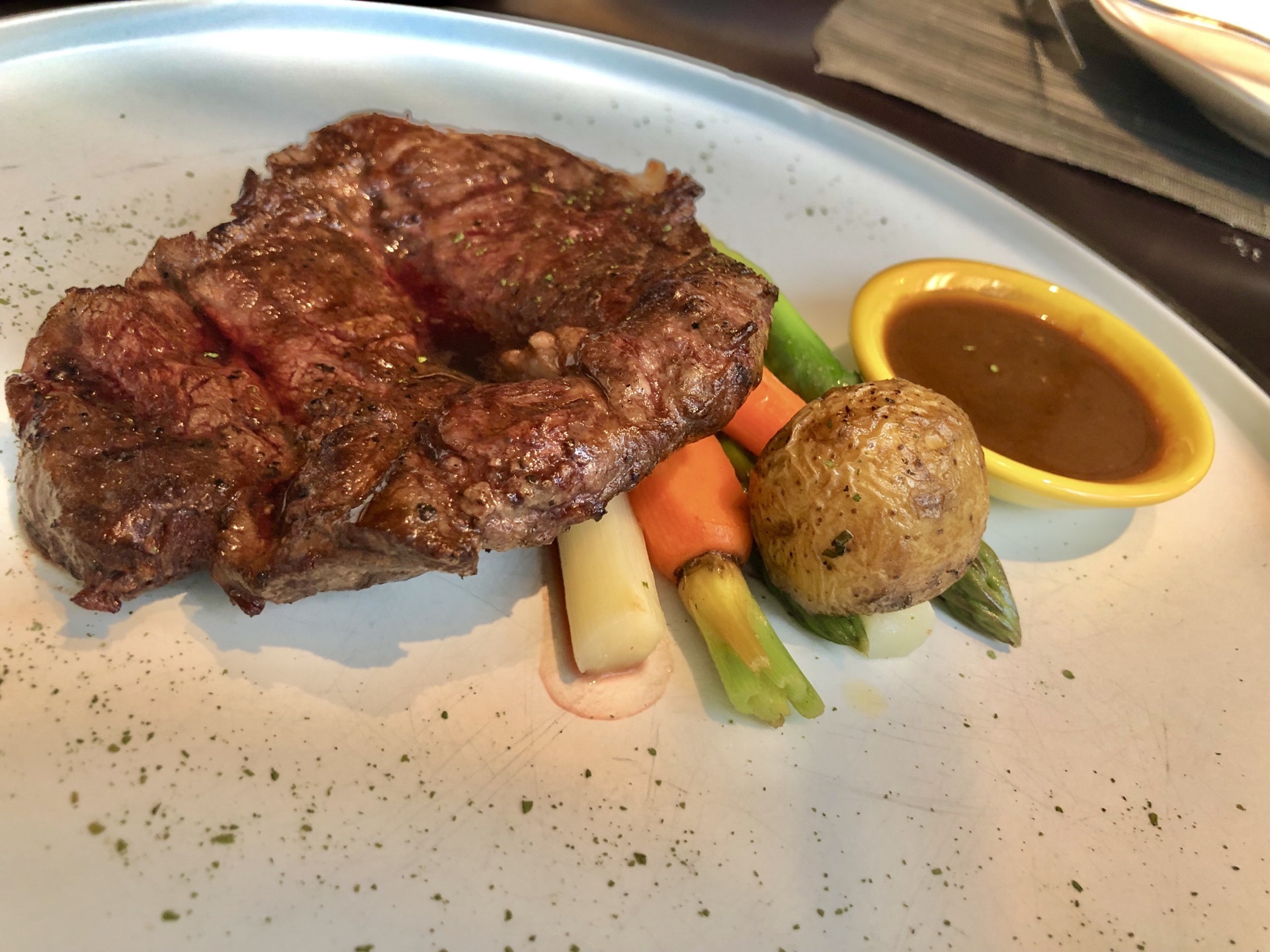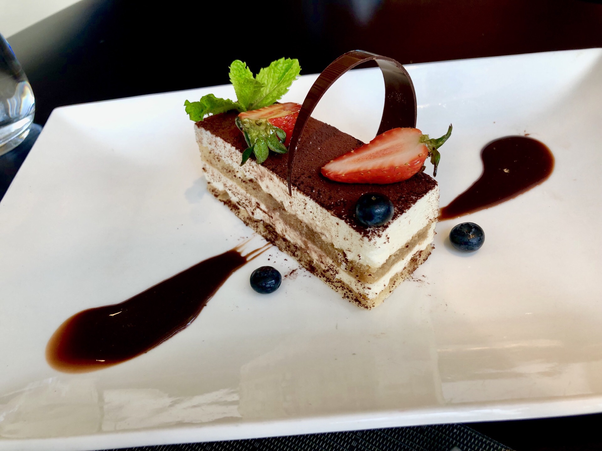 甜品不错,黑松露蘑菇汤很香浓,蘑菇味很鲜。套餐里的牛排一般吧,没啥可圈可点的地方