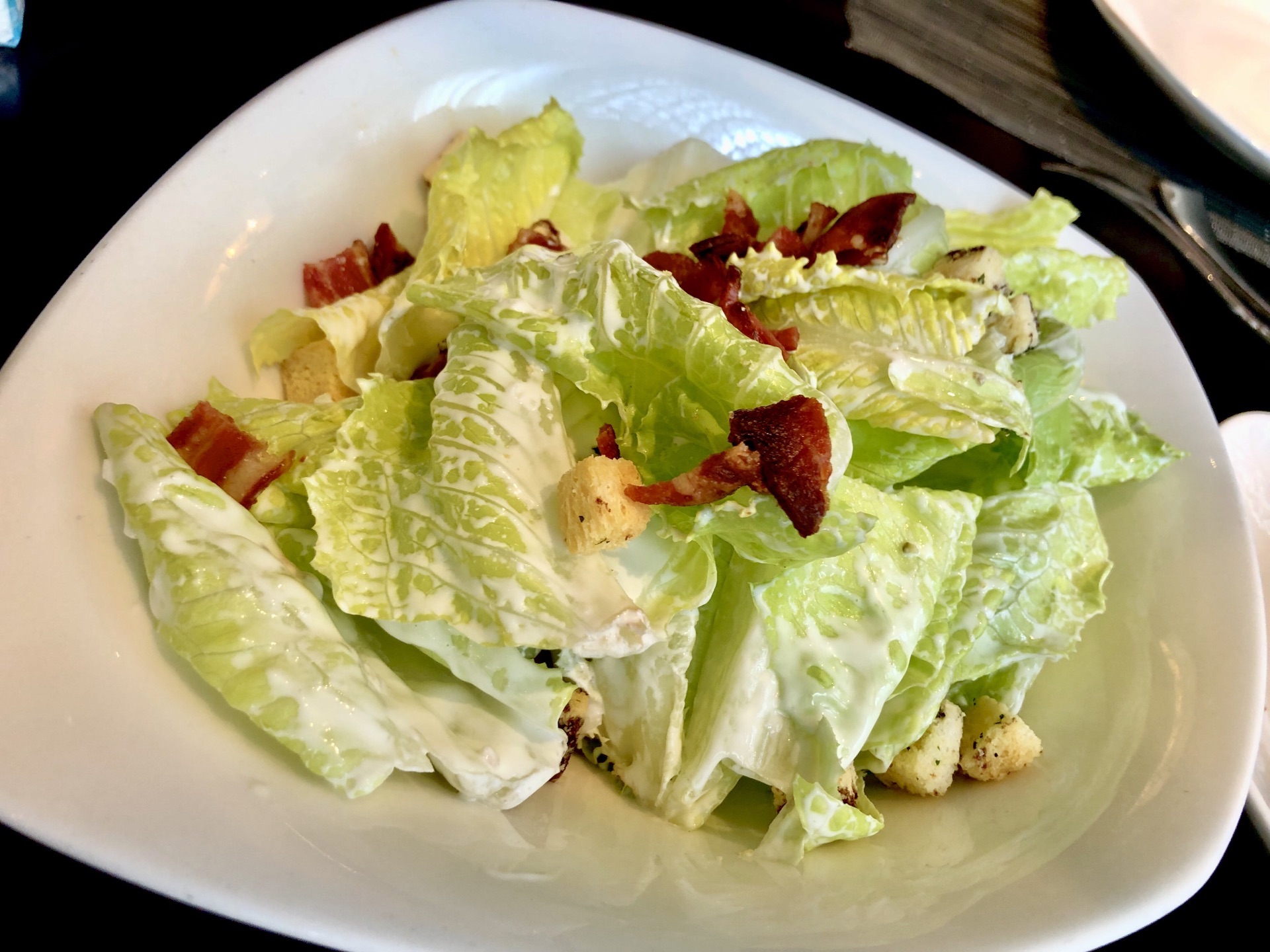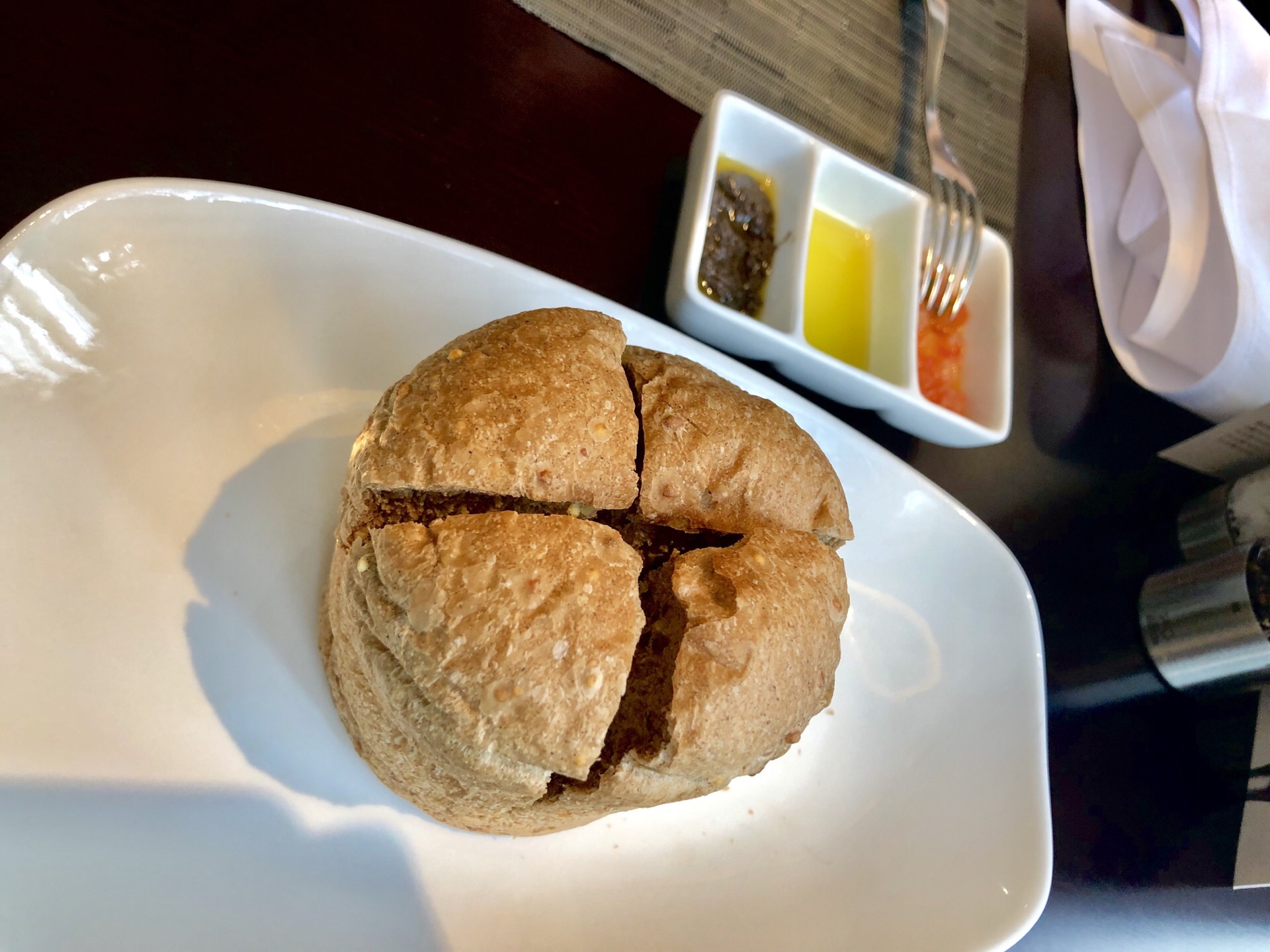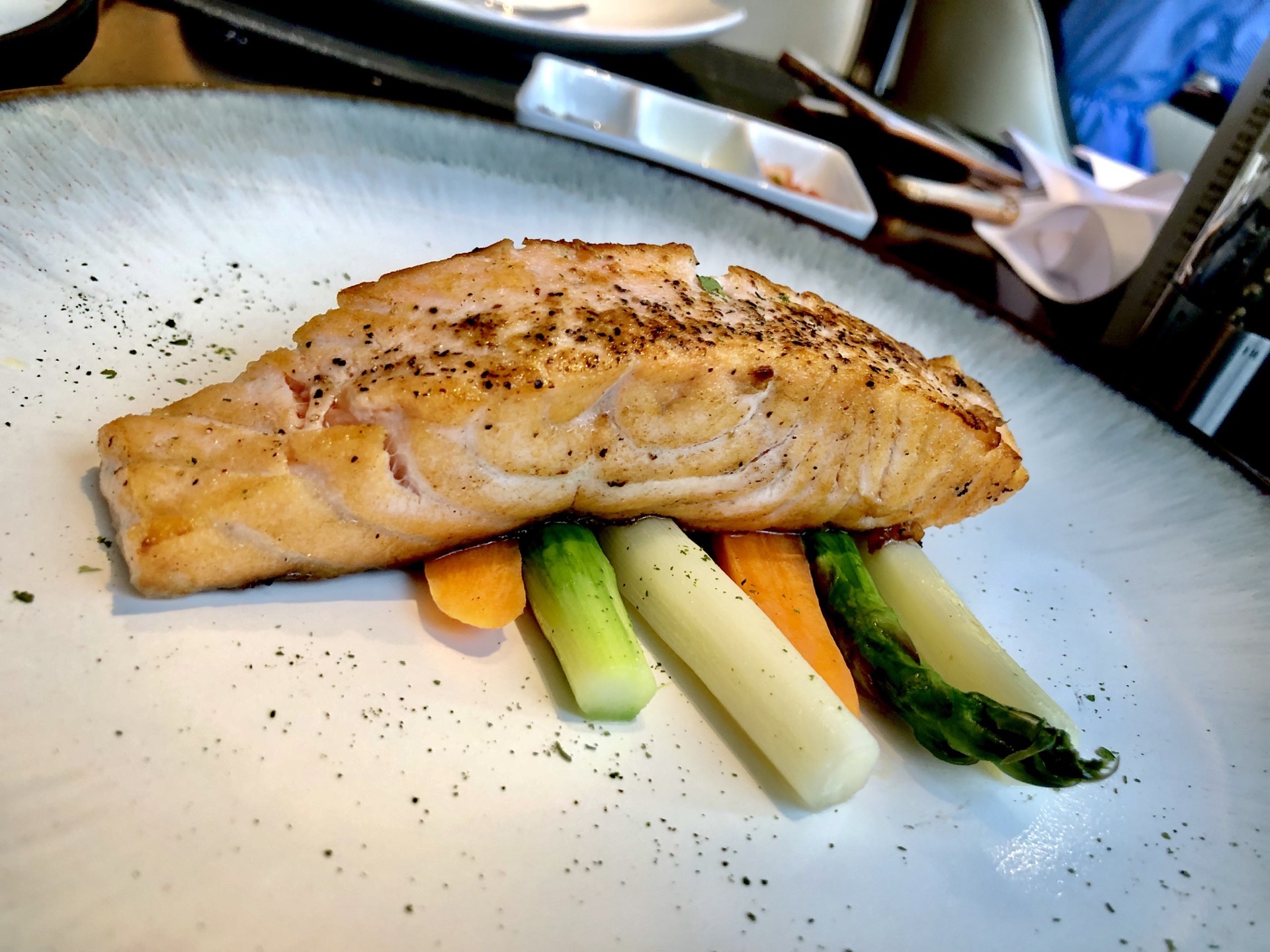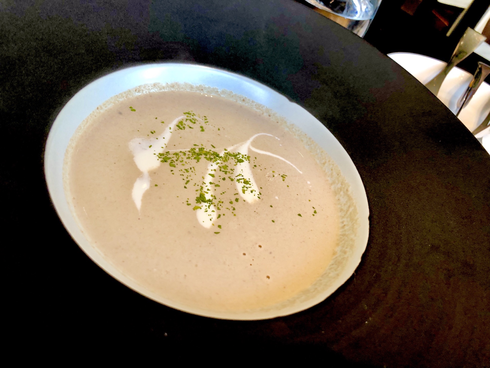 中午12点多去的,只有几桌客人,餐厅挺幽静,大面积的玻璃窗让餐厅显得很敞亮,很舒适,上档次。我和朋友两个人点了一个388的套餐,服务员告知如果提前一天订购套餐的话是免收百分之十服务费的。甜品不错,黑松露蘑菇汤很香浓,蘑菇味很鲜。套餐里的牛排一般吧,没啥可圈可点的地方。三文鱼排还可以,三成熟的,外面刚刚熟,里面嫩,滑。