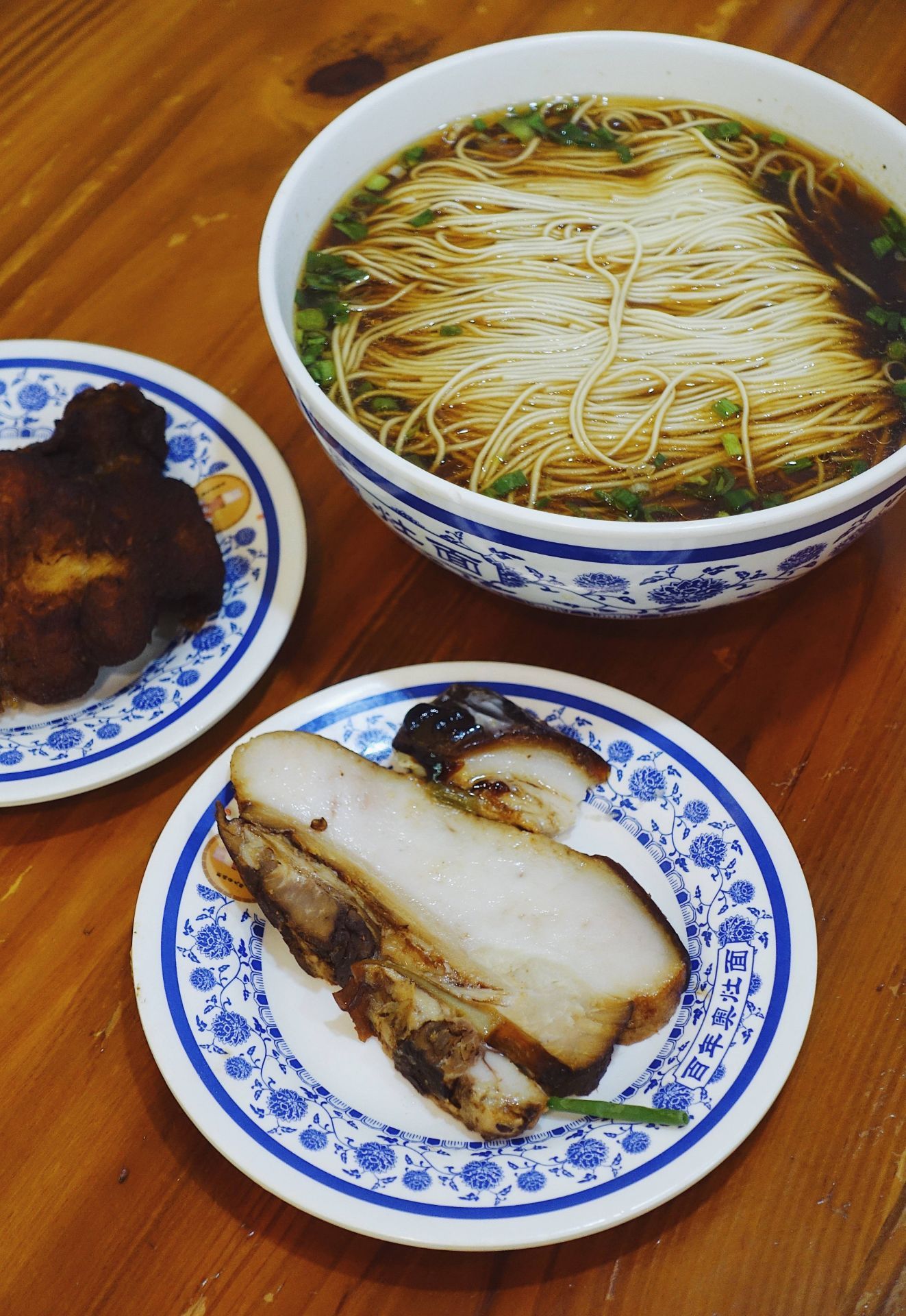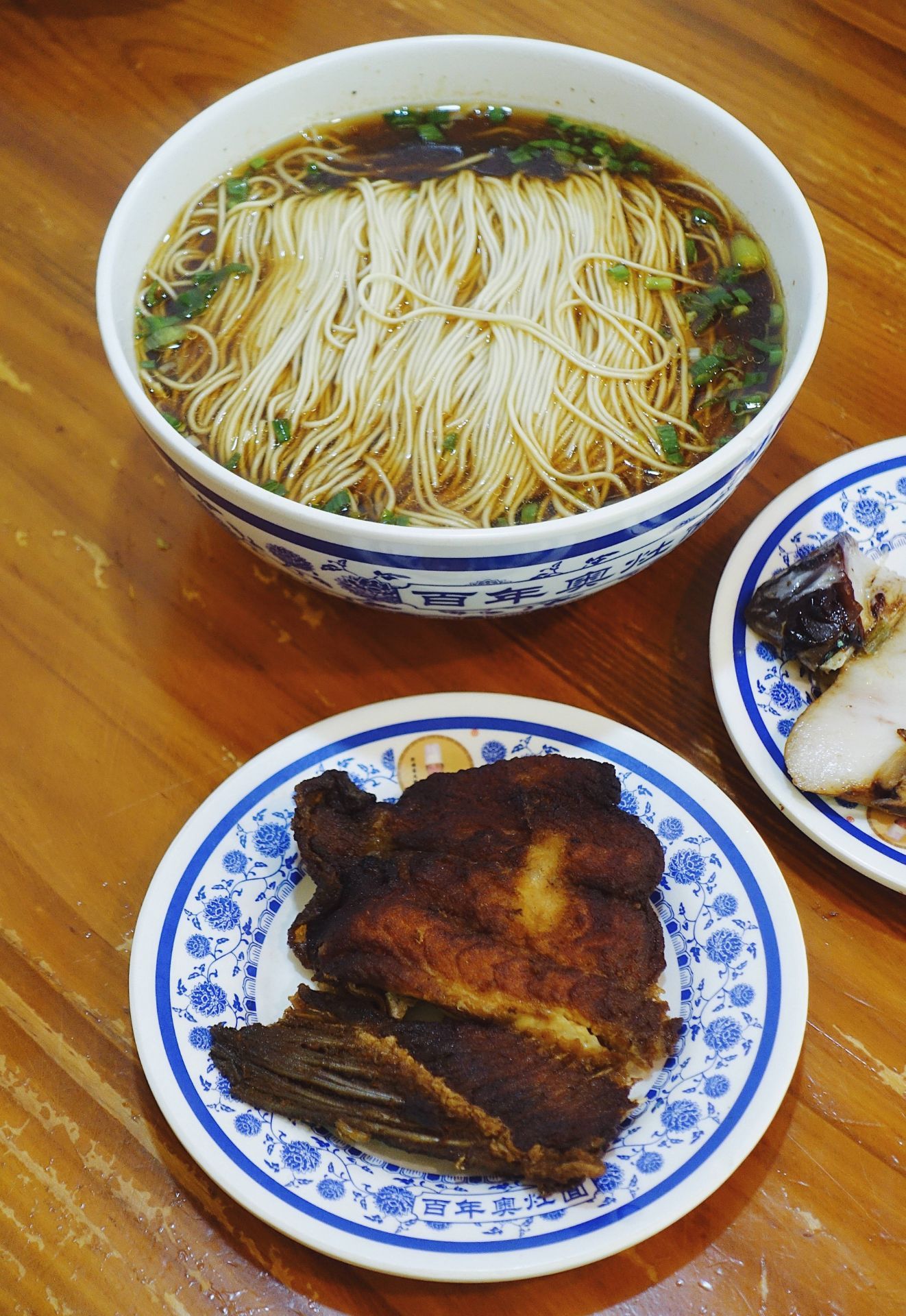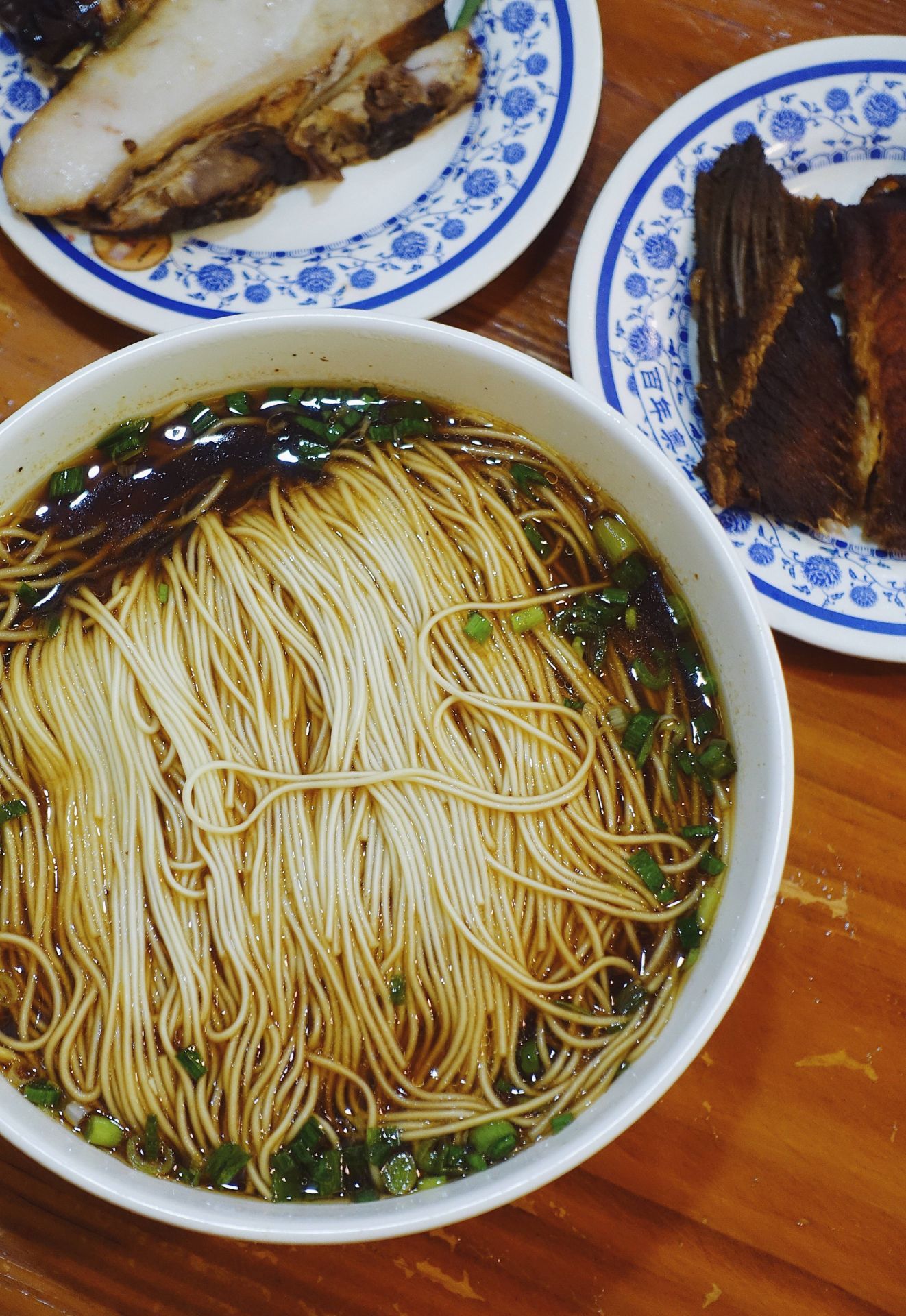 【刘锡安大师奥灶面】 泰兴路221号 始终惦记着那碗面,点了份红汤焖肉爆鱼面,面条比起在苏州吃到的还是差了点。熏鱼虽然是冷的,但味道尚可;焖肉就不太行了,基本都是肥肉,几乎一点瘦肉都没有,对于吃不惯肥肉的我来说实在是难以下口。