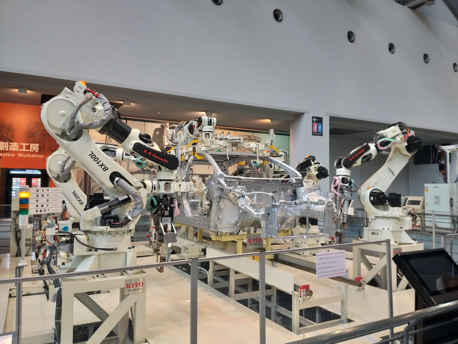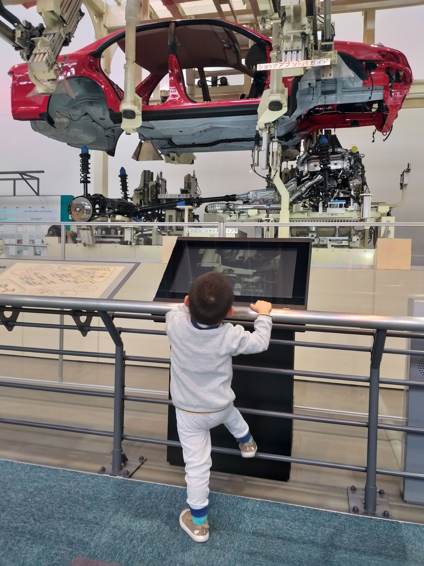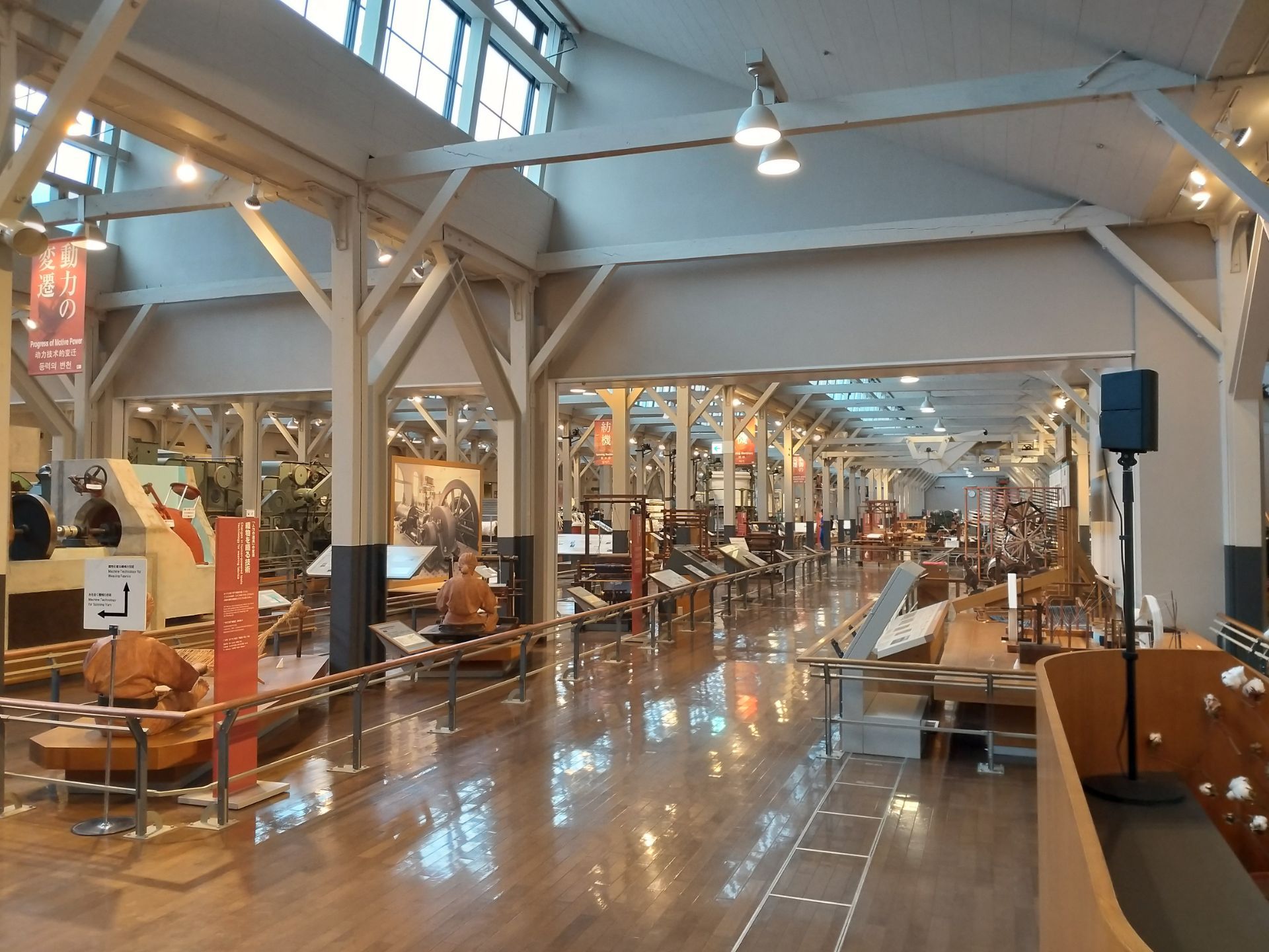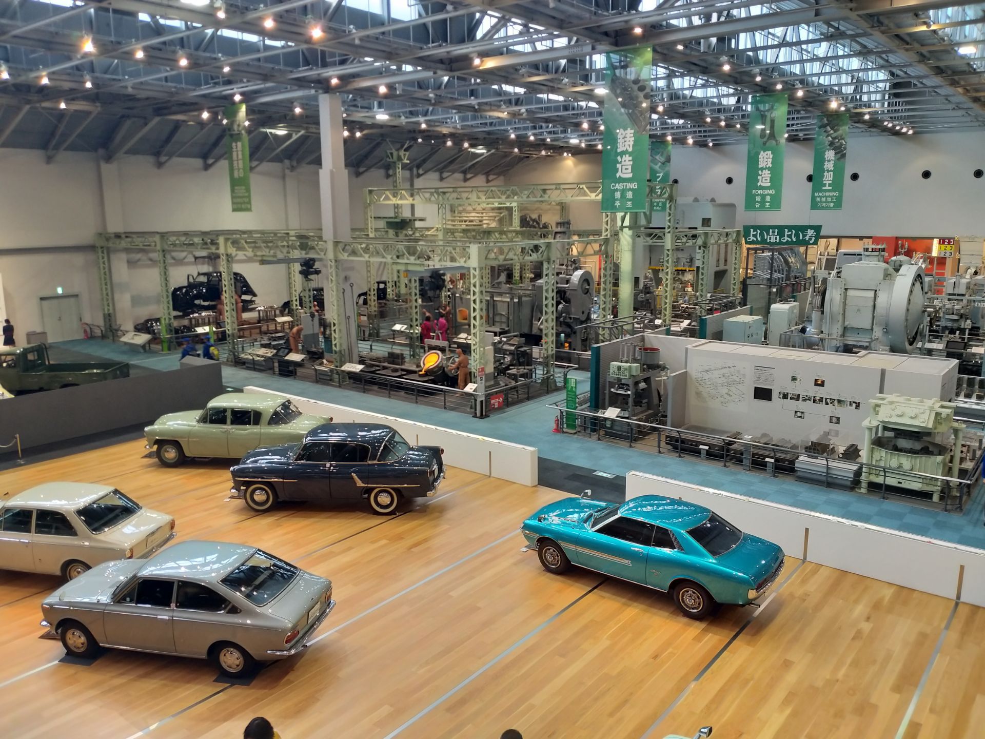 分为纺织和汽车两部分,汽车中有卡罗拉,凯美瑞和皇冠第一代,其中一辆可以坐进去,还有生产线展览。