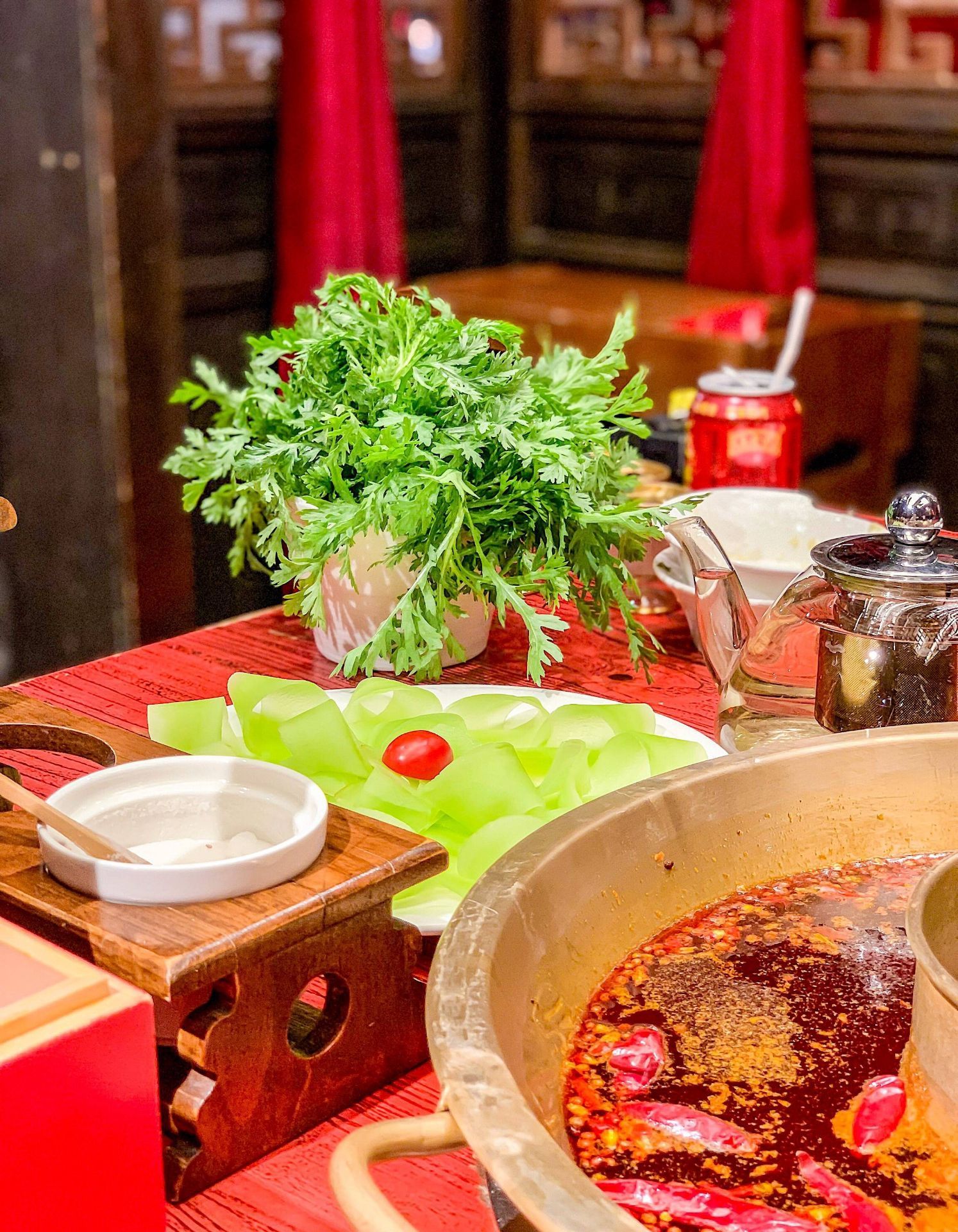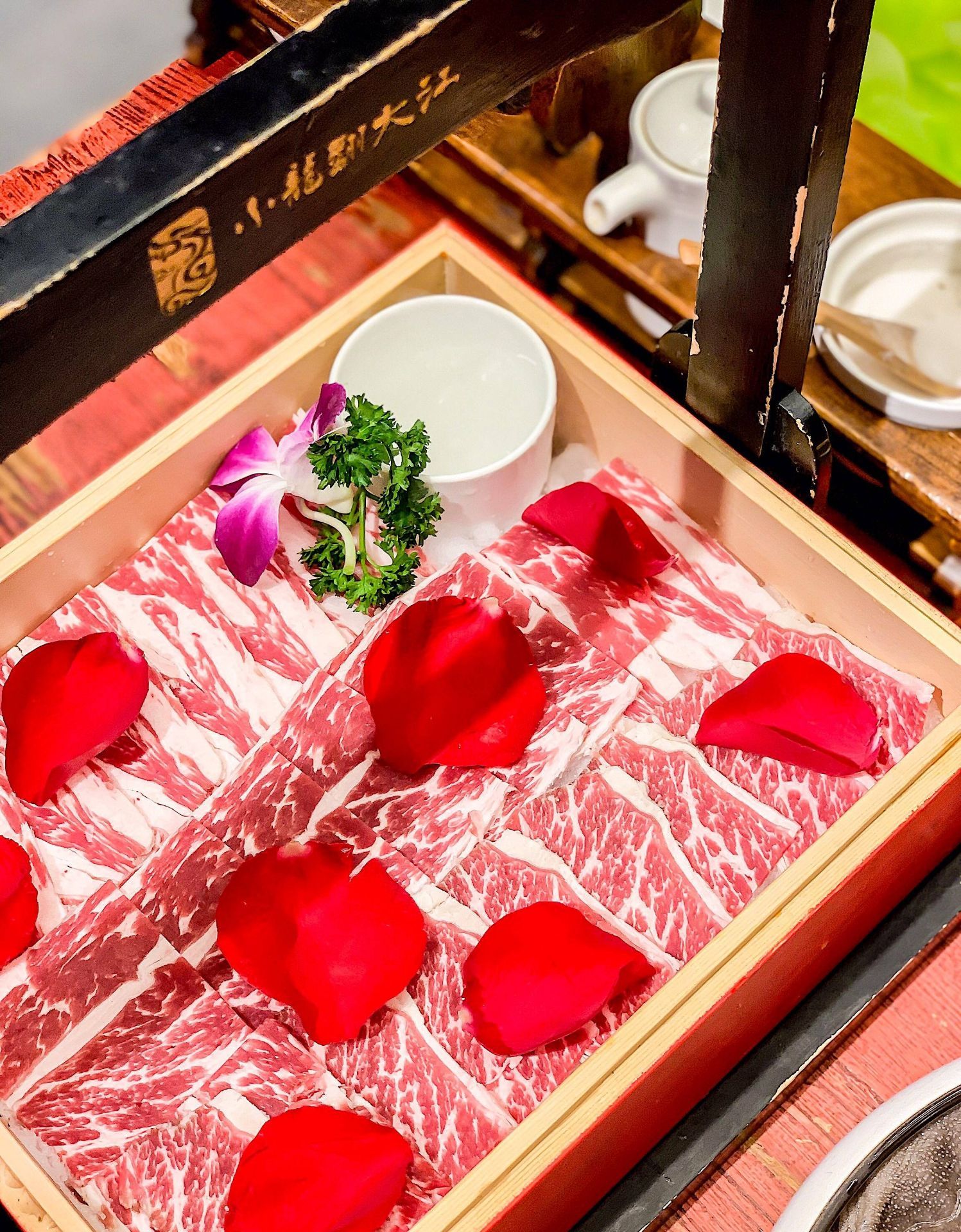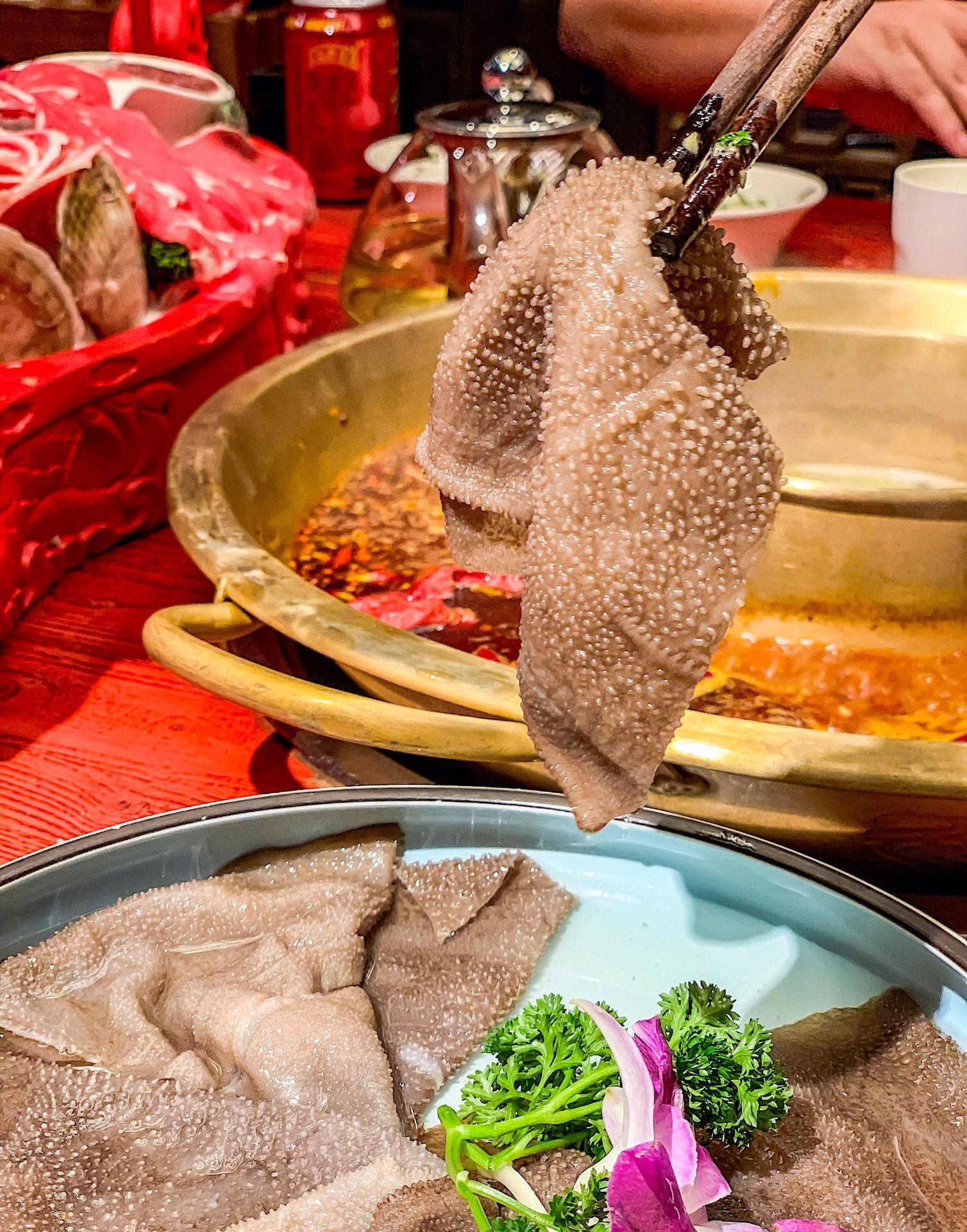 小龙翻大江火锅酒楼(春熙店) 这家店是小龙坎的高配版,这个装修耗时一年的火锅店着实让我惊到了。这么大条霸气的龙在大堂正中间。 这里的鹅肠装在一个冰球里,小龙翻大江真的是整条龙端了上来,就是肉干了一点,我更喜欢肥瘦相间的安格斯牛肉和新鲜的毛肚。 包厢服务费会另外加80 ▪️地址:东大街下东大街段21号附29号香槟广场3层 ▪️营业时间:11:00am –23:00pm