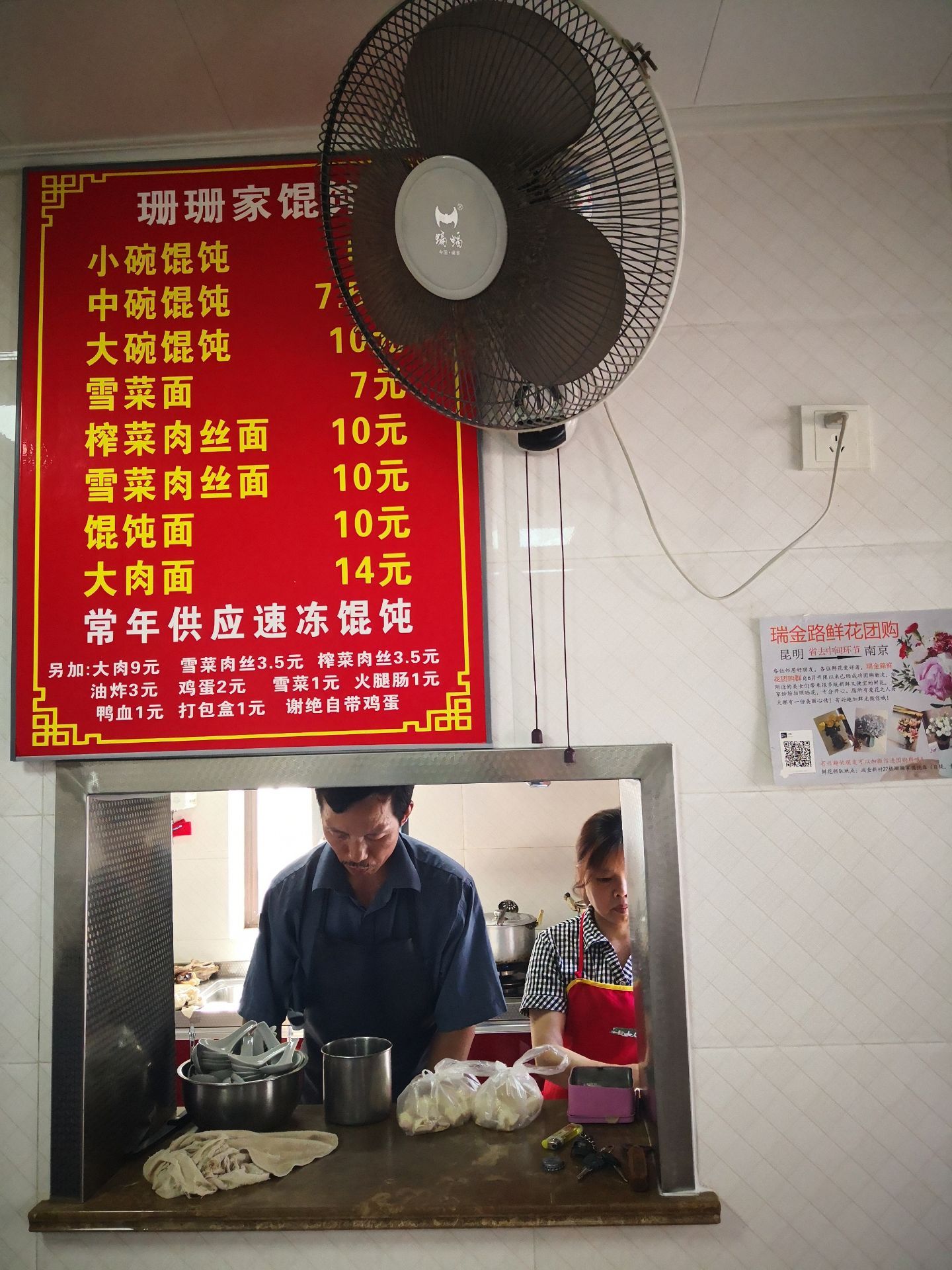 【位置】 瑞金新村,解放南路门进去,直走,右手第二栋楼一楼。 【环境】 没有门头,店内干净整洁。 老板夫妻两在包馄饨,厨房看着也很干净。 【服务】 老板面冷心热,外卖了生馄饨,再三交待保存方法。 【食物】 小碗馄饨,5元,皮薄的泡泡小馄饨,口味不错,虾皮榨菜给得特别足。
