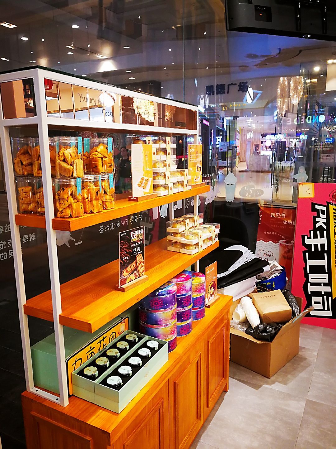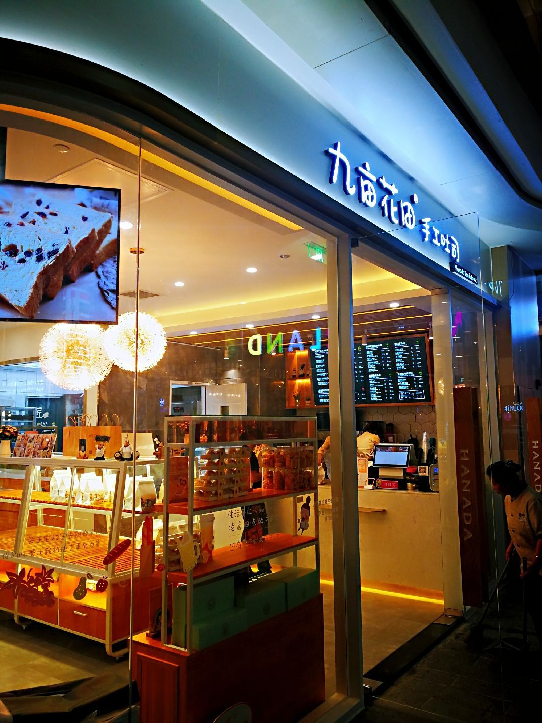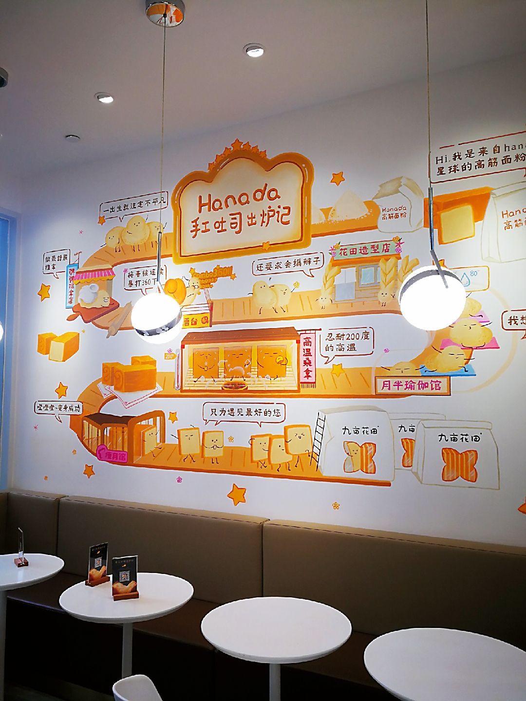 九亩花田手工吐司(凯德广场店)位于白云区凯德广场一楼,从地铁二号线白云公园站A口出来,进入凯德广场,一直往里走,非常好找。 下午过去凯德广场办事,出来后见到了这家欧包茶饮店。他家装修得环境舒适,光线柔和,装饰了北欧风光的壁画,给人一种轻松的感觉。这里的吐司是手工制作的,透过透明的烘培间,可以见到师傅们在制作吐司。 要了一个招牌肉松吐司,28元,吐司口感松软,麦香味道很浓,肉丝香脆。吃完以后,意犹未尽,再买了一罐一口酥,回家做早餐。