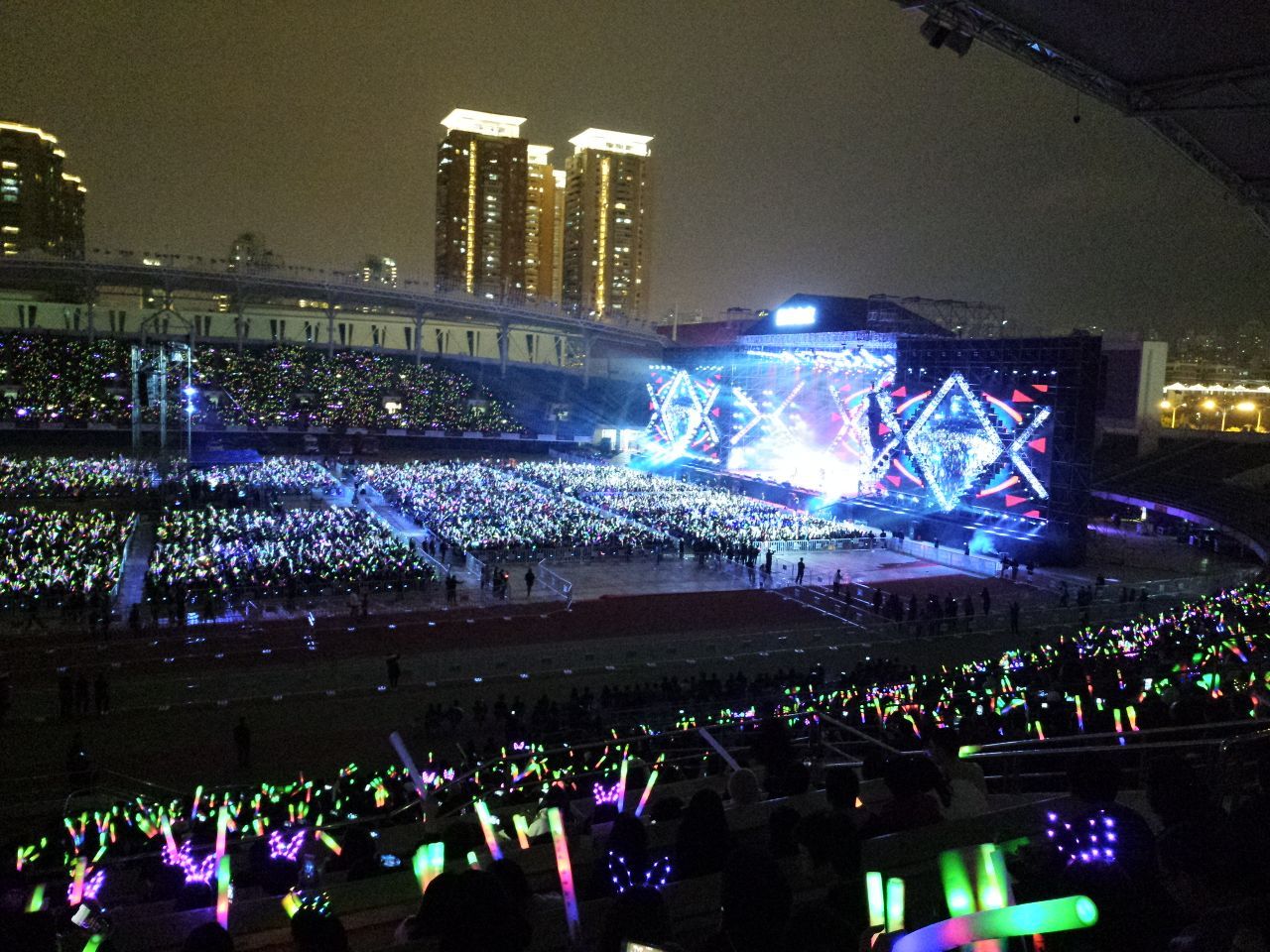 ...,特别是当大家挥舞荧光棒,看着整个体育馆和天空,城市蓉在一起美丽的景象,我已无法用形容来表达了