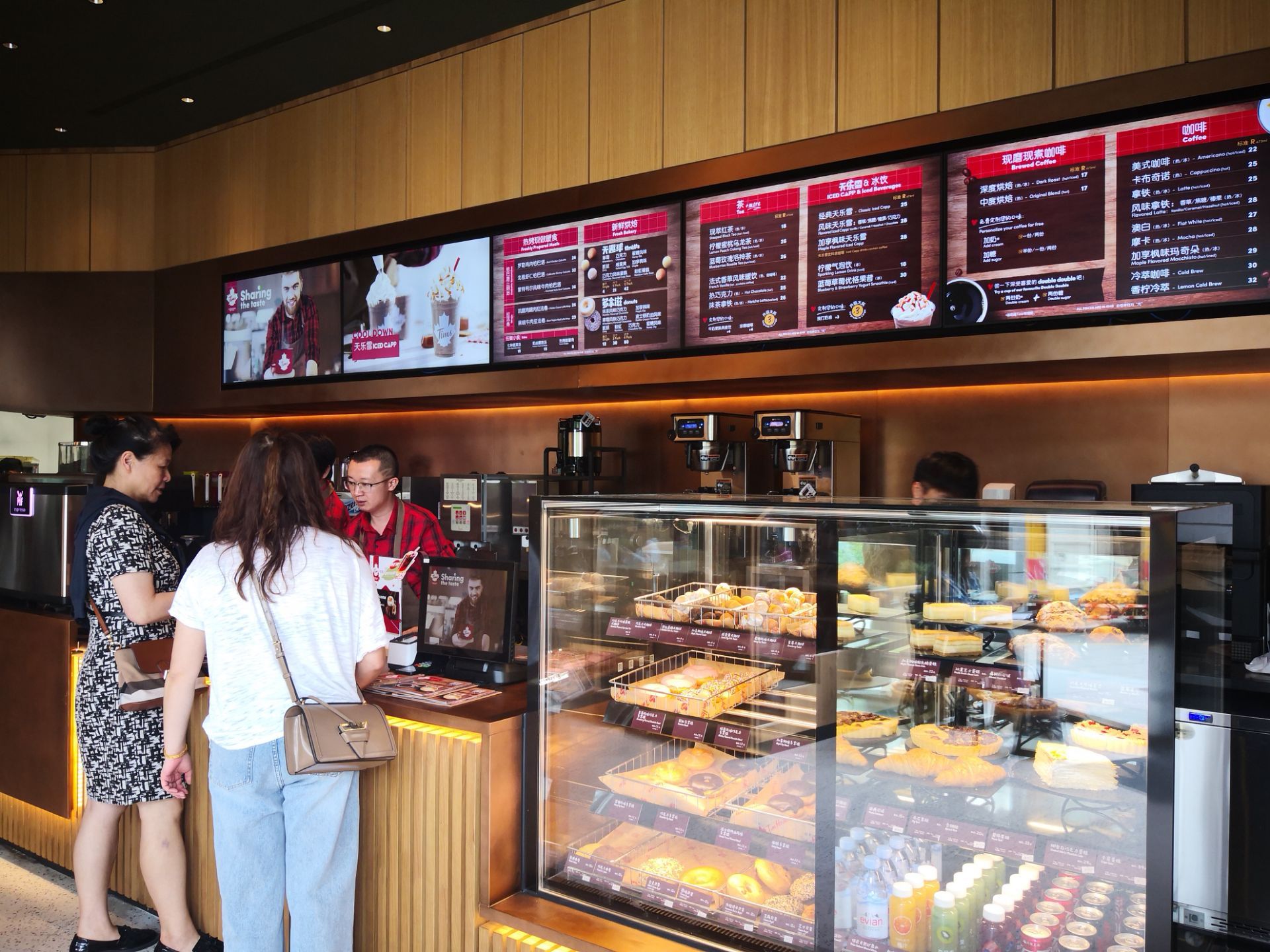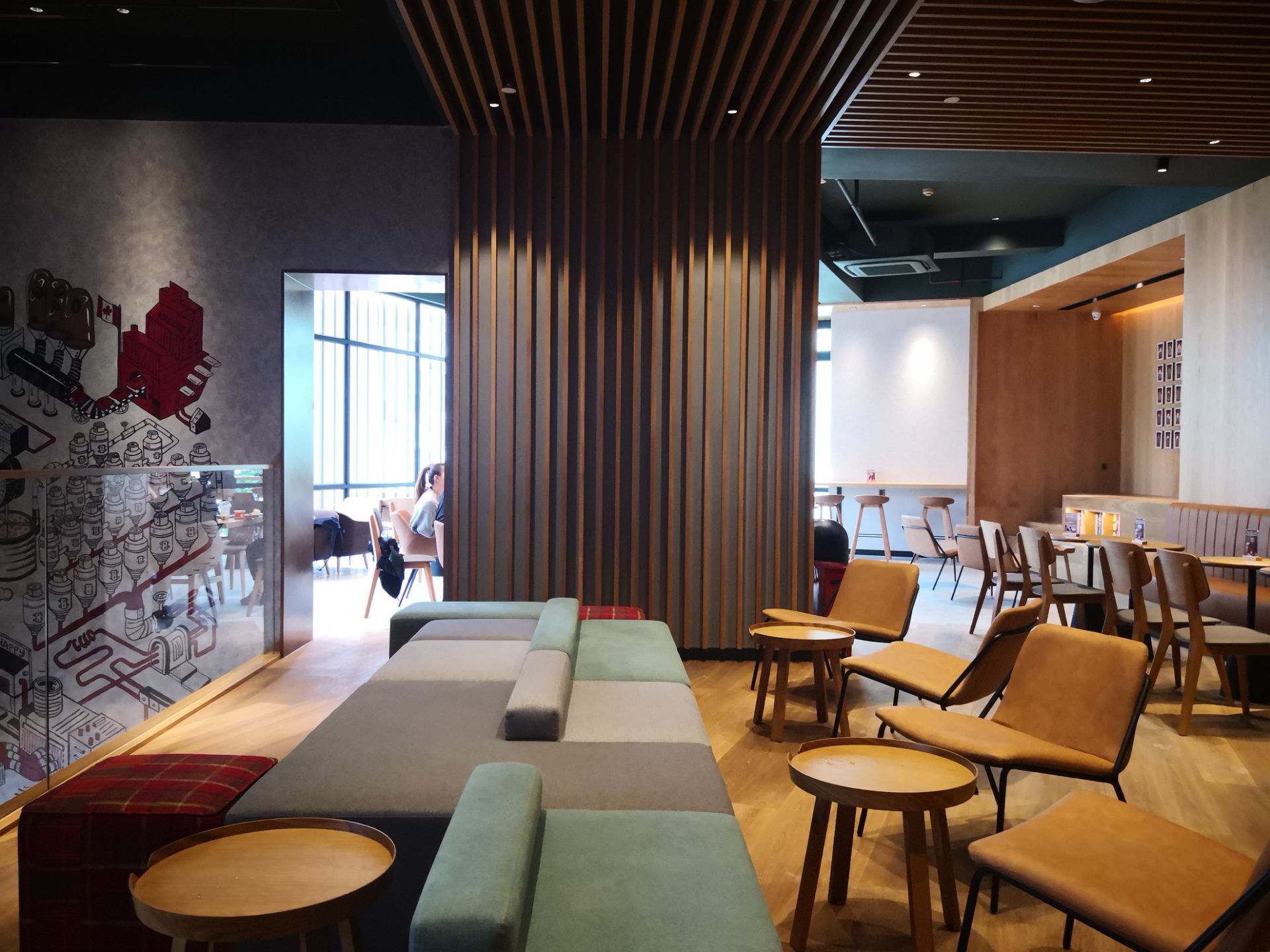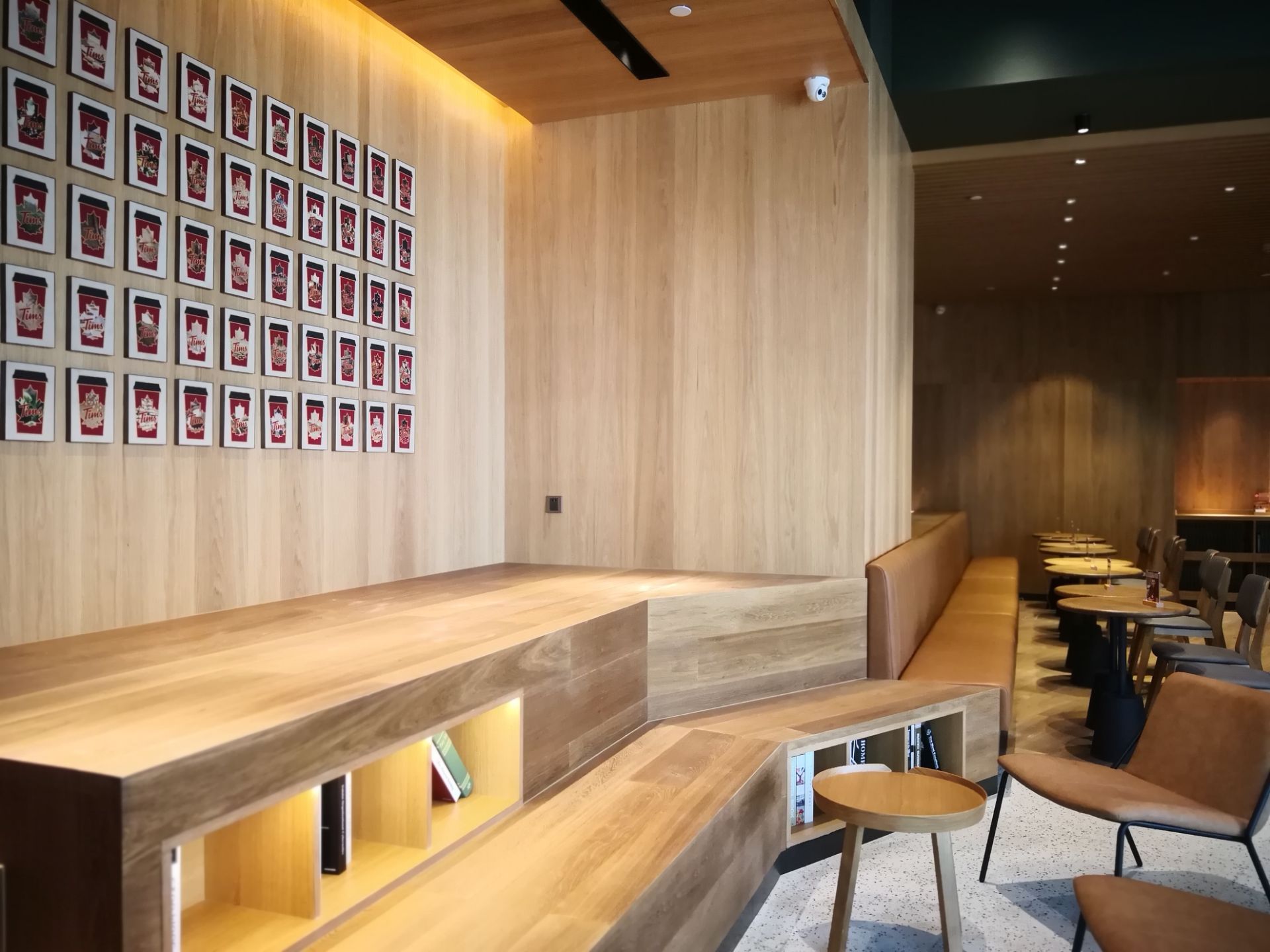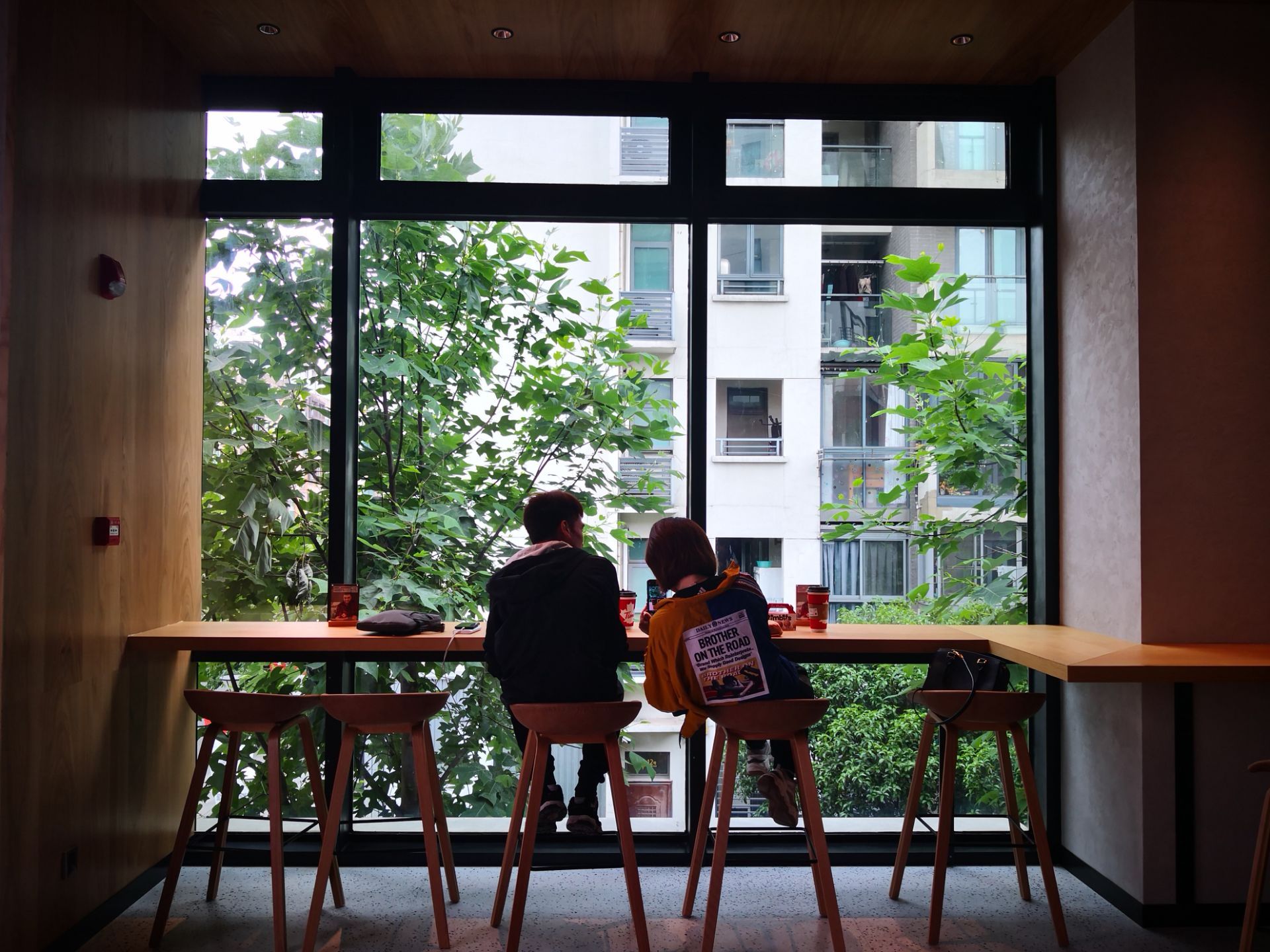 在伟德路上的独栋建筑里,Tims Coffee House建造了一栋仿北美小木屋的两层小楼。 一楼是半开放式的, 门口右手边的柜子里,摆放着Tims的各种人气周边。 进门就看到点单台和玻璃橱里的各种甜点。 点餐完毕,从取食台这里可以拐进一楼的就餐区,或者上二楼。 一楼的空间宽敞明亮,这里Tim还设立了一个酒吧吧台,这这里,你不但能喝到手冲咖啡,精酿啤酒,还有调酒师现场调制鸡尾酒。 二楼的空间我更加喜欢,给我一种可以侧地放松自己的感觉。 而每一个角落,妥妥的都是自拍的最佳角度。 于是,找一个舒服的位置,开始我的Tims Coffee 下午茶时间了。 因为还是下午时间,没有尝试店里的鸡尾酒,而是品尝了Tims的新品:香柠冷萃。 这是一款冷萃咖啡和香柠的组合,喝的时候,我并没有事先将两者混合,所以当喝的时候,酸甜的香柠穿过纯净柔和的冷萃咖啡,像在明亮之中增加了一抹甜美。 甜品搭配了千层芝士蛋糕,口感酸甜。 下次要找个有着清凉夜风的的晚上,来品尝Tims的鸡尾酒了。