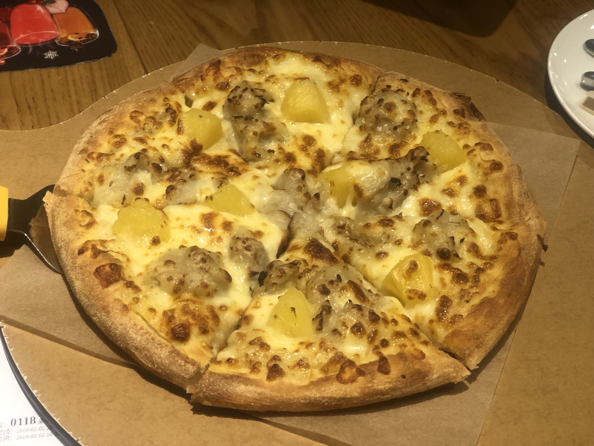 因为乐凯撒,爱上了榴莲味道的比萨,专属他家的最好吃的,榴莲味道很浓郁,果肉也很香甜,朋友请我们吃的,一个就好满足,有时候推出活动,性价比很高,搭配他家的专属果昔,还有烤鸡翅,太完美了啦,比萨还可以双拼