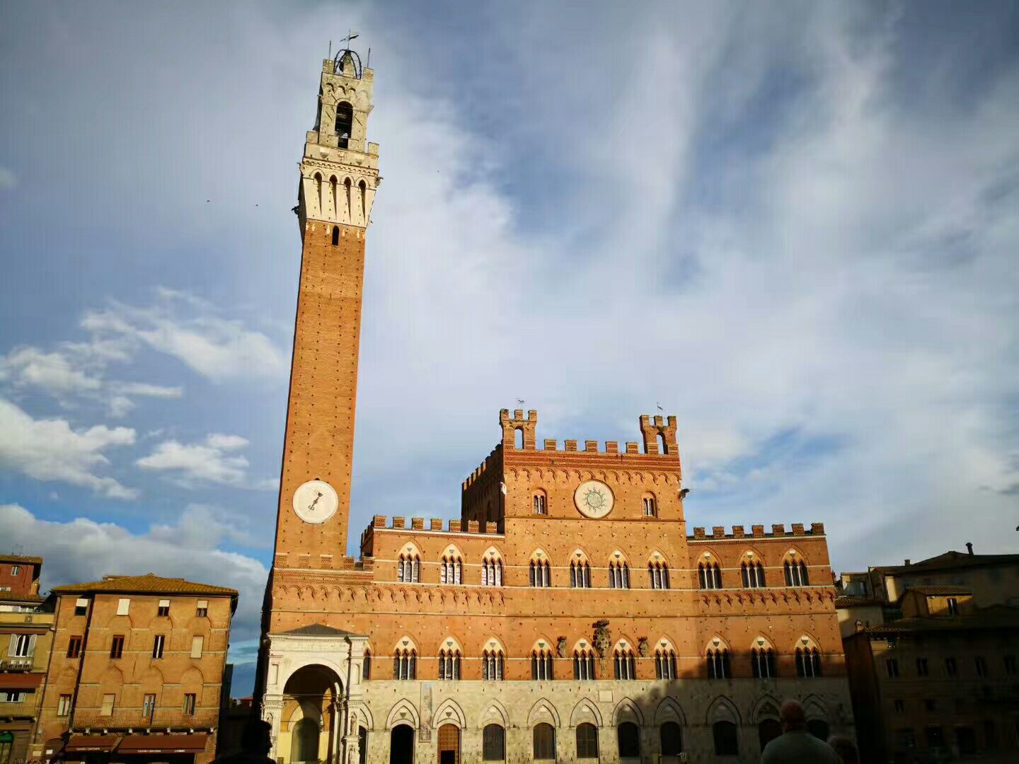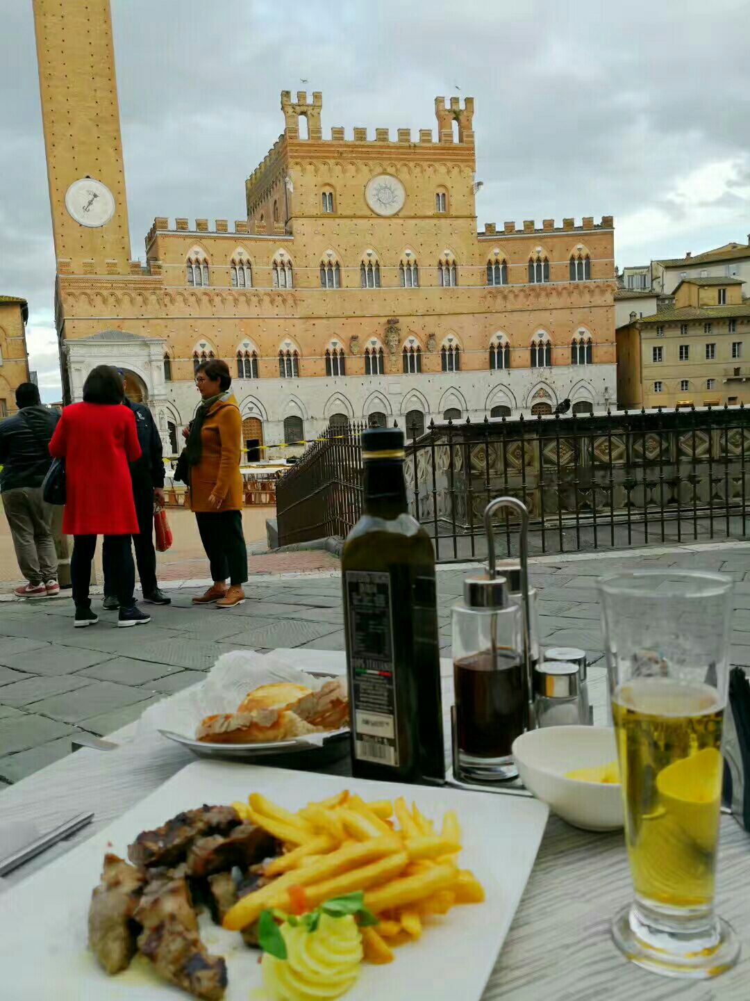 网友2019-05-31...纳,老城中心的广场,高102米的曼贾塔楼,在最后售票的时间及时赶到,顺着狭窄的楼梯一口气爬上去中世纪小镇锡耶纳,老城中心的广场,高102米的曼贾塔楼,在最后售票的时间及时赶到,顺着狭窄的楼梯一口气爬上去。惬意地俯瞰形状呈九瓣的贝壳型田园广场以及小镇全貌。