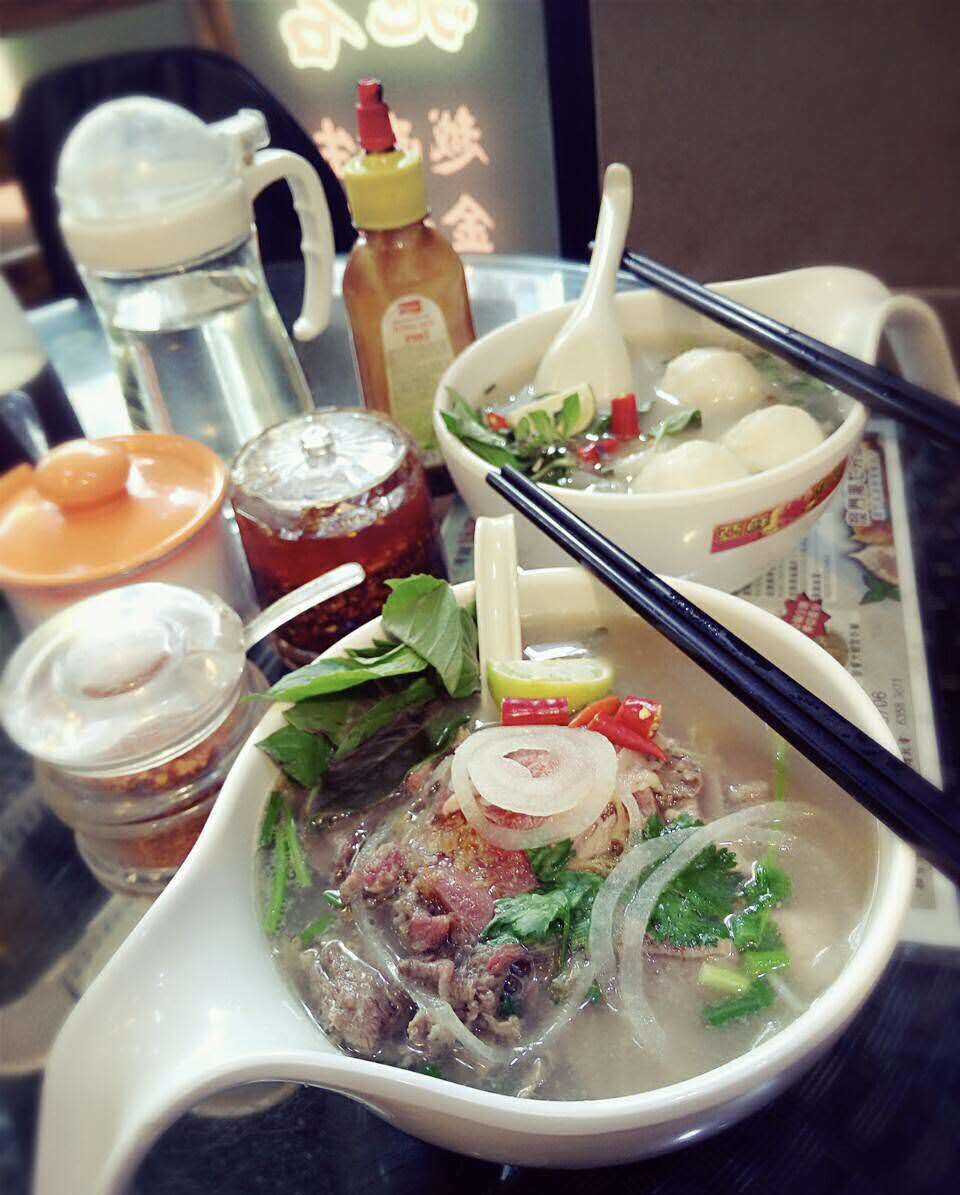 亚苏厨房,这里的桂林米粉比一般的爽口,而且米粉弹牙有口感。值得一提的是汤底同样做得非常出色,清甜无比,配合各种配料,味道非常爽口。亚苏招牌—越式牛肉河粉,分生牛肉和熟牛肉两种,生牛肉需要上菜后自己把牛肉放到汤里烫熟,虽然麻烦了一点,但是刚刚烫熟的生牛肉要更加的鲜嫩和劲道。建议在店吃一定要点生牛河哦~人均消费40左右