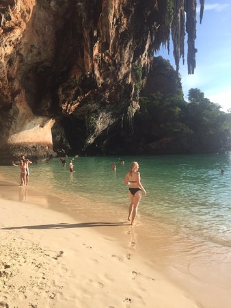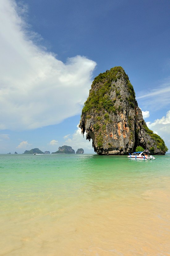 很美的沙滩,从奥南可以乘坐公共交通的船过来,不需要报团也可以过来,80泰铢单程,岛上有两家餐厅是在船上营业的,东西和陆地上一个价格,这里还有攀岩,也有山洞。沿着小路一直走,可以感受天然的凉爽的山脚下